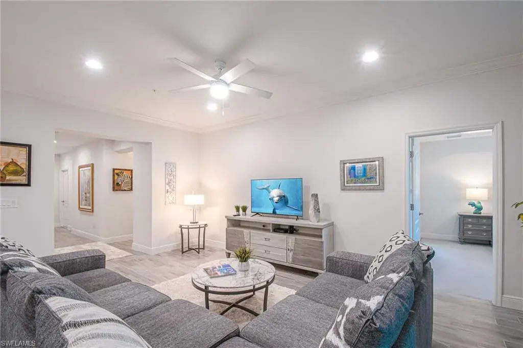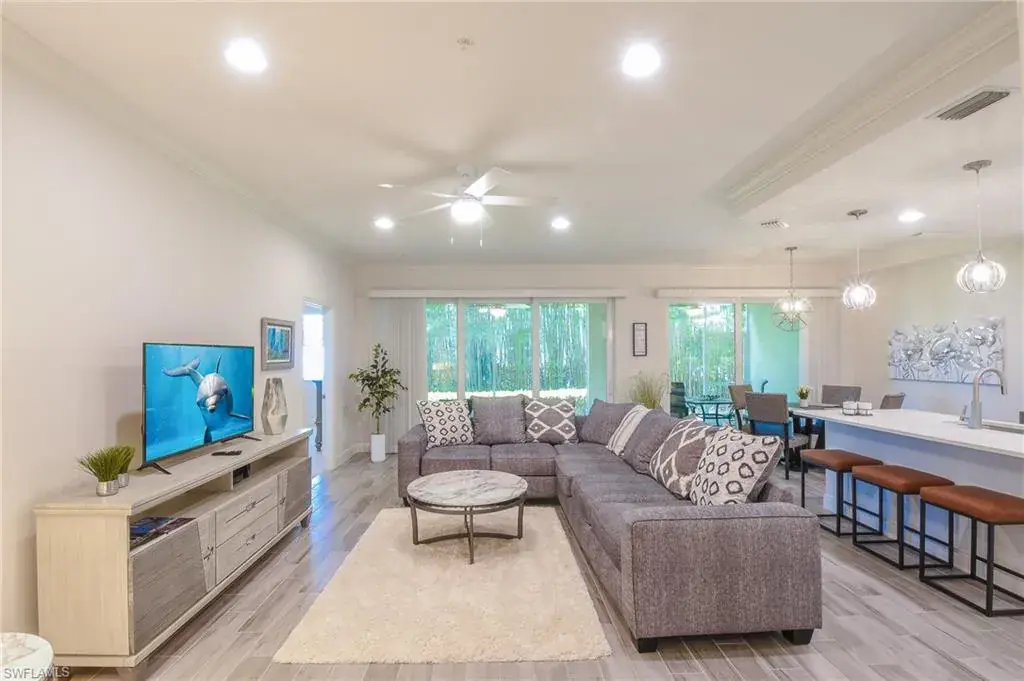 Beautiful 1st-floor Kendal model in Avalon of Naples featuring 2 bedrooms, 2 full baths, open-concept living/dining, and a spacious 1-car garage. Enjoy serene water and landscape views from the private screened lanai. This unit offers exceptional privacy with lush bamboo providing natural shade and a perfect shield from the Florida sun — the ideal blend of comfort, style, and tranquility.