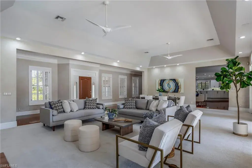 Unique home in desired and prestigious Pelican Bay. This beautiful home is in a highly desired location on a quiet cul-de-sac, with over 5,500 square feet. Large and bright dining/living room with 10 foot ceilings with fireplace. Well-appointed spacious kitchen with large island, and full-sized pantry. The Kitchen area connects to the family room with built-in cabinets and pool table. Separate corner office with built-in cabinetry and storage that could also serve as a fourth bedroom. Primary suite has two individual baths with double vanities, separate showers and walk- in closets. Two additional guest bedrooms boast full ensuite bathrooms. Bedrooms will comfortably accommodate king-size beds. Out back is a 1000 square foot covered lanai with automatic shade control. The lanai features an outdoor cooking area with sink, min-fridge and gas grill overlooking the landscaped in ground pool. Large laundry/craft room with built-in cabinetry. The home features a fully functioning Generac home generator. This home has never been flooded. Residents of Pelican Bay have access to a variety of resort-style amenities including private beach, dinning, tennis and community center.