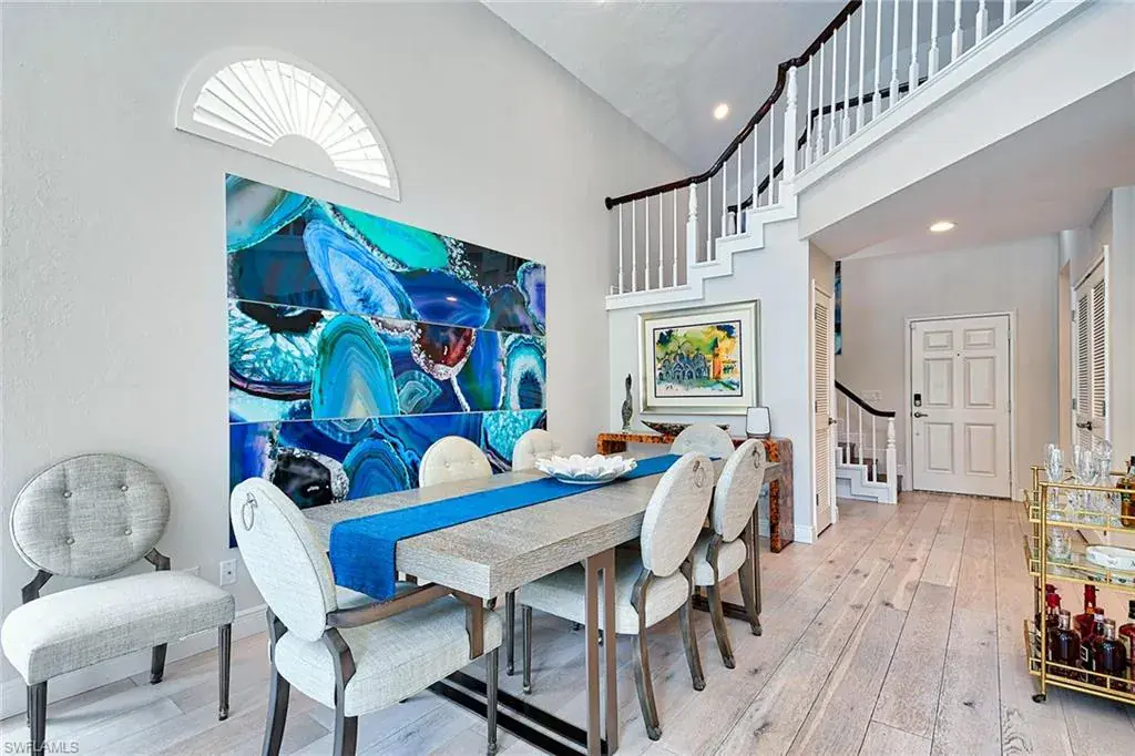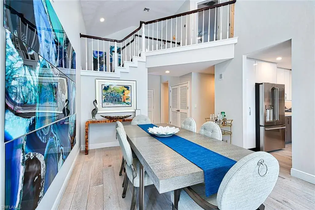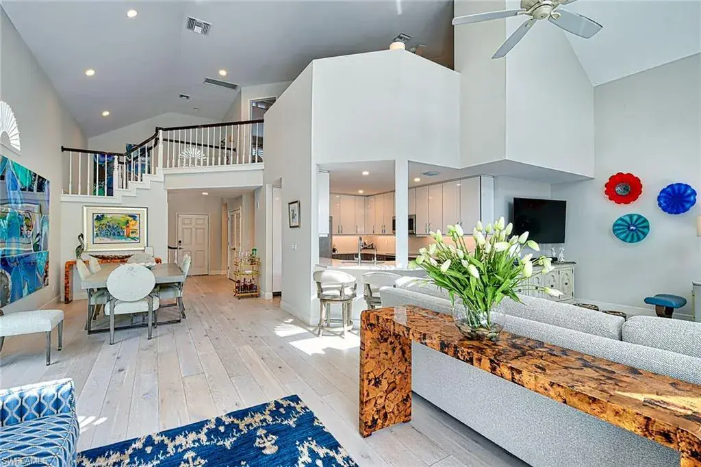 Tucked into the charming Villa Lantana neighborhood of Pelican Bay with southern exposure, this unique villa welcomes residents to a life of luxury and serenity within its beautiful grounds and completely renovated pool area. This stunning and contemporary residence has a first-floor primary suite with a spacious primary bath. On the second level are two guest bedrooms with den/loft space for home office use. The home has an unbelievably expansive open-concept living space with wood flooring, volume ceilings and modern amenities featuring a beautiful kitchen with custom cabinetry, impact windows and sliding doors that open to a hand-crafted patio and heated pool. It is rare to find a bright, sunlit villa that offers as much privacy as you find here. Pet-friendly neighborhood with a small private park to share with four-legged friends. 2-car attached garage. All Pelican Bay owners enjoy 2 beach restaurants, fitness center, tennis, kayaking, biking, miles of walking paths and so much more. Artis—Naples Performing Arts Center, Waterside Shops, and Mercato are just minutes away.