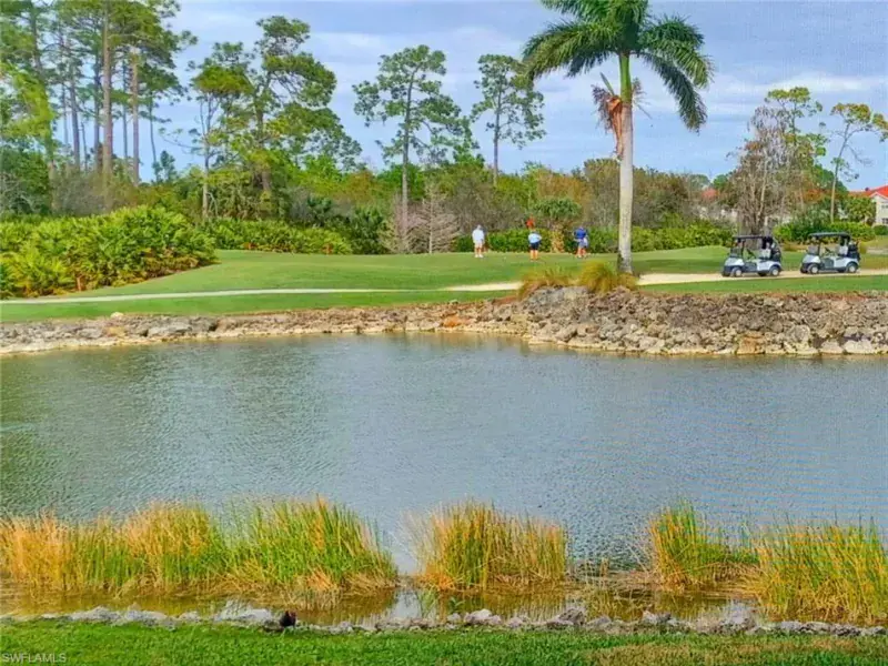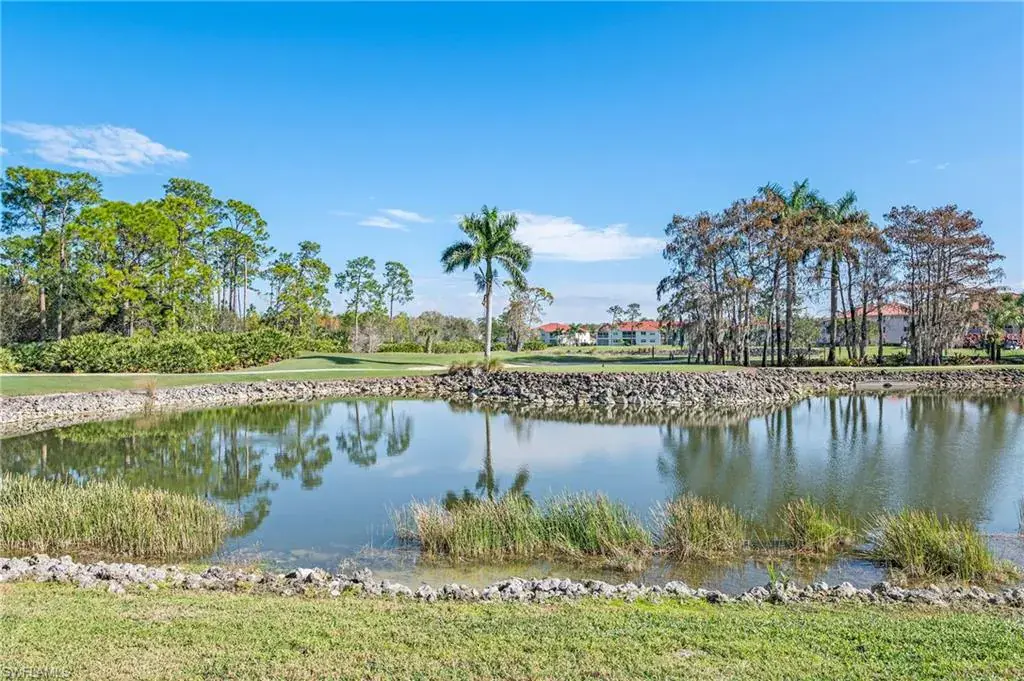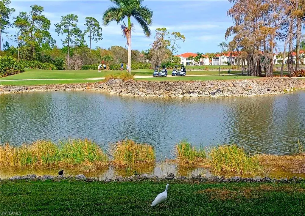 Your dream life can be yours. You’ll be immediately drawn to the most majestic postcard views! Affordable, excellent value, move in ready, spotless, super immaculate. Panoramic Lake and 3 Golf fairway views is the best way to start your day as you relax on your screened lanai captivated by golfers, birds and wildlife. Collapsing wall of glass sliders allows great airflow of Florida weather. Nicely appointed, Fully furnished in price if desired –so just bring clothes and golf clubs and start your dream life! Glorious views are outside your window as you awake and from the kitchen open to the dining and living room. FULL Golf Membership is included, so play if you want or dabble in tournaments. Steps from door to Community Pool, Spa, Tennis and Pickleball. Closest community to the Clubhouse for ease of Dining, Bar, ping pong, Billiards, library, Card rooms, fire pit, events and much more. Nearby Divot features Full fitness center, Bocci, breakfast, lunch, bar. Plus all conveniences are minutes out the front or back gates. Only 4 miles to Olde Naples, white sand beaches, dining, shops, art, theatre and all Naples offers. Includes cable, internet, water. Make your offer, reap Florida financial benefits and start your dream life today!
