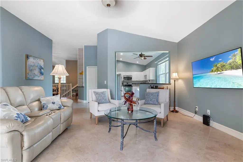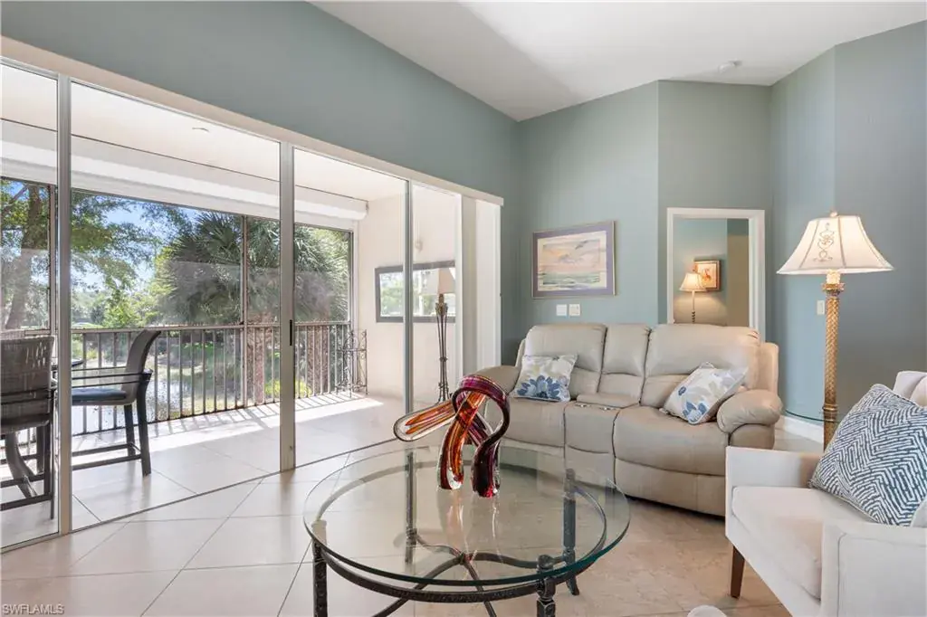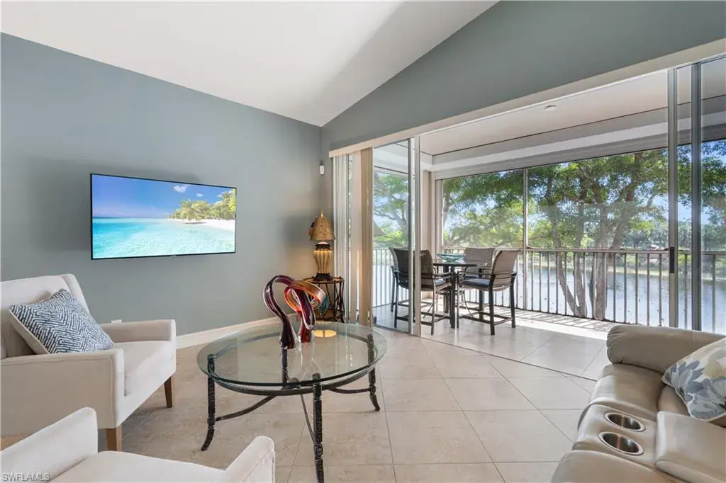 Welcome to this wonderful, turnkey condo in the highly sought after Autumn Woods! Enter this three bedroom, two bathroom corner unit condo and notice the cathedral ceilings, beautiful millwork in the formal dining area and wonderful views overlooking the lake. There is plenty of space for entertaining in this open concept, light, bright and spacious condo with both formal dining and a breakfast nook. The great room offers sliders all along the back of the condo for ultimate outdoor/indoor living. The spacious kitchen has stainless steel appliances, white shaker cabinets, and granite countertops. The large covered lanai is perfect for enjoying the beautiful Florida weather. The spacious primary suite offers a walk-in closet, dual sink vanities with granite countertops, a walk-in shower and separate soaking tub. The split floor plan makes this condo live large. The third bedroom is perfect for guests or a home office. This condo has newer impact windows and electric hurricane shutters on the lanai (2021), newer roof (2021), elegant tile flooring throughout and a one car attached garage. Autumn Woods is a gated community in an unbeatable location in north Naples. It is just minutes from the beach, Waterside Shops, restaurants, shopping and more. The community offers a fitness room, tennis courts, playground, two pools, wonderful walking trails and more. This property is move- in ready and being offered completely turnkey to start living the ultimate Naples lifestyle today!