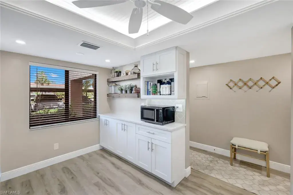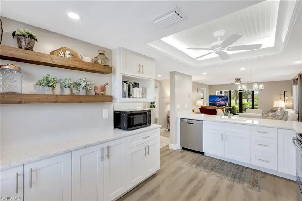 Welcome to Countryside to this beautifully renovated 2-bedroom, 2-bathroom, first floor condo, centrally located in the heart of Naples, FL. With 1097 square feet of living space, this head-to-toe, fully renovated, bright end unit offers a comfortable and low-maintenance lifestyle. This immaculately maintained condo comes with a Social Membership in a highly active and gated golf community. Upon entering, you’ll be greeted by a well-appointed living space that seamlessly flows into the dining area, creating an inviting atmosphere for relaxation and entertaining. The kitchen was tastefully renovated and is equipped with modern appliances and ample cabinet space, perfect for the culinary enthusiast. The primary bedroom boasts a spacious layout and an en-suite bathroom for added privacy and convenience. The second bedroom is versatile and can be used as a home office, guest room, or personal retreat. Additionally, both bathrooms have been thoughtfully renovated and were designed with functionality and modern style in mind. Residents of Country Haven have access to their own community pool, providing the perfect setting for outdoor enjoyment and recreation. The property features guest parking and assigned parking, ensuring convenience for residents and their visitors. Countrysides clubhouse is currently undergoing a 14.2M renovation and will add a new community pool equipped with a lap pool section, pool cafe, fire pits, outdoor dining, and a new interior lounge. Countrysides location offers proximity to a variety of dining, shopping, and entertainment options, allowing for a fulfilling and enjoyable lifestyle. Schedule a showing today and experience the comfort and convenience that this property has to offer. Special Assessment of $10,000 has been paid in full.