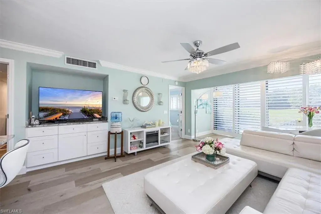 In the Heart of Eagle Creek Golf and Country Club, a charming One-bedroom Condo stands as a hidden gem. Its luxurious plank wood flooring welcomed residents with warmth, reflecting the golden rays of the morning sun. Inside, the white modern kitchen gleams stainless steel appliances and stunning granite countertops, inviting culinary adventures that filled the air with delightful aromas. The living area is a harmonious blend of contemporary furnishings, accented by crown molding that adds a touch of elegance. Each piece was carefully selected, creating an atmosphere that feels both inviting and sophisticated. A large slider overlooked the serene shelled patio, a peaceful oasis that offers a stunning view of the golf practice facility, where golfers honed their skills amid lush green fairways. Every evening, as the sun dips below the horizon, the patio transforms into a tranquil retreat. The soft sound of distant laughter and the rustle of palm trees created a backdrop for relaxation. It is a perfect spot to unwind with a glass of wine, watching the sky paint itself in shades of orange and purple. Just across the street, the Crystal Lake Sports Complex buzzes with energy.