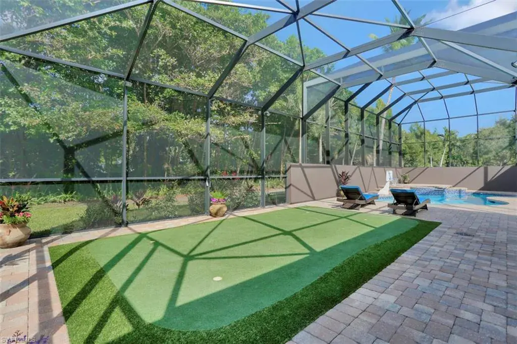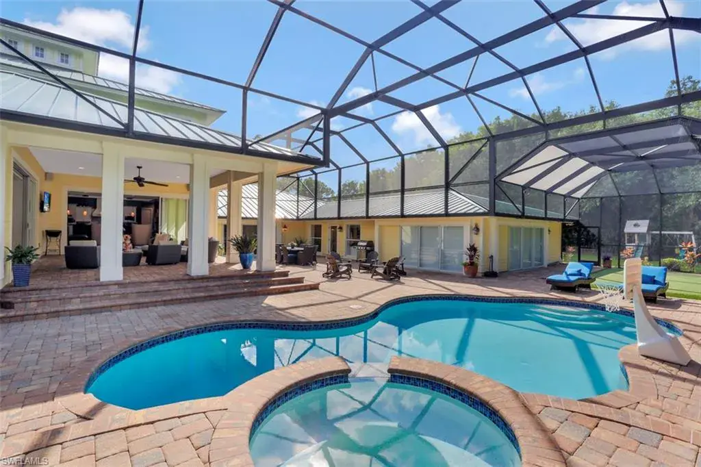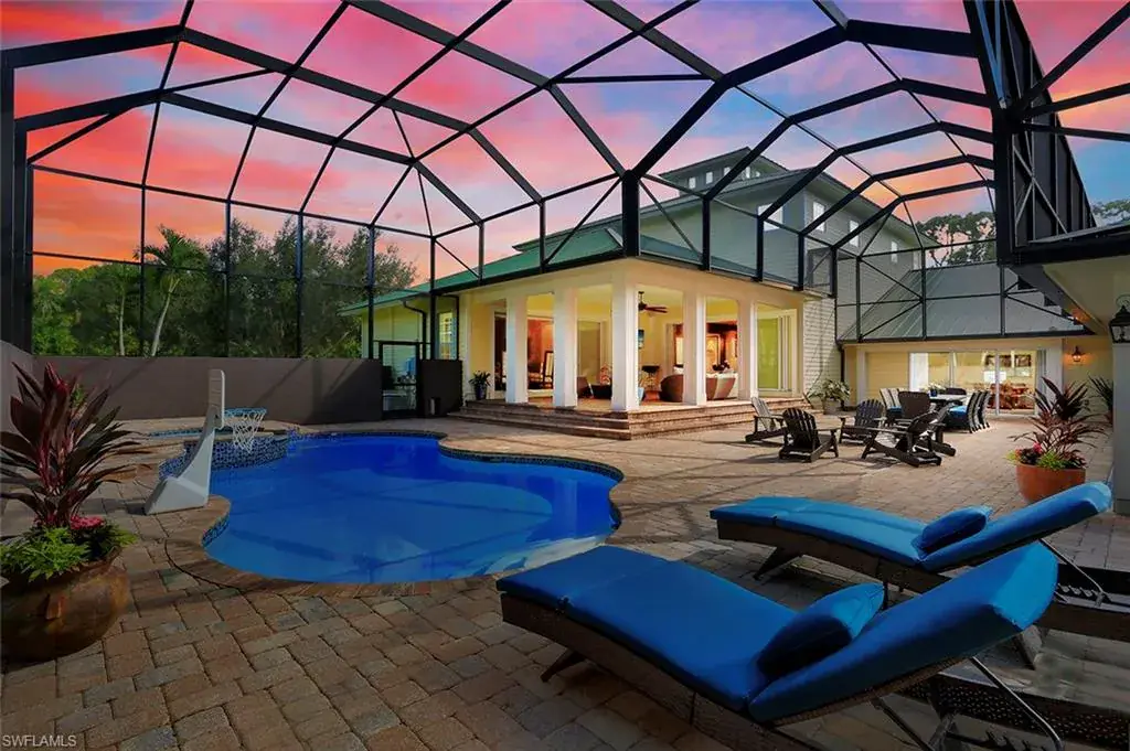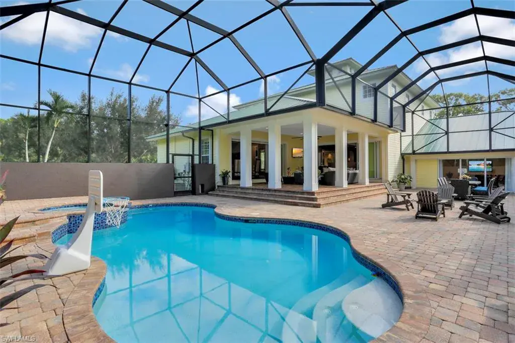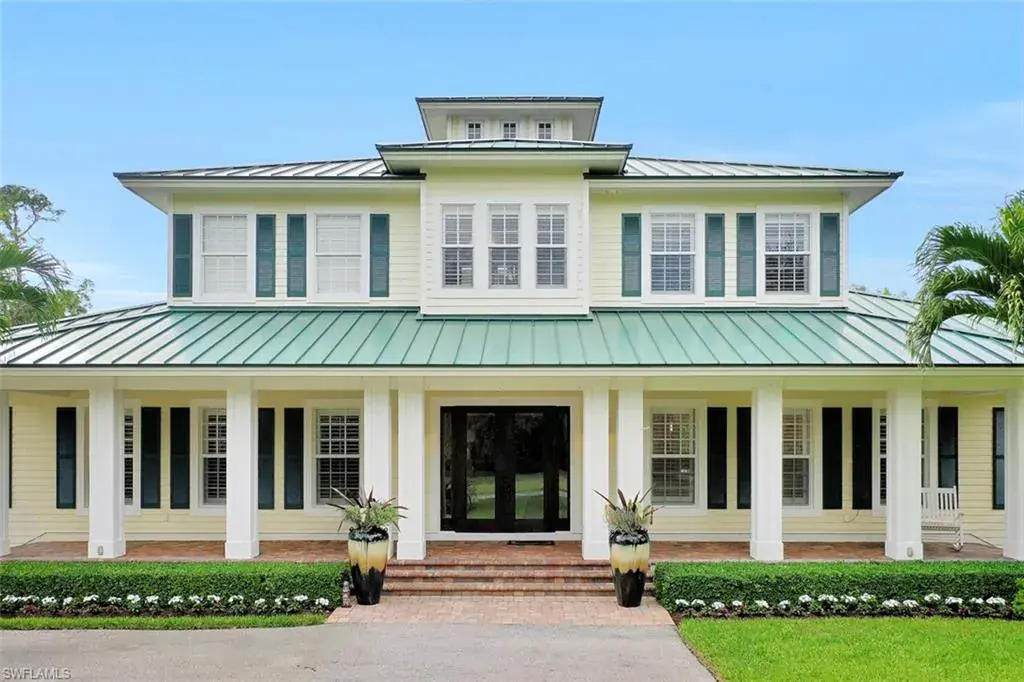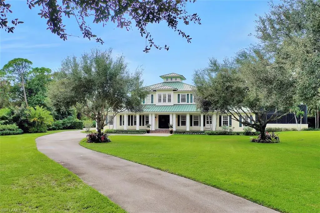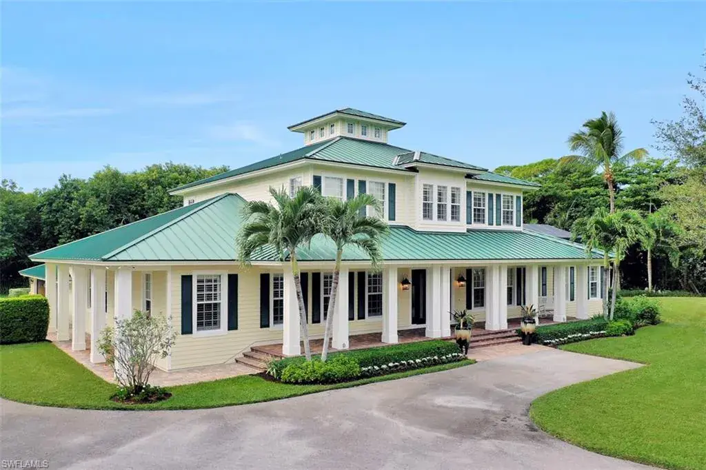 Old Florida Elegance – Nestled on a secluded 1.53-acre tropical estate in the heart of Pine Ridge—voted the Best Neighborhood in the USA—this timeless Old Florida-style residence is a masterful blend of architectural heritage and modern luxury. Framed by a long, winding driveway shaded by majestic oaks and swaying palms, the property exudes a sense of nostalgic charm, comfort, and effortless sophistication. A few noteworthy facts about this home: the Elevation Certificate confirms the lot sits 17 feet above sea level, with main home itself elevated to 20 feet—FEMA Flood Zone AH. Additionally, the home is fully protected with hurricane-impact-resistant windows and doors, providing peace of mind throughout every season. The 5,000 sq ft main residence boasts 5 bedrooms, 3 baths, and an oversized 3-car garage. Designed with an open-concept floor plan, the heart of the home features a stunning center island kitchen, soaring 22-foot ceilings, and an abundance of windows that flood the interior with natural light. Every space is thoughtfully crafted to inspire both grand entertaining and quiet moments of retreat. Step outside to a true Florida oasis—an expansive oversized lanai with a covered terrace, sparkling pool and spa, and even a private putting green and driving range—perfect for enjoying the sunshine lifestyle year-round. The 1,600 sq ft guest house offers 3 bedrooms, 2 baths, and endless possibilities for guests, extended family, or a private office retreat. Located just 1.5 miles from Vanderbilt Beach and moments from the world-class shopping, dining, and cultural experiences of Naples, this estate presents a rare opportunity to own a piece of Florida’s timeless elegance in one of the nation’s most coveted neighborhoods.