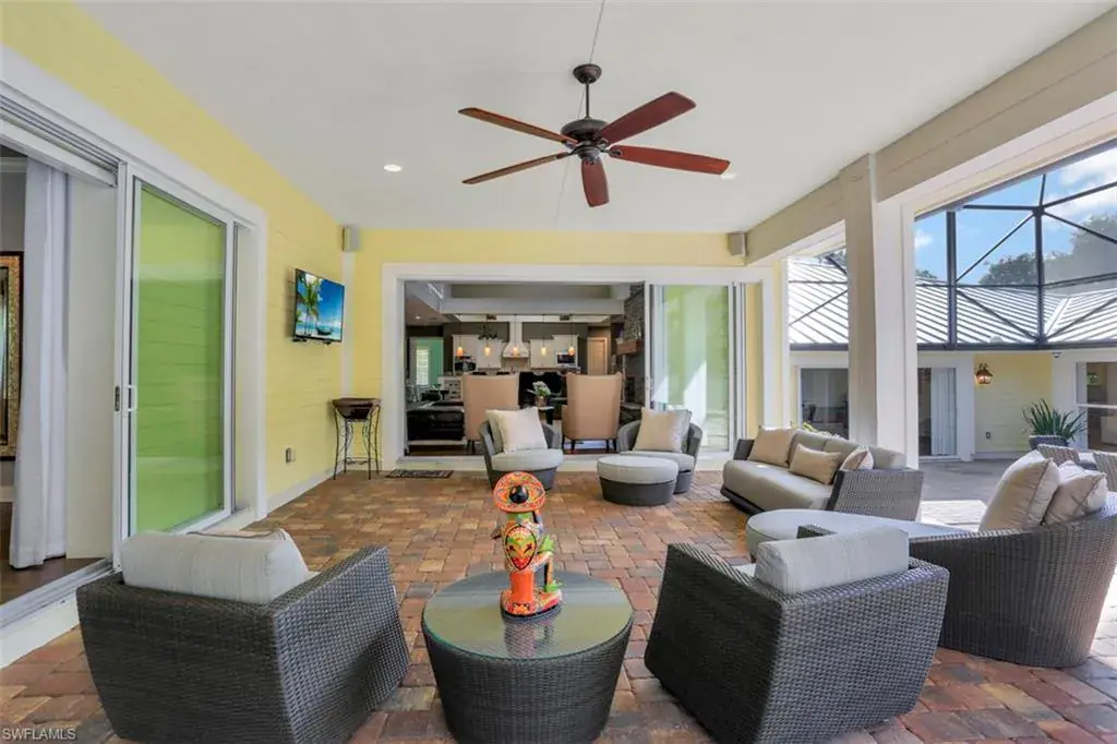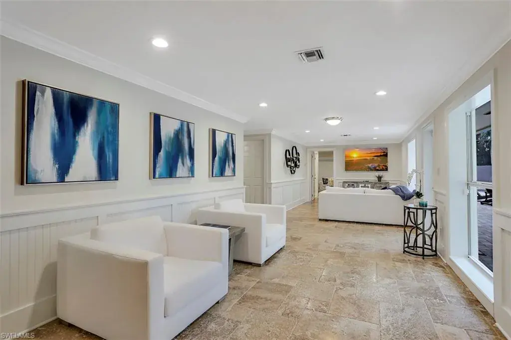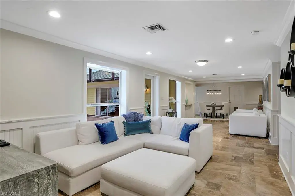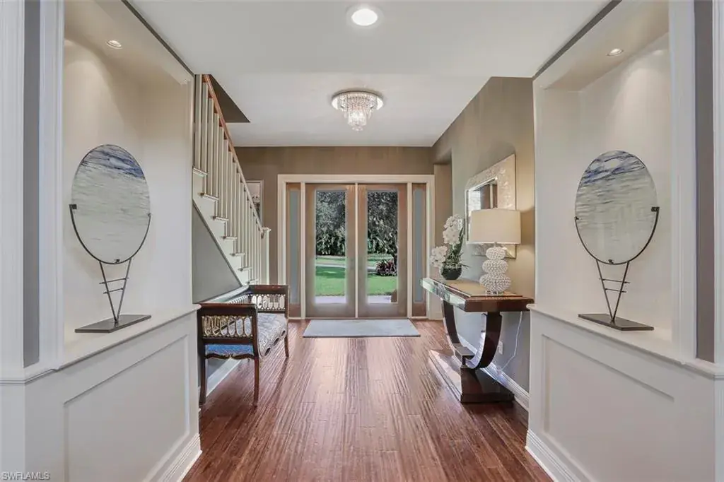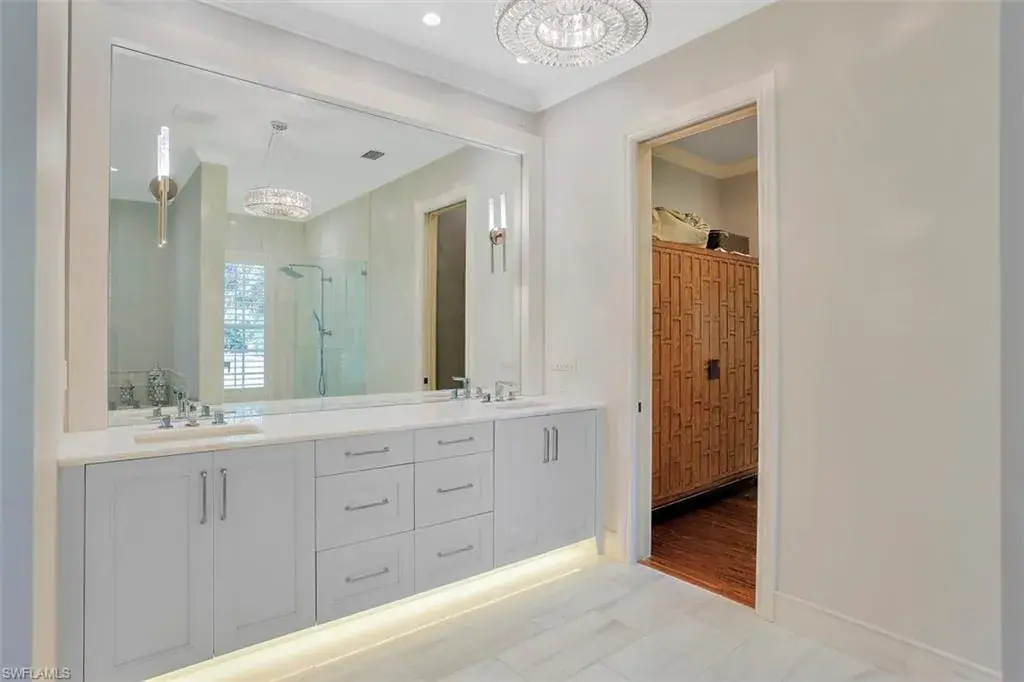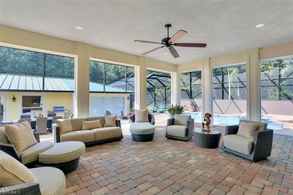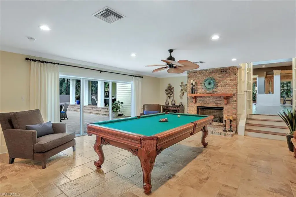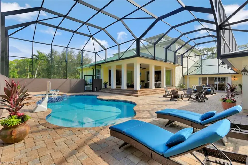 Old Florida Elegance – Nestled on a secluded 1.53-acre tropical estate in the heart of Pine Ridge—voted the Best Neighborhood in the USA—this timeless Old Florida-style residence is a masterful blend of architectural heritage and modern luxury. Framed by a long, winding driveway shaded by majestic oaks and swaying palms, the property exudes a sense of nostalgic charm, comfort, and effortless sophistication. A few noteworthy facts about this home: the Elevation Certificate confirms the lot sits 17 feet above sea level, with main home itself elevated to 20 feet—FEMA Flood Zone AH. Additionally, the home is fully protected with hurricane-impact-resistant windows and doors, providing peace of mind throughout every season. The 5,000 sq ft main residence boasts 5 bedrooms, 3 baths, and an oversized 3-car garage. Designed with an open-concept floor plan, the heart of the home features a stunning center island kitchen, soaring 22-foot ceilings, and an abundance of windows that flood the interior with natural light. Every space is thoughtfully crafted to inspire both grand entertaining and quiet moments of retreat. Step outside to a true Florida oasis—an expansive oversized lanai with a covered terrace, sparkling pool and spa, and even a private putting green and driving range—perfect for enjoying the sunshine lifestyle year-round. The 1,600 sq ft guest house offers 3 bedrooms, 2 baths, and endless possibilities for guests, extended family, or a private office retreat. Located just 1.5 miles from Vanderbilt Beach and moments from the world-class shopping, dining, and cultural experiences of Naples, this estate presents a rare opportunity to own a piece of Florida’s timeless elegance in one of the nation’s most coveted neighborhoods.