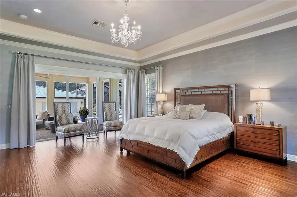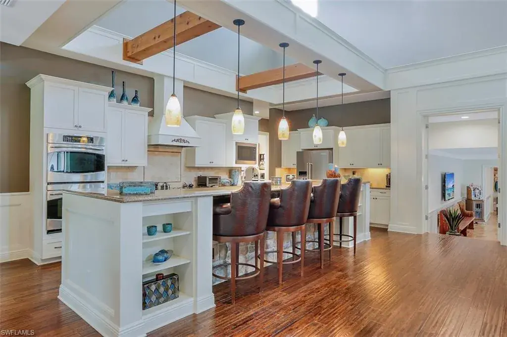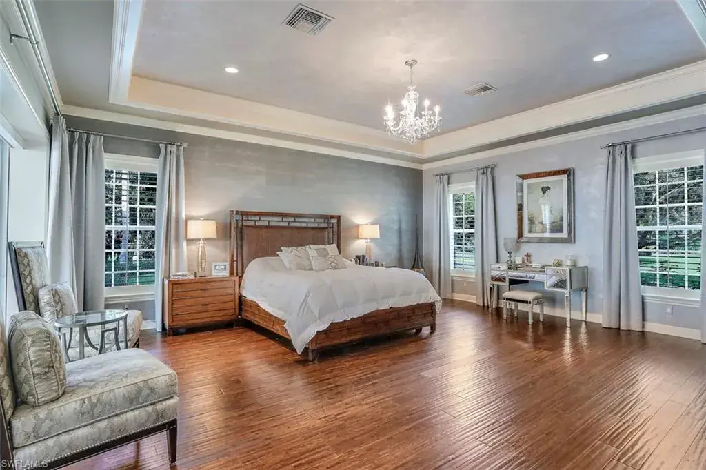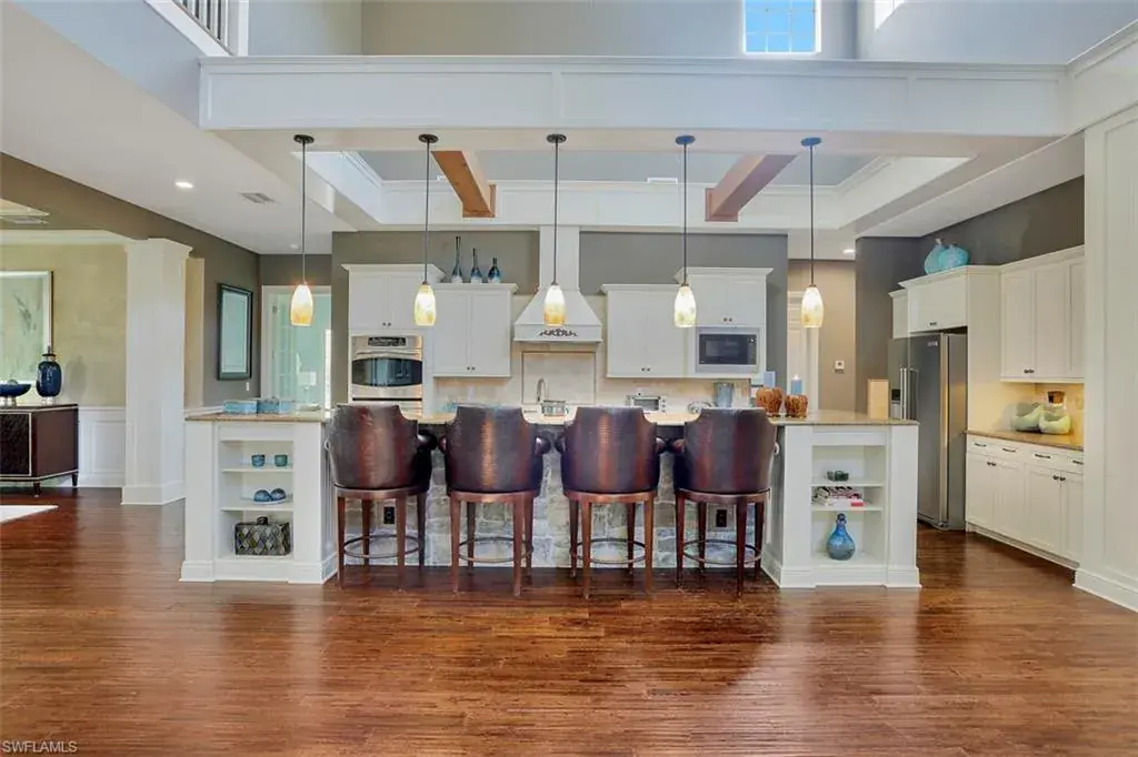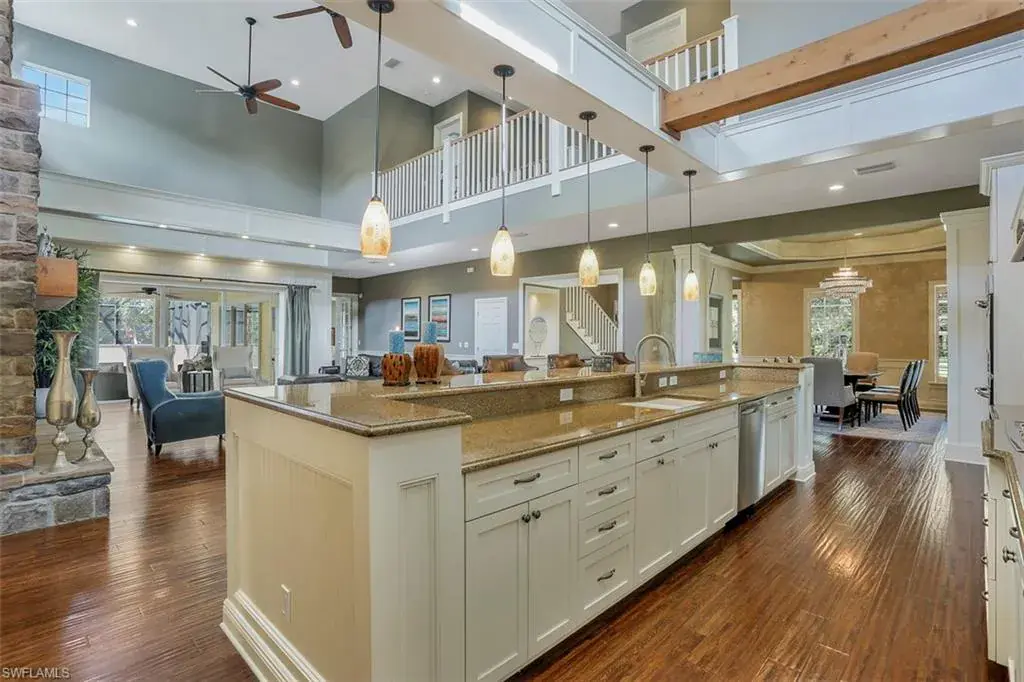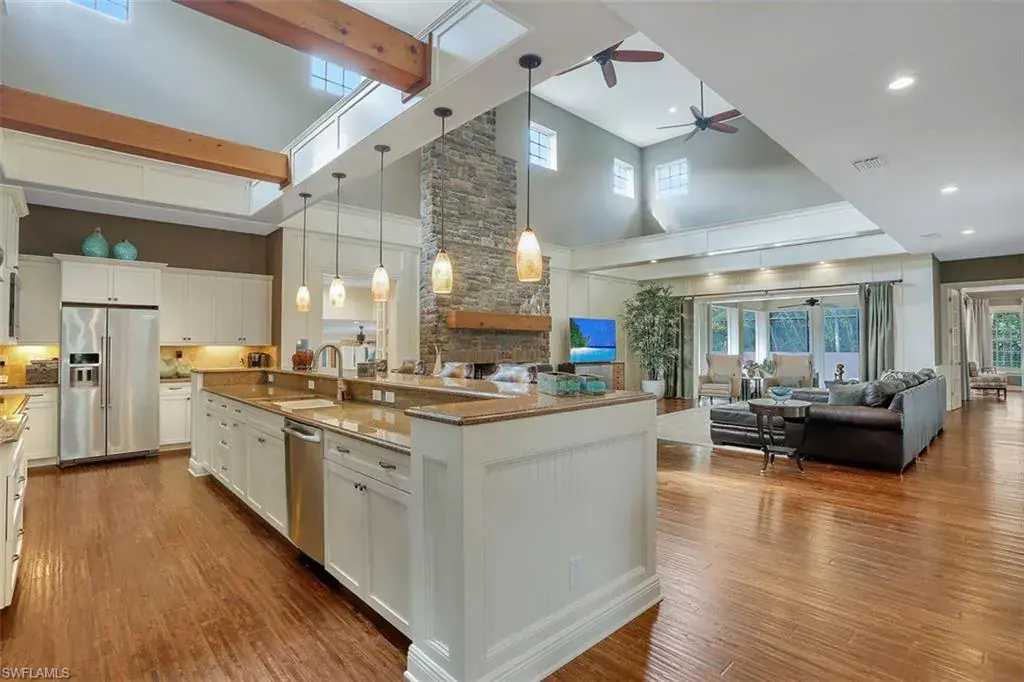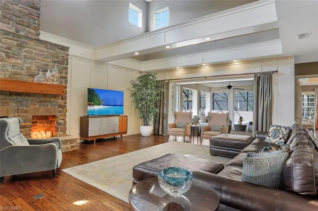 Old Florida Elegance – Nestled on a secluded 1.53-acre tropical estate in the heart of Pine Ridge—voted the Best Neighborhood in the USA—this timeless Old Florida-style residence is a masterful blend of architectural heritage and modern luxury. Framed by a long, winding driveway shaded by majestic oaks and swaying palms, the property exudes a sense of nostalgic charm, comfort, and effortless sophistication. A few noteworthy facts about this home: the Elevation Certificate confirms the lot sits 17 feet above sea level, with main home itself elevated to 20 feet—FEMA Flood Zone AH. Additionally, the home is fully protected with hurricane-impact-resistant windows and doors, providing peace of mind throughout every season. The 5,000 sq ft main residence boasts 5 bedrooms, 3 baths, and an oversized 3-car garage. Designed with an open-concept floor plan, the heart of the home features a stunning center island kitchen, soaring 22-foot ceilings, and an abundance of windows that flood the interior with natural light. Every space is thoughtfully crafted to inspire both grand entertaining and quiet moments of retreat. Step outside to a true Florida oasis—an expansive oversized lanai with a covered terrace, sparkling pool and spa, and even a private putting green and driving range—perfect for enjoying the sunshine lifestyle year-round. The 1,600 sq ft guest house offers 3 bedrooms, 2 baths, and endless possibilities for guests, extended family, or a private office retreat. Located just 1.5 miles from Vanderbilt Beach and moments from the world-class shopping, dining, and cultural experiences of Naples, this estate presents a rare opportunity to own a piece of Florida’s timeless elegance in one of the nation’s most coveted neighborhoods.