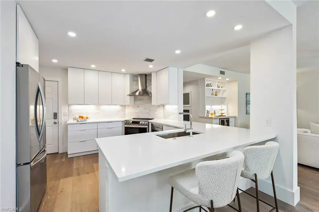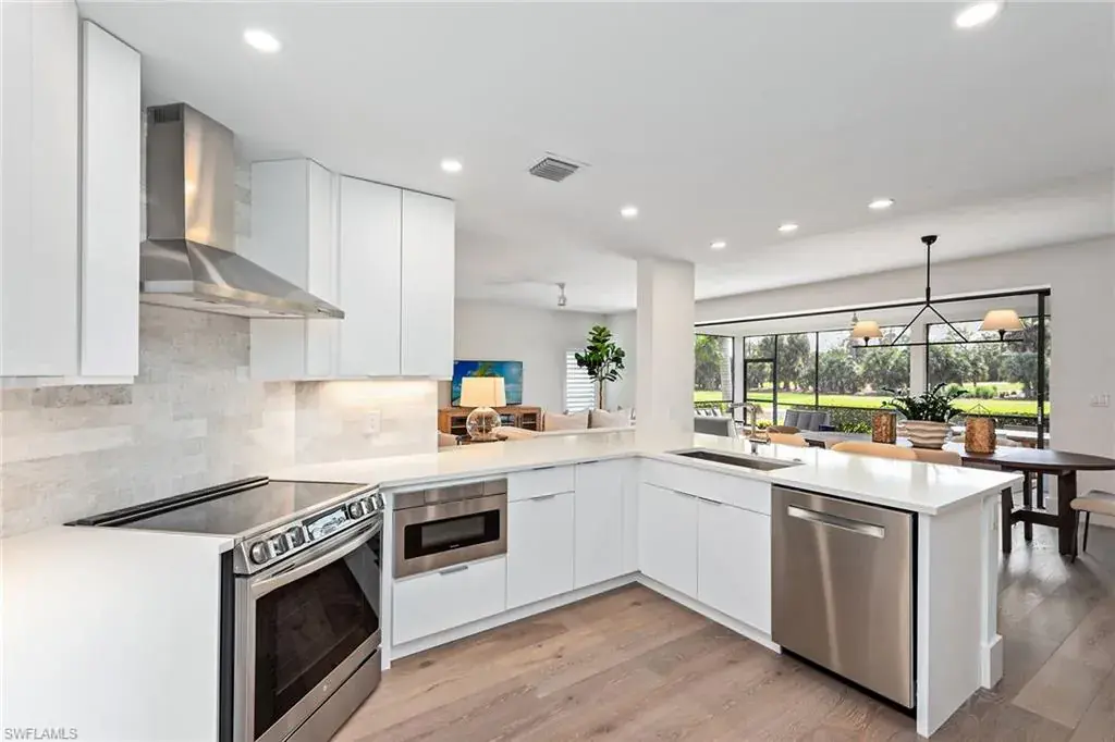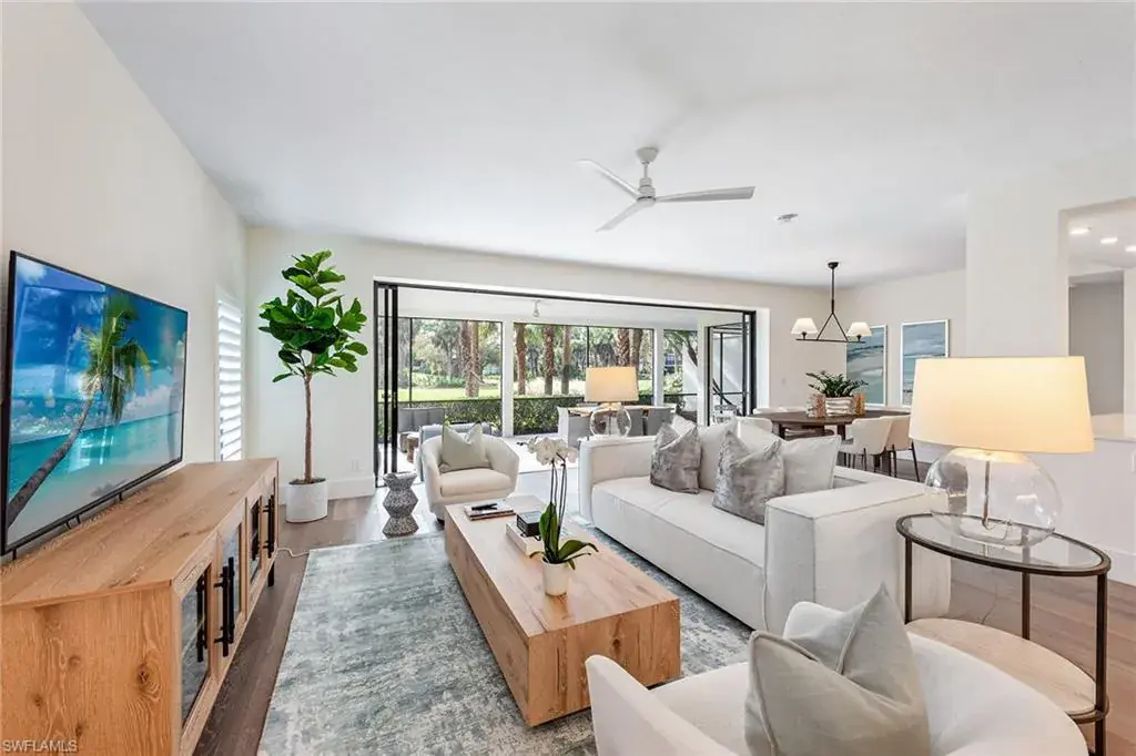 Presenting this designer remodeled three-bedroom, three-bathroom end unit located in the exclusive enclave of Eagle Creek. A flowing bright and open space awaits in this expansive condo with endless views of the golf course as your backdrop. No detail was overlooked in the thoughtful renovation of this residence. Some of the luxury features include a brand new kitchen, brand new bathrooms, engineered white oak flooring throughout, plantation shutters, designer furnishings and much more. Gather in the stunning kitchen and living room, or take in the evening sky on your oversized lanai. The owner’s suite showcases beautiful views offering a spa inspired bathroom and large walk-in closet. Both guest bedrooms are privately situated and luxuriously appointed, each offering access to en-suite bathrooms. A social membership is required, or buyers can take advantage of the club’s social golf program offering instant golf access to those who join the golf membership waitlist.