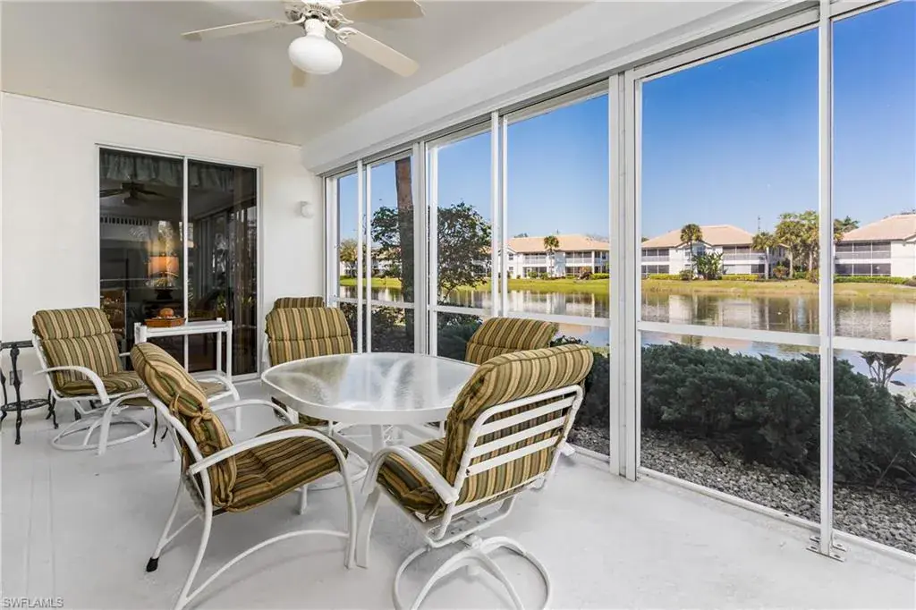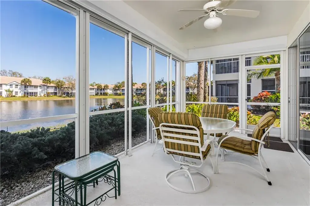 A cozy, tranquil unit meets a desirable North Naples community! This quiet condo rests on a shimmering lake, featuring a back patio lake view perfect for early mornings, long nights, or entertaining guests. Electric hurricane panels are included in this patio and hurricane protection throughout the condo! This two bed, two bath condo also has a den perfect for office space or family nights! Brand new water heater and roofing! The property has brand new water piping throughout!! There is a single car garage, paved driveway, and plenty of guest parking. The gated community features two pools, a tennis court, basketball court, playground and a clubhouse! North Naples is also amongst SWFL’s cleanest areas… you are a few miles from Vanderbilt beach and other classic Naples landmarks. Plentiful shopping abound, with a Publix right next door!