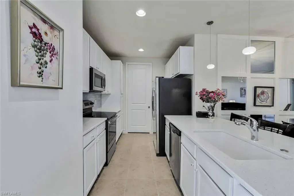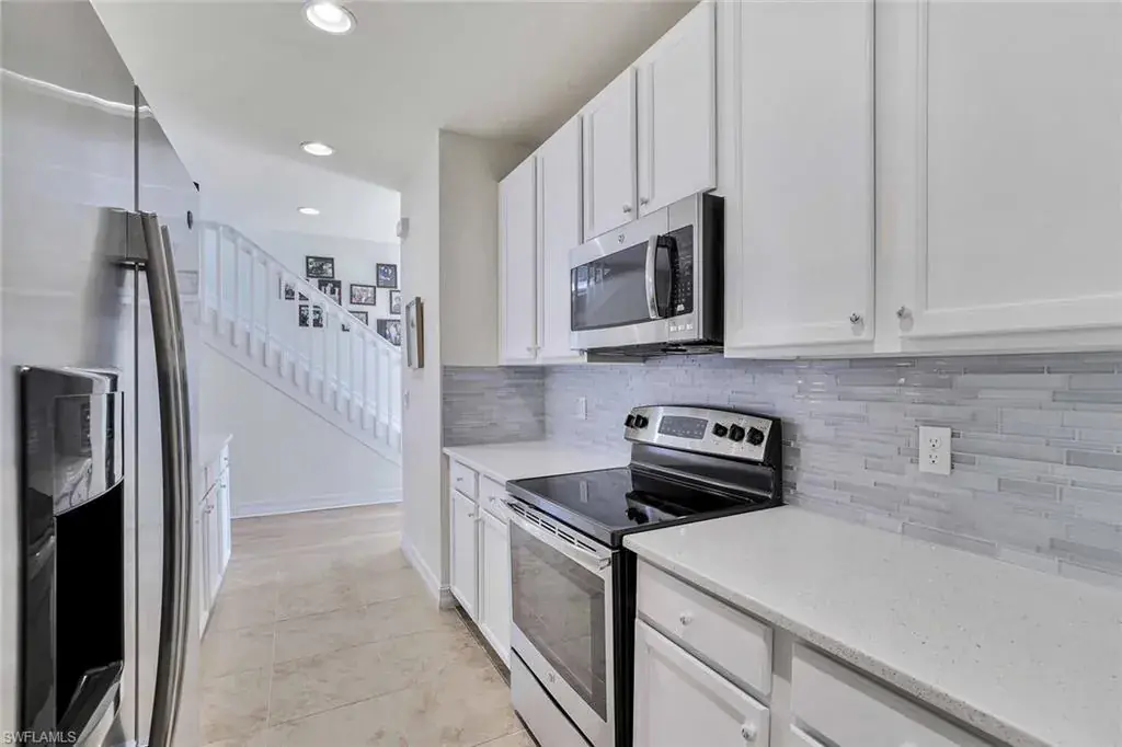 REDUCED $20,000!!!!!This North End Pristine light bright 1746 sq ft Ibis Townhome is complete with New luxury Cortex Vinyl flooring throughout the living & bedrooms, the gourmet kitchen has updated 42 inch cabinets, new Sparkling Quartz Kitchen Counters & a Glass Backsplash. The First Floor Primary Suite has a dual vanity, walk in shower, soaking tub, private water closet, & 2 large walk-in closets. In addition, bead board & custom mirrors have been added for architectural interest plus there are custom window treatment throughout. The second floor includes a loft area & two bedrooms each boasting large closets & a shared full bath. Most of the home is used by a talented artist. Enjoy the lake while sitting on the screened spacious lanai. Bristol Pines is a Gated Community with low fees which include internet, all the amenities and NO CDD. Minutes to Beaches via Vanderbilt Beach Rd, multiple shopping/dining venues, & located in a TOP-RATED SCHOOL DISTRICT!