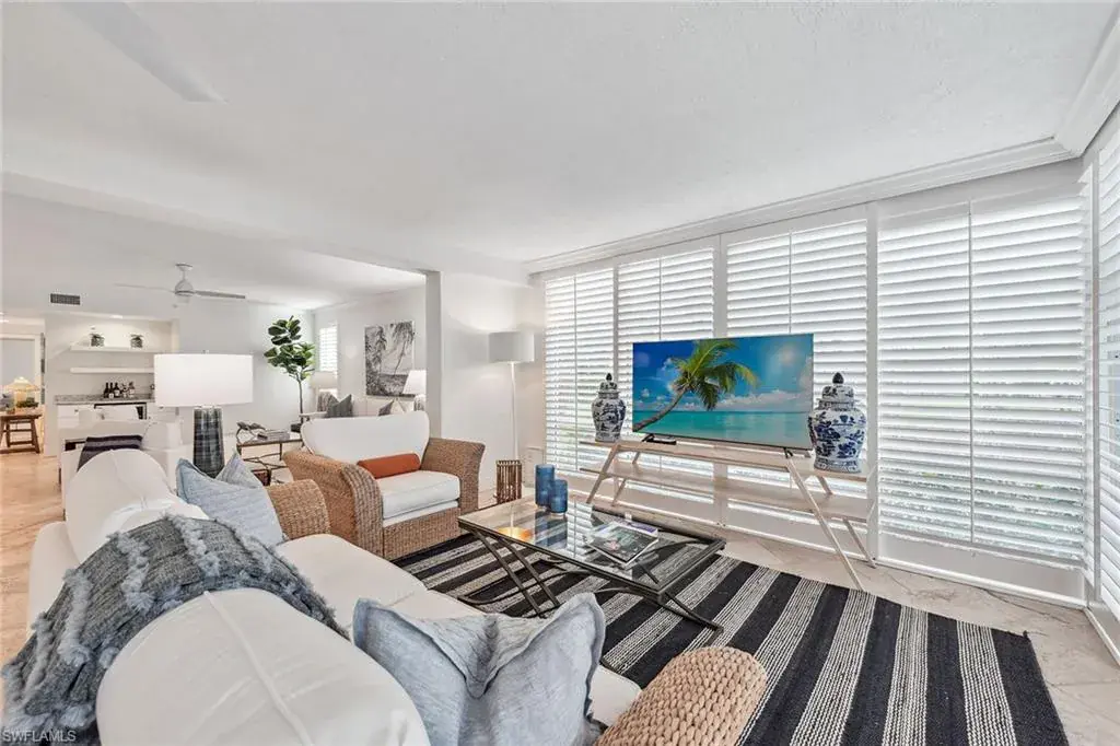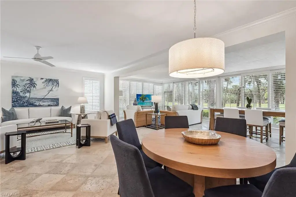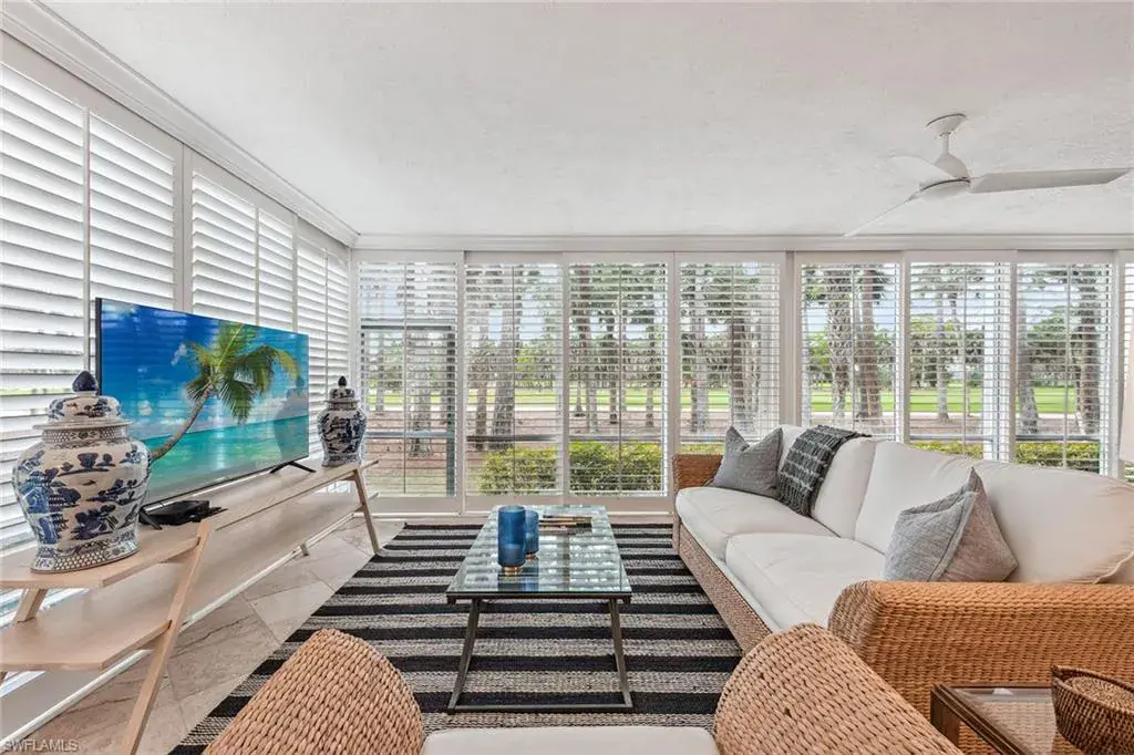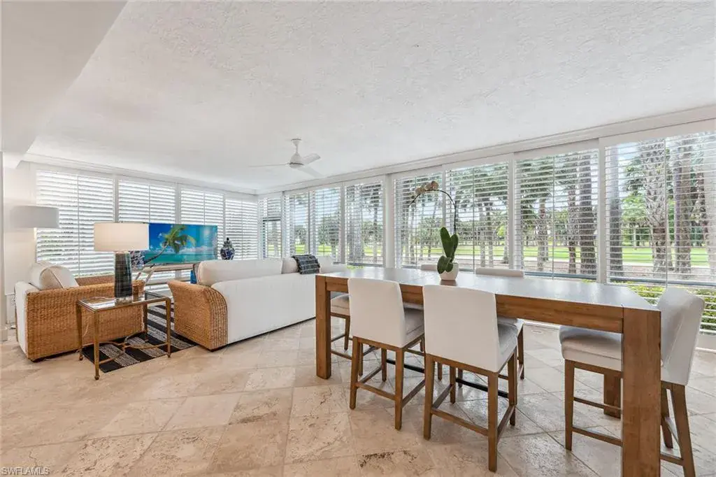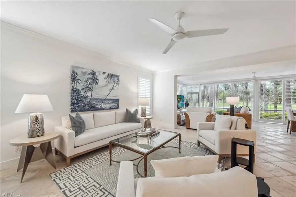 Expansive golf course views await in this completely reimagined end-unit condominium, offering three spacious bedrooms, three baths and a one-car garage! With its glass-enclosed lanai, this luxurious residence is ideal for year-round living, showcasing incredible square footage rivaling most homes. This unit also features many newly completed designer upgrades, some of which include a new kitchen, all-new luxury appointed baths, travertine flooring, plantation shutters, and a designer furniture and accessory package. The spacious owner’s suite offers a spa-inspired bath and large walk-in closet, while both guest bedrooms are privately situated and luxuriously appointed, each offering access to en-suite baths. This beautiful residence is ready for you to enjoy the 2024 season. Eagle Creek Golf and Country Club is a lush and intimate enclave set halfway between Naples and Marco Island, offering dining, golf, tennis, fitness and more. A social membership is required, or buyers can take advantage of the club’s social golf program, which offers instant golf access to those who join the golf membership waitlist.