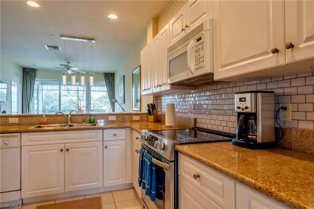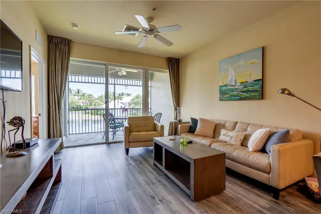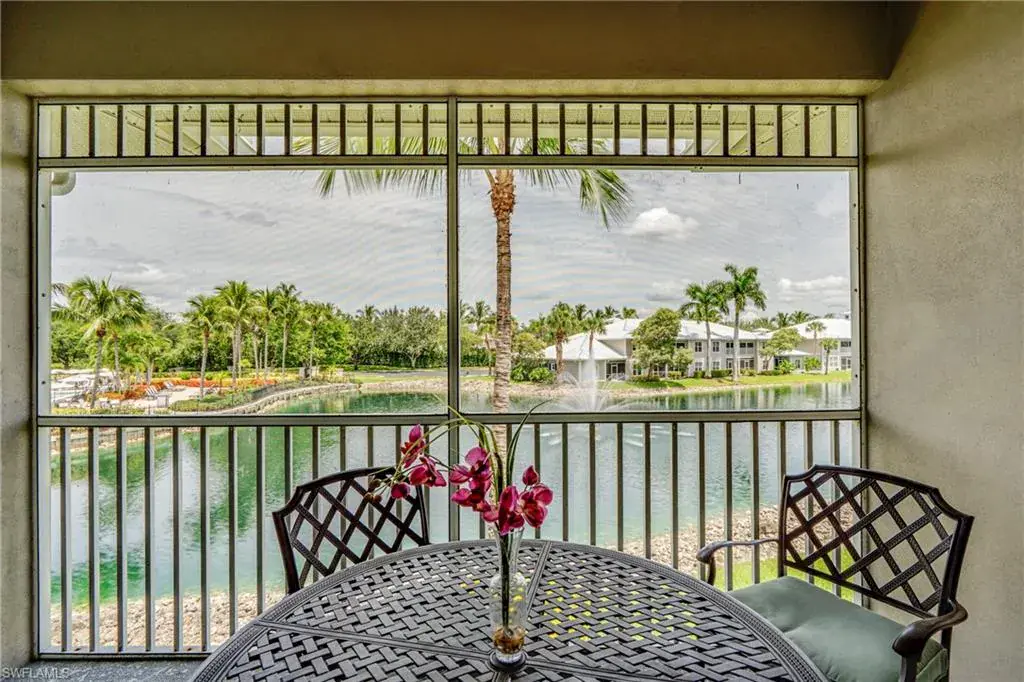 Best views and location in Lely resort. Excellent income producer, no Short Term rental restrictions. 42 free rounds of golf, on two championship courses, that are transferable to guests. Resort like setting: pool, hot tub, gym, tennis, pickle ball, shuffle board, club house, golf country club with restaurant and sports bar – all within 3minute walk. Larger updated unit. Sleeps 6, 2 bedrooms, 2 full bath, den with queen size pull out sleeper. Master with separate soaking tub. Office area, newer appliances include washer/dryer, fridge, and range. UNIT IT TURNKEY and beautifully appointed. Large furnished screened balcony overlooks lake and water feature. Low taxes, low insurance, HOA $697. / mo includes water, cable T.V., all amenities and grounds maintenance. Parking in front of unit, no limit on vehicles. Bocce, Bike Storage, BBQ grills on site. Rental management available. Excellent investment with excellent rental history
