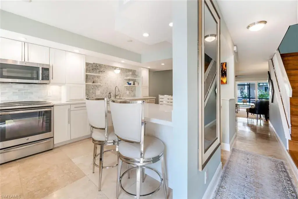 Boater’s Paradise! This turnkey, Naples Bay Club condo is a perfect choice for those seeking a convenient and luxurious coastal lifestyle. The renovations have transformed the unit into an elevated space, with travertine flooring, impact windows and sliders, and updated bathrooms. The open kitchen, equipped with high-end stainless steel appliances, quartz countertops, and glass backsplash, offers a great space for cooking and entertaining. Find tranquility in the primary suite with pine flooring, a large closet, and a screened lanai, offering private outdoor space to enjoy the Naples weather. Additionally, residents of the Naples Bay Club can enjoy the community pool with stunning views of the bay. For boating enthusiasts, this condo cannot be beat! Ownership includes the right to assign a 32-foot boat slip with direct Gulf access, no bridges. Don’t miss out on the opportunity to experience the best of coastal living!