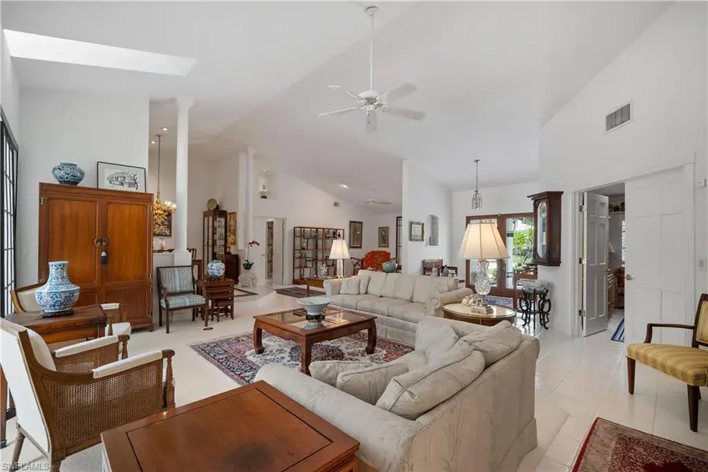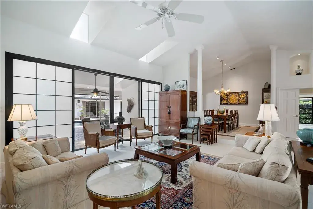 DESIRABLE PELICAN BAY! This 4000 + Sq Ft Unique home was designed to wrap around all the outdoor living space/pool and to have spectacular views from almost every room in the house. This western facing lot is full of mature landscaping, fruit trees and a privacy wall with a screened in Pool/Lania area. On one side of the house is a Master Suite with wet bar and his/hers Dens and Master Bathrooms. On the other side is an Open Kitchen Family Room with vaulted ceilings and skylights and additional guest rooms. You can move right in and enjoy or you can remodel and re-create the space for your Dream Home. These Original Owners did a Renovation and addition in 1993 and installed a new Aluminum roof with a 40 year warranty in 2004. Pelican Bay is centrally located in the heart of Naples and walking distance to Waterside Shops and Artis-Naples. Pelican Bay is the ONLY subdivision with 3 miles of deeded beach. It also includes 2 Beach restaurants, Canoeing, Kayaking, Sailing, Tennis and miles of nature paths for walking and biking, full service fitness center, nutrition and wellness. THERE HAS NEVER BEEN HURRICANE DAMAGE EVER!