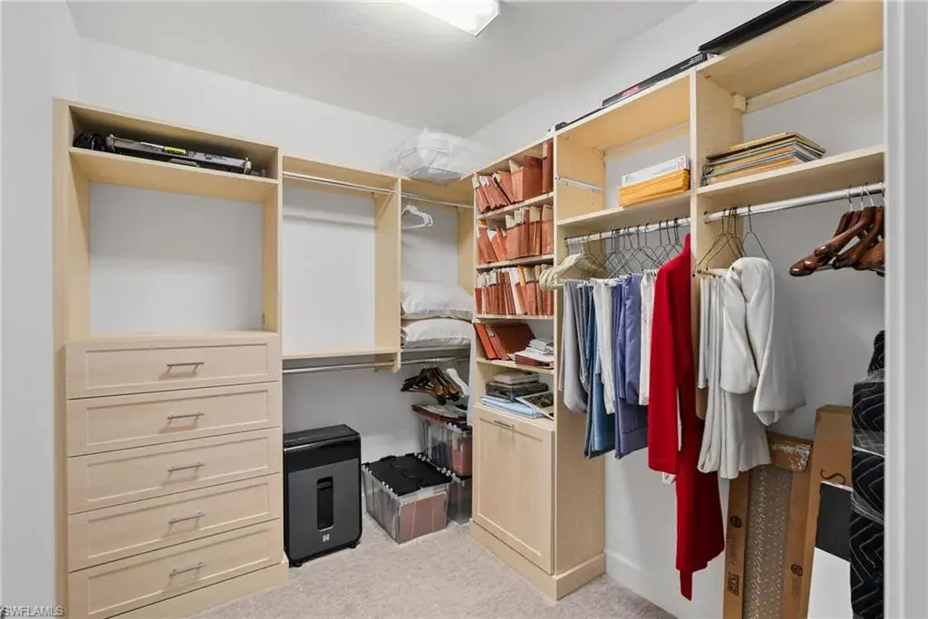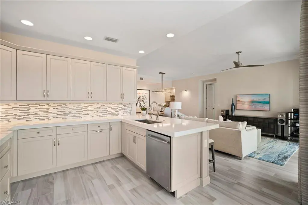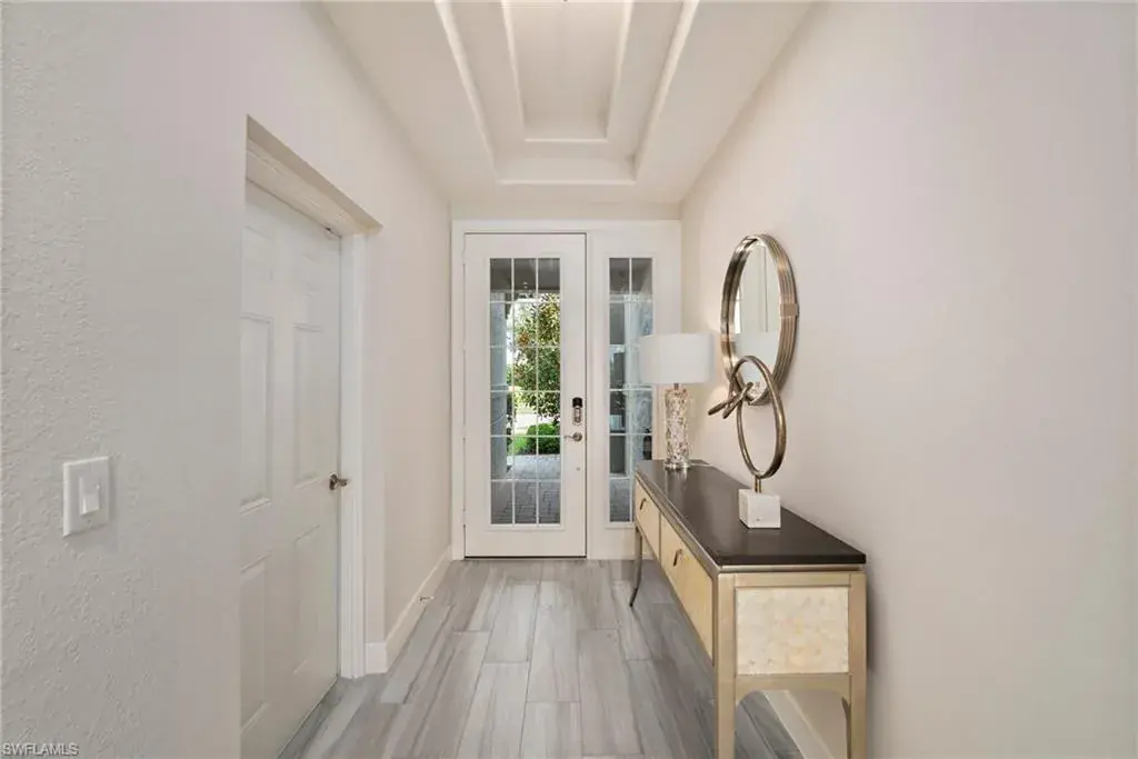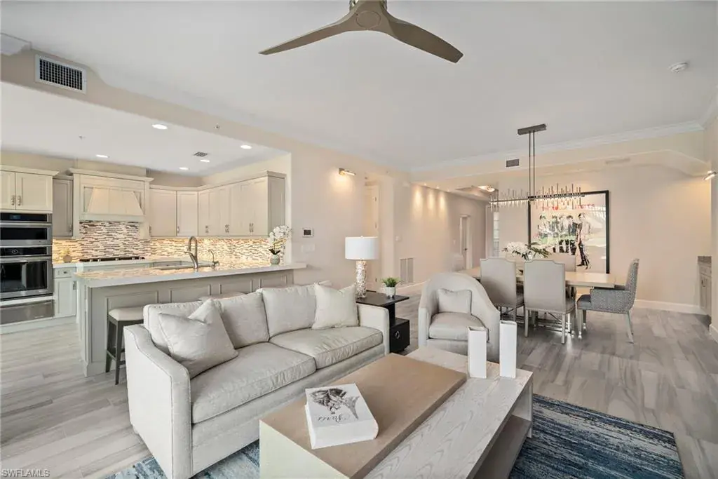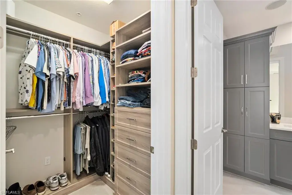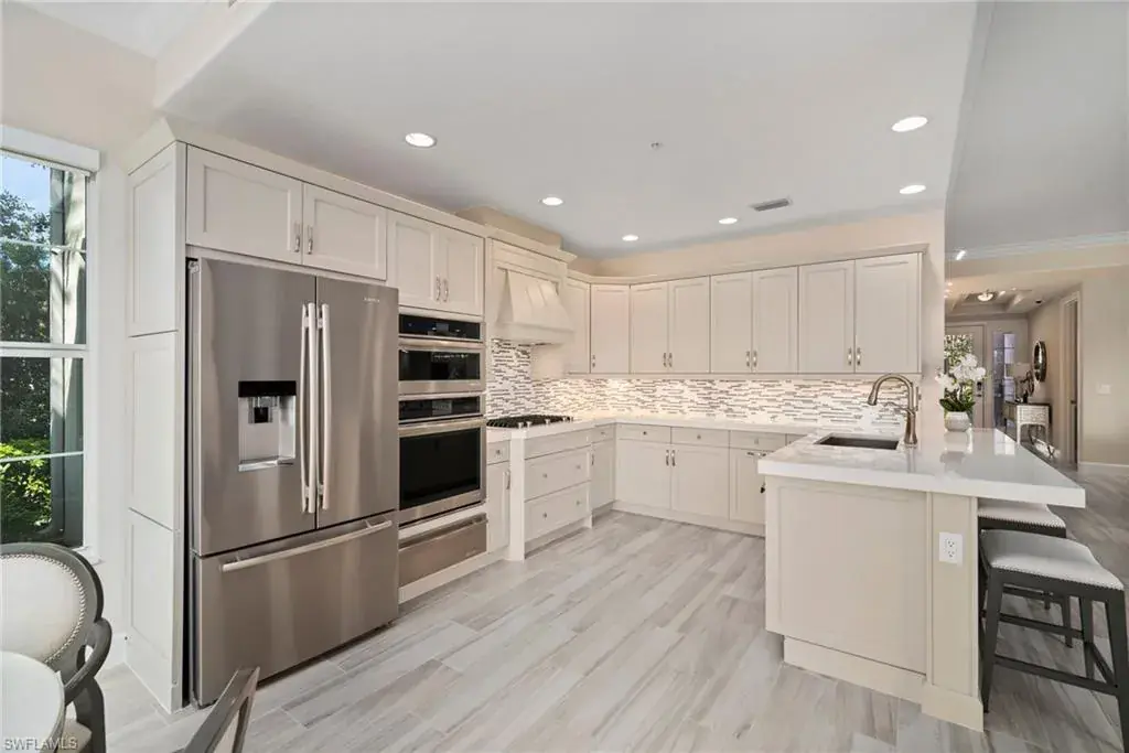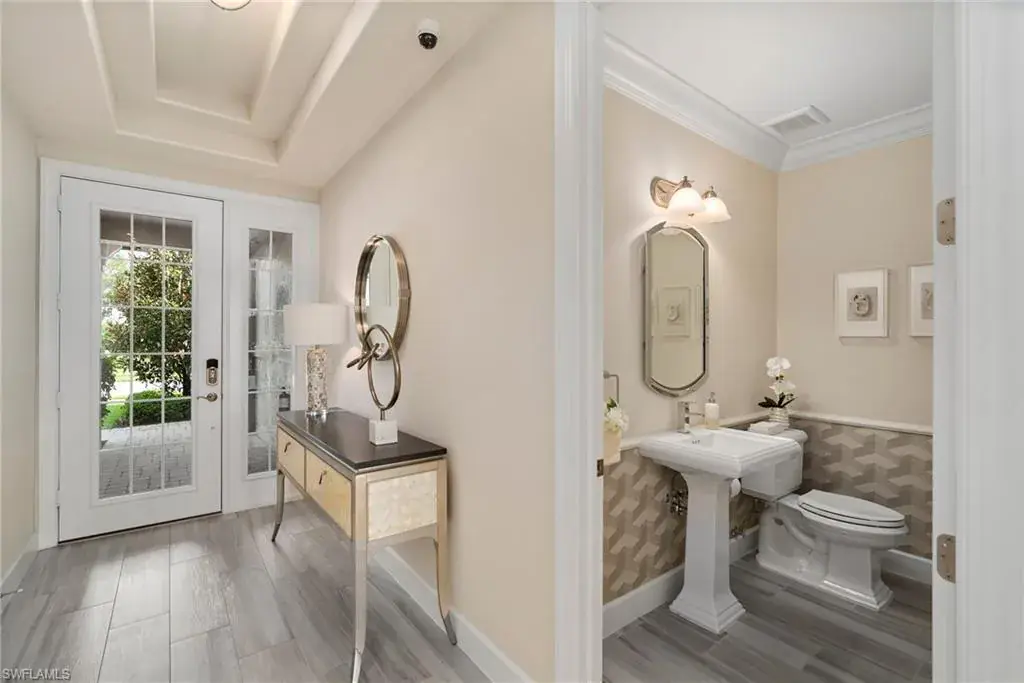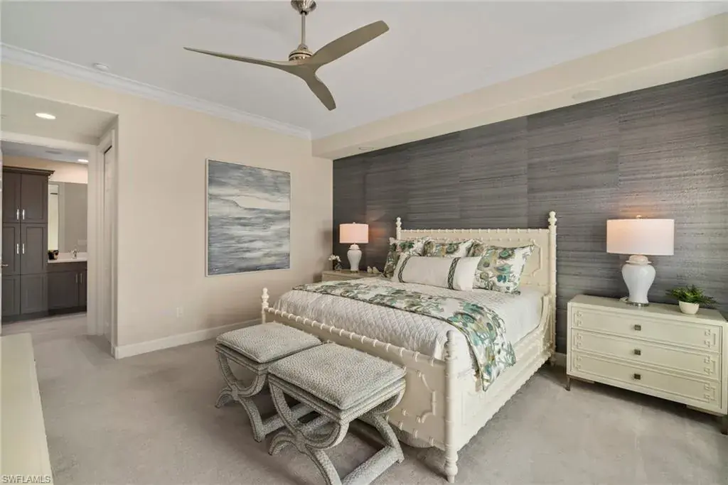 COVETED AND FIRST TIME AVAILABLE, LONG LAKE AND GOLF COURSE SIGNATURE CLUB LOCATION!! Stunning Norris high end FURNISHED first floor coach home with panoramic views! Meticulously maintained and move in ready! Beautiful light grey kitchen cabinets with upgraded SS Jenn Air natural gas appliances to include a warming drawer, gorgeous tile backsplash, one level 2″ thick quartz countertops, Under Cabinet Kitchen Electric Outlets, custom power blinds as window treatments, custom closets, upgraded grey plank tile floors throughout living area including den with carpet in primary and guest bedroom, Smart Home control of HVAC, Garage & Front Door Lock, Lighting, Shades, Advanced 10-camera Security System with central station monitoring, Sonos Ceiling Speaker Systems, In-duct UV air purifier, Extensive Garage Cabinets, Finished Garage Attic with lighting, flooring and pulldown stair entry, Culligan Water Filter – Kitchen/Icemaker & Whole Home Water Softener, convenient bar in dining room with glass front cabinets and a long open entry foyer! Enjoy the luxury of STORM SMART electric hurricane screens on lanai to enjoy all year long! The Signature club offers a private entrance into The Players Club! Enjoy all the amenities with immediate membership to The Players Club and Spa, 2 resort pools, lap pool, tiki bar, fitness facility, full service spa, fine dining, movie theatre, billiards room, pickle ball, tennis and bocce! The Classics private golf is optional at Lely Resort but there are 2 public golf courses to enjoy! This IS where you want to live!!