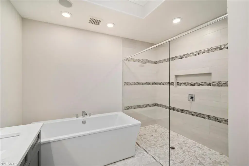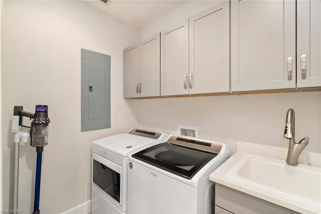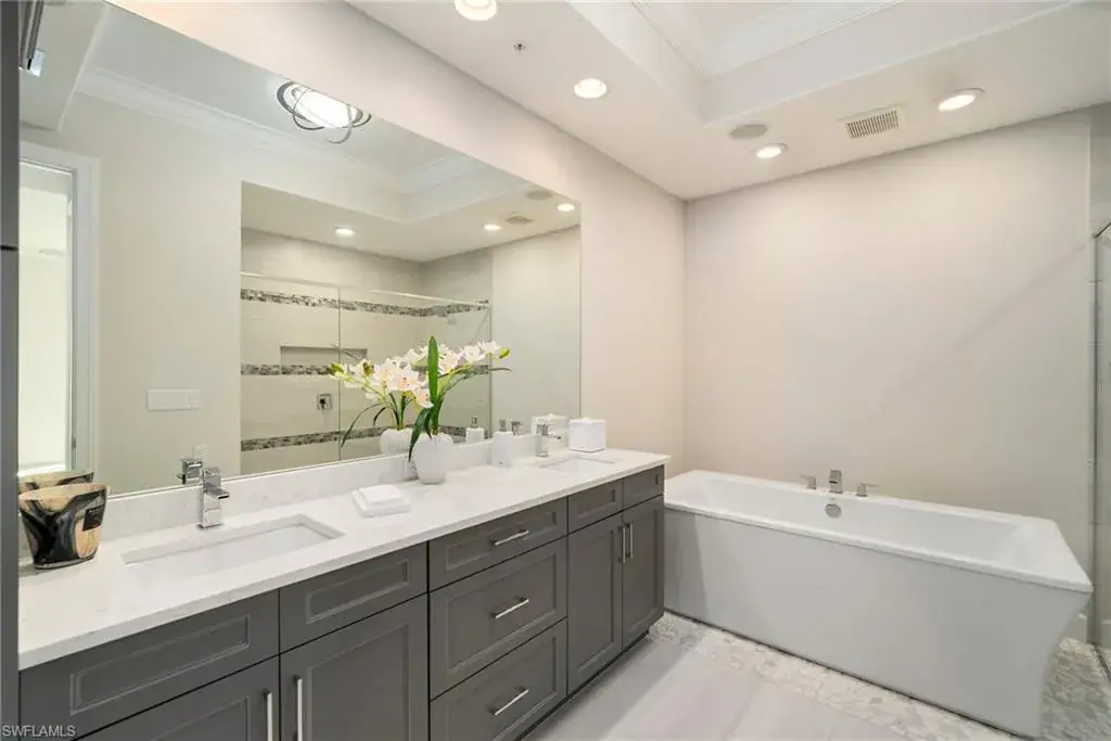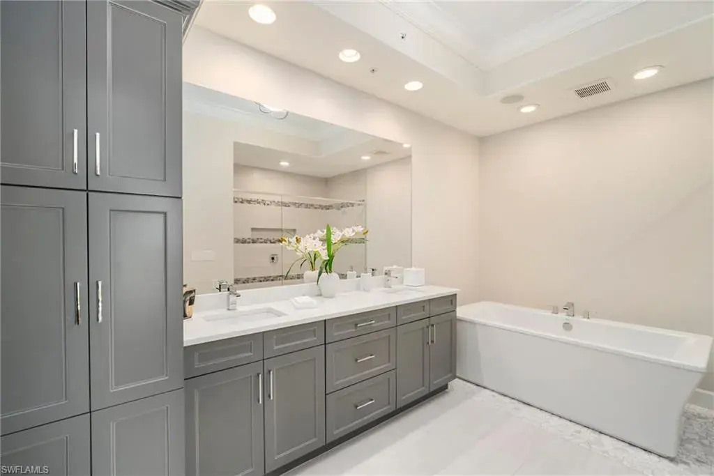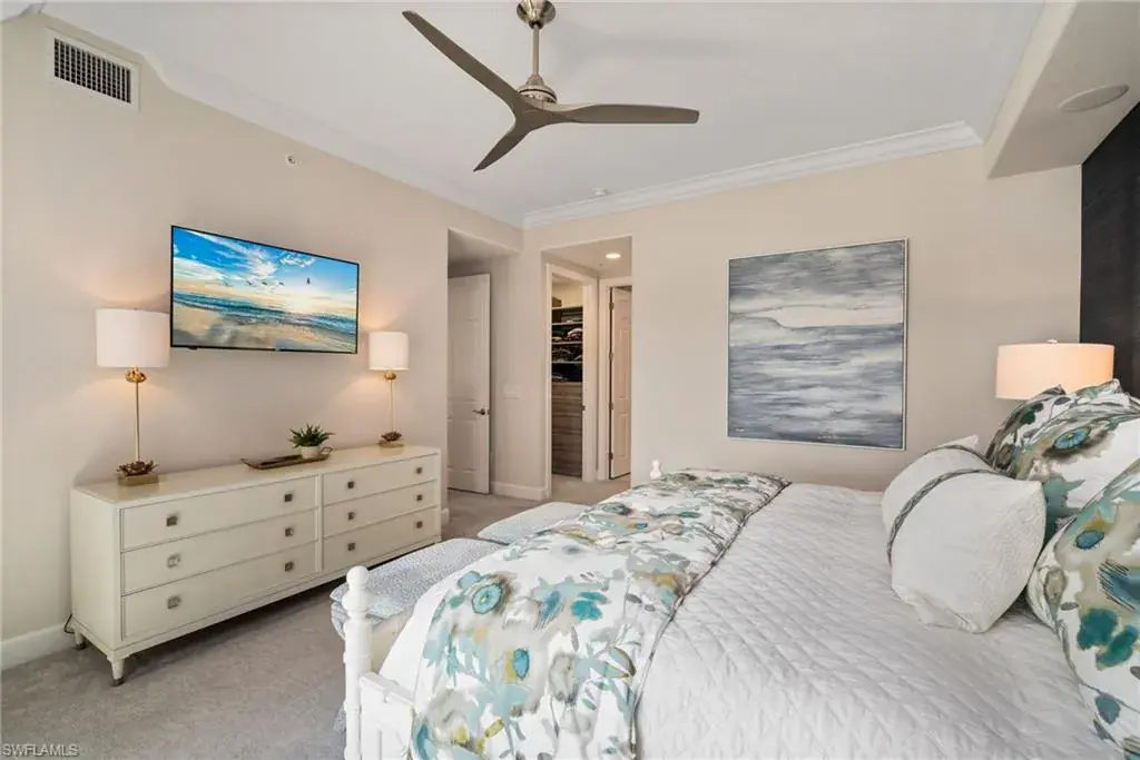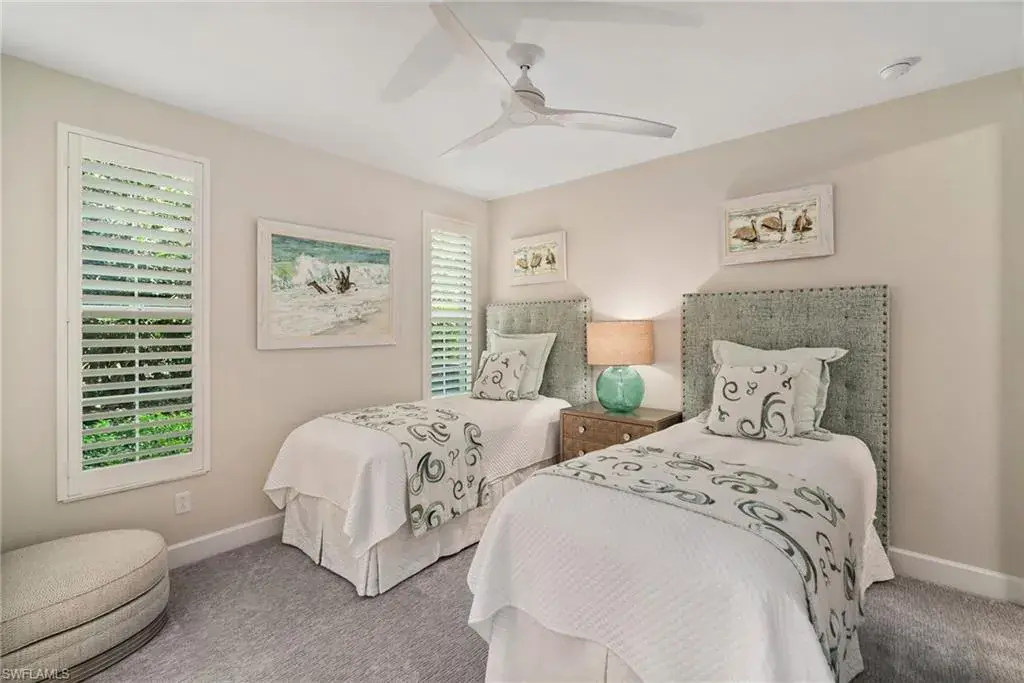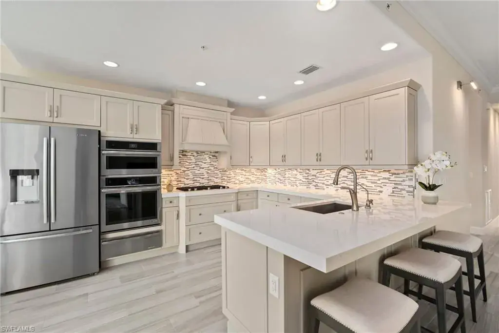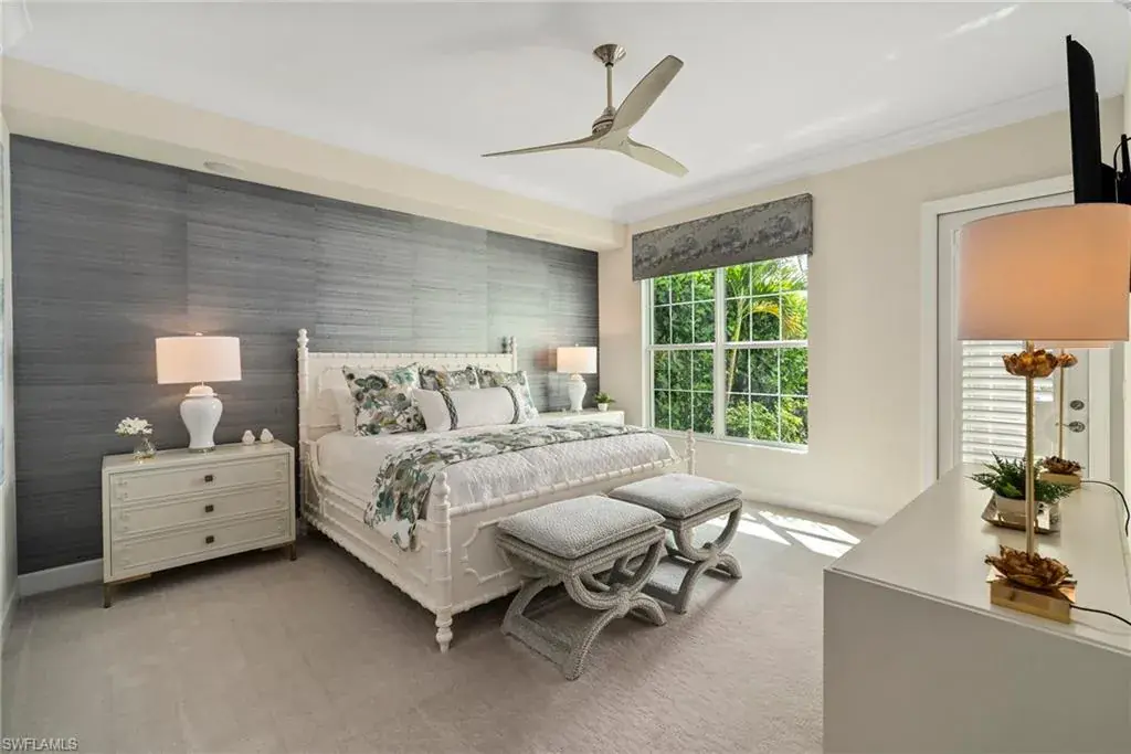 COVETED AND FIRST TIME AVAILABLE, LONG LAKE AND GOLF COURSE SIGNATURE CLUB LOCATION!! Stunning Norris high end FURNISHED first floor coach home with panoramic views! Meticulously maintained and move in ready! Beautiful light grey kitchen cabinets with upgraded SS Jenn Air natural gas appliances to include a warming drawer, gorgeous tile backsplash, one level 2″ thick quartz countertops, Under Cabinet Kitchen Electric Outlets, custom power blinds as window treatments, custom closets, upgraded grey plank tile floors throughout living area including den with carpet in primary and guest bedroom, Smart Home control of HVAC, Garage & Front Door Lock, Lighting, Shades, Advanced 10-camera Security System with central station monitoring, Sonos Ceiling Speaker Systems, In-duct UV air purifier, Extensive Garage Cabinets, Finished Garage Attic with lighting, flooring and pulldown stair entry, Culligan Water Filter – Kitchen/Icemaker & Whole Home Water Softener, convenient bar in dining room with glass front cabinets and a long open entry foyer! Enjoy the luxury of STORM SMART electric hurricane screens on lanai to enjoy all year long! The Signature club offers a private entrance into The Players Club! Enjoy all the amenities with immediate membership to The Players Club and Spa, 2 resort pools, lap pool, tiki bar, fitness facility, full service spa, fine dining, movie theatre, billiards room, pickle ball, tennis and bocce! The Classics private golf is optional at Lely Resort but there are 2 public golf courses to enjoy! This IS where you want to live!!