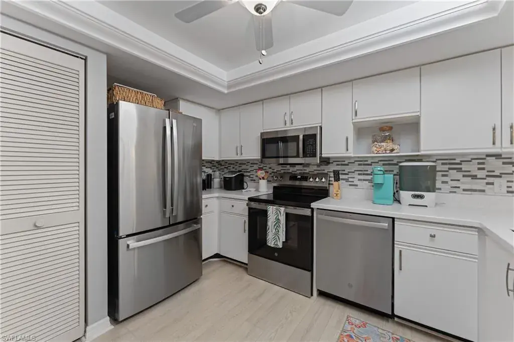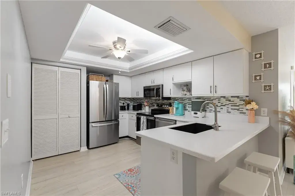 Welcome to your slice of paradise in the heart of Naples! Stroll into easy living with this 2-bedroom, 2-bathroom condo! Sip on your morning Coffee while enjoying the Private Lanai views overlooking the Golf course, Pool and Spa area which are just a few short steps away. This home has many recent updates including S/S Kitchen Appliances, New Countertops, Bathroom Vanities, LVT flooring, New Washer/dryer and New Water Heater! Located a short distance from Hibiscus Golf Club open to the public, this condo offers the convenience for golf enthusiasts who don’t want to pay the mandatory membership fees. Close to downtown Naples, world class shopping, dining and sand beaches. Hurry, schedule your viewing today and don’t miss out!