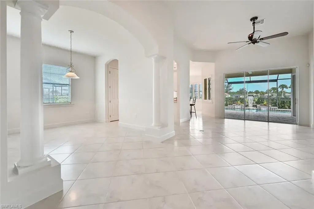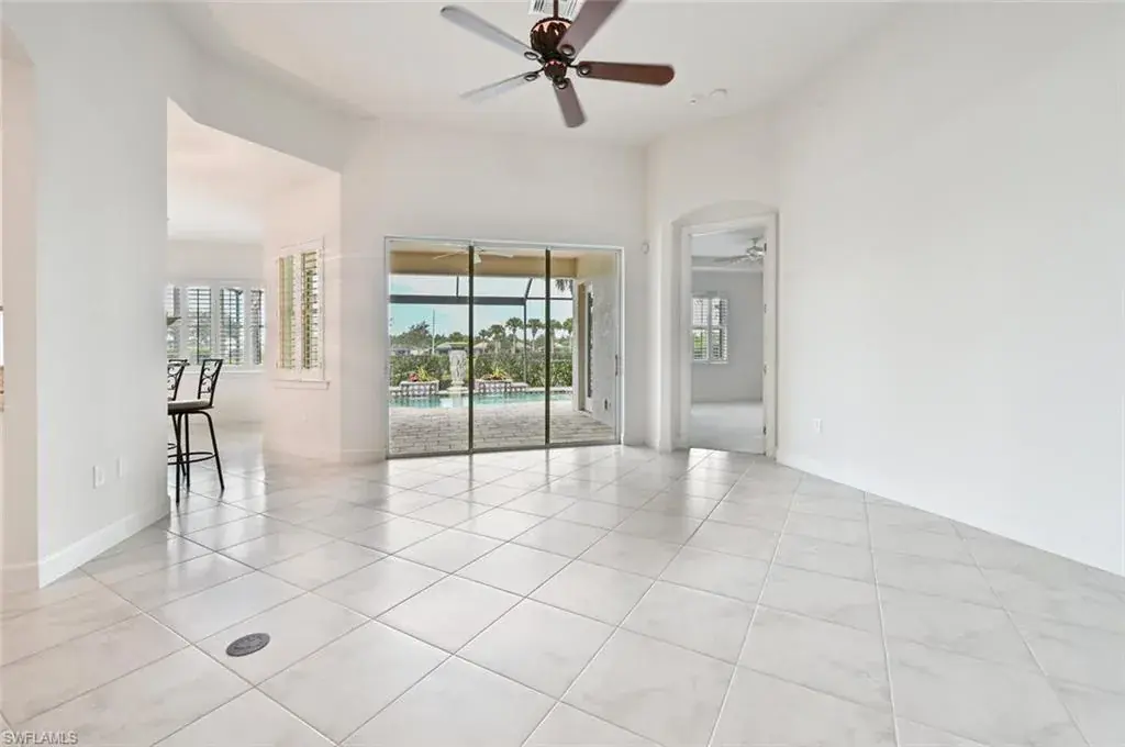 Stunning home in a terrific neighborhood and so close to downtown Naples Fifth Avenue and the beaches. Impeccably maintained three bedroom ( each with its own bathroom ) plus den pool home in the scenic neighborhood Madison Park! Madison Park features six lakes and a large preserve area perfect for jogging, walking or biking. The home is located on a cul-de-sac with a large setback lot giving total privacy. Beautiful upgraded pool and lanai overlooking a beautiful private lake. This home has it all and you’ll appreciate the care and detail paid to this lovely home. Plantation shutters, granite countertops, neutral decor, volume ceilings, and even recently painted! New AC in 2022. Just move in and appreciate this lovely community from the privacy this home offers. Low Home Owner Association fees that include some landscaping and grass cutting.