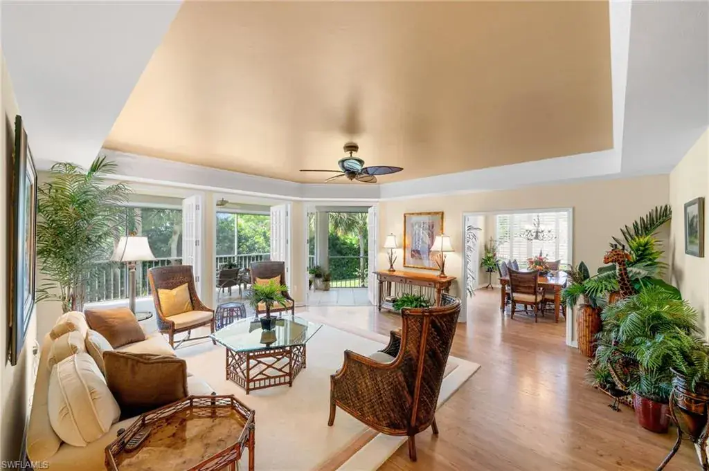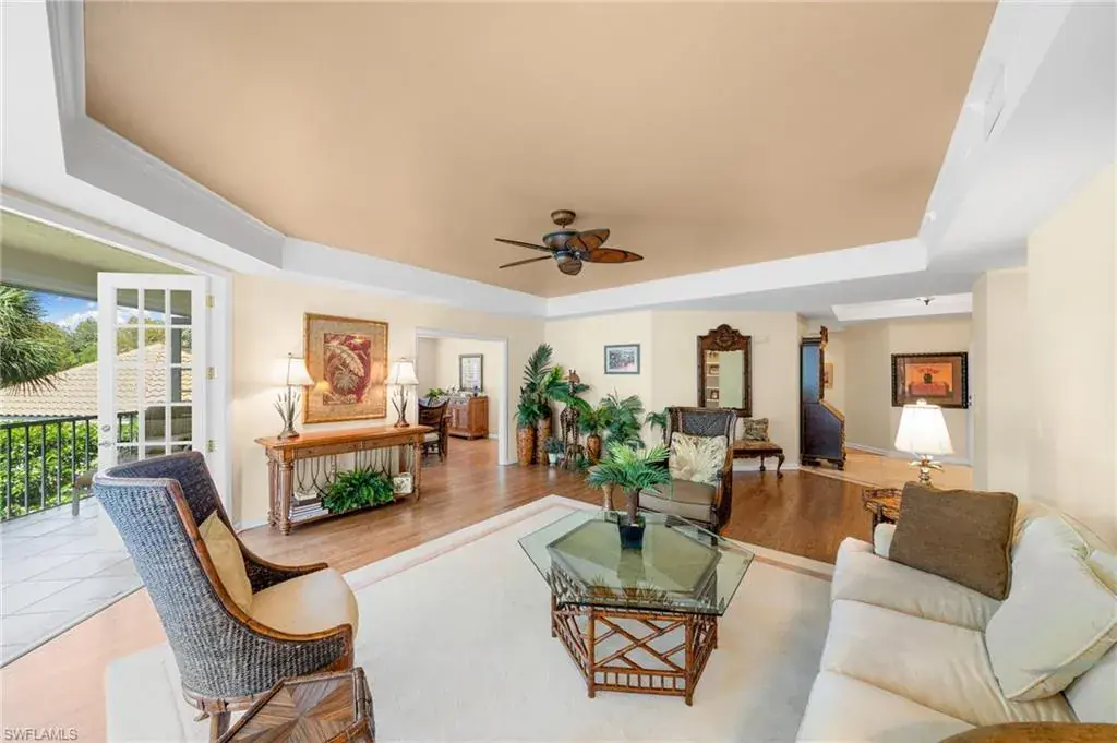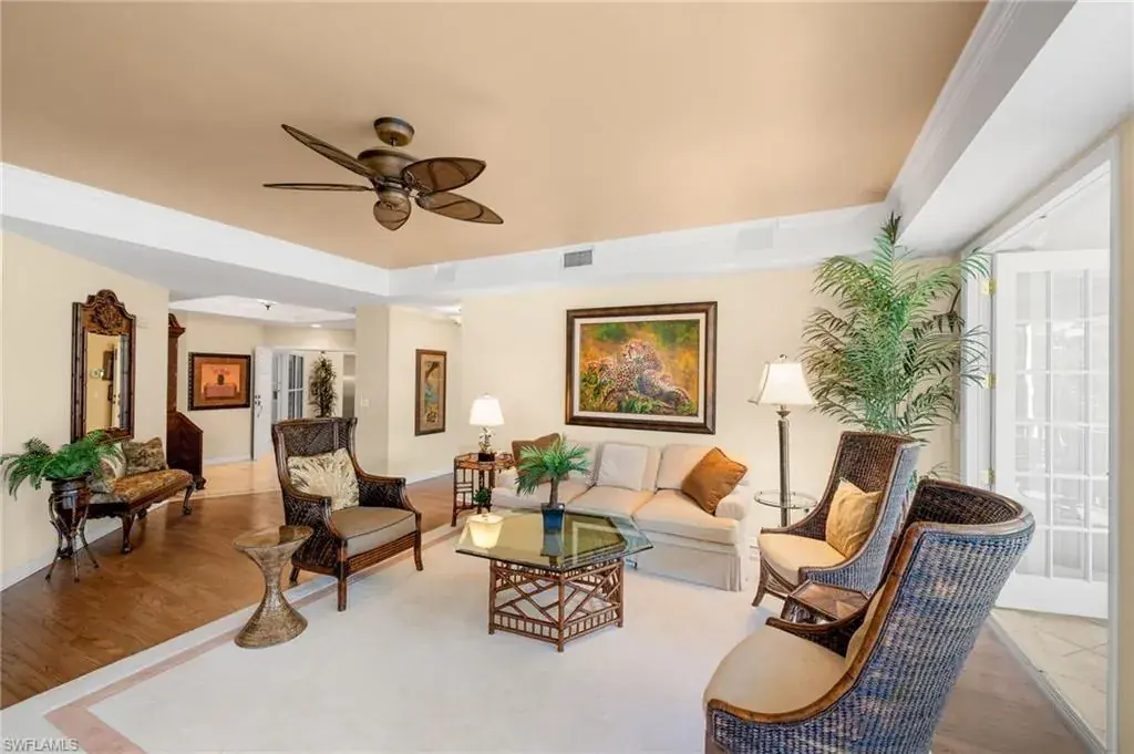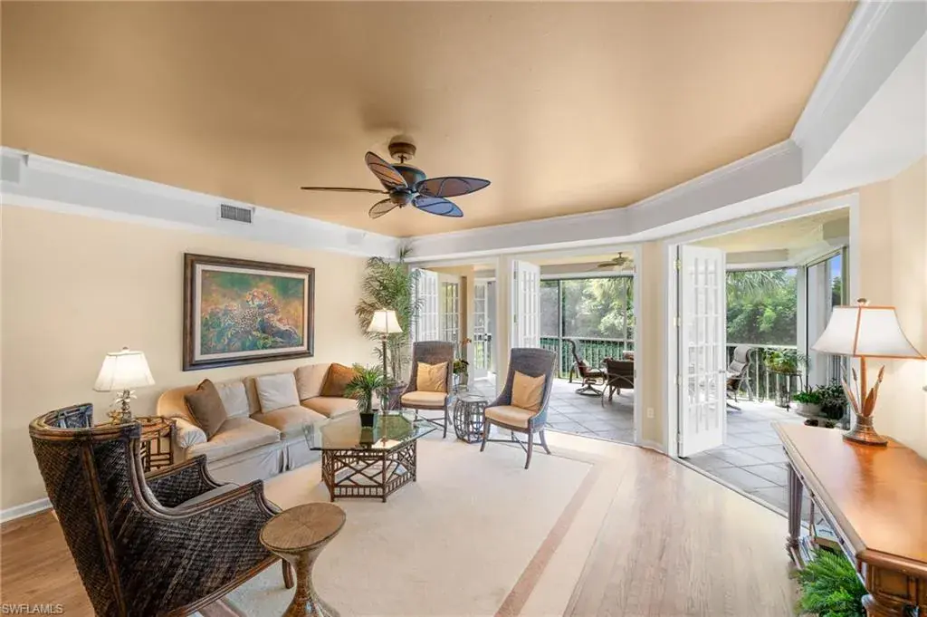 Experience elegance in this expansive 2,800 square foot corner condominium located in The Crescent at Pelican Bay! This unique 3 bedroom plus den, 3.5 bathroom condo will instantly feel like home. The living room is bathed in sunlight and offers generous space for entertaining adorned with hardwood floors, complemented by an additional den and breakfast nook. Throughout your residence, you’ll discover charming French doors that guide you to your private wrap-around lanai. The Primary bedroom features its own entrance to the private lanai, space for a sitting area, along with a recently renovated primary bath and walk-in closet. Two guest bedrooms offer private ensuites and secluded patios for guests to relish, with a separate ½ bathroom situated off the main entrance of the condo. A private two-car garage is housed within the building, along with a separate exterior storage unit. A new A/C unit was installed in 2021. The Crescent, a gated community, is equipped with a pool, hot tub, clubhouse, fitness center, and more! Residents of Pelican Bay enjoy exclusive amenities, including two private beach clubs (with private trams) and restaurants, two tennis complexes, and a community center with a wellness center, offering the ultimate lifestyle that blends elegance, privacy, and stunning stretches of white sand. Pickleball courts coming 2024!