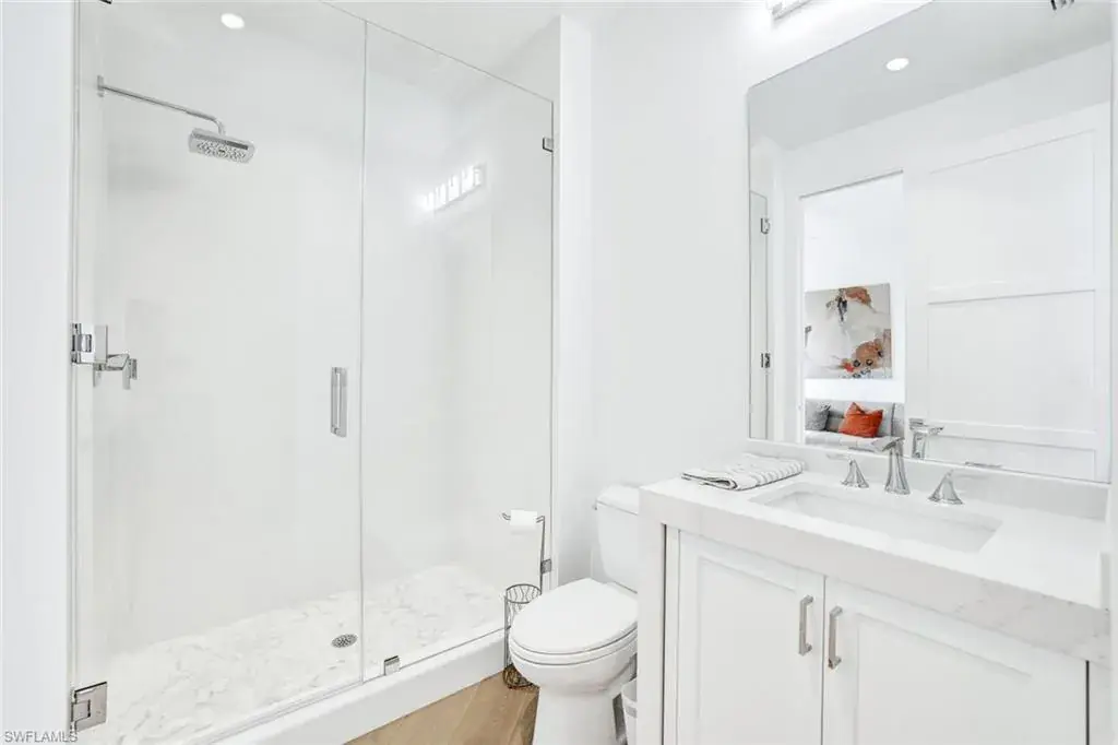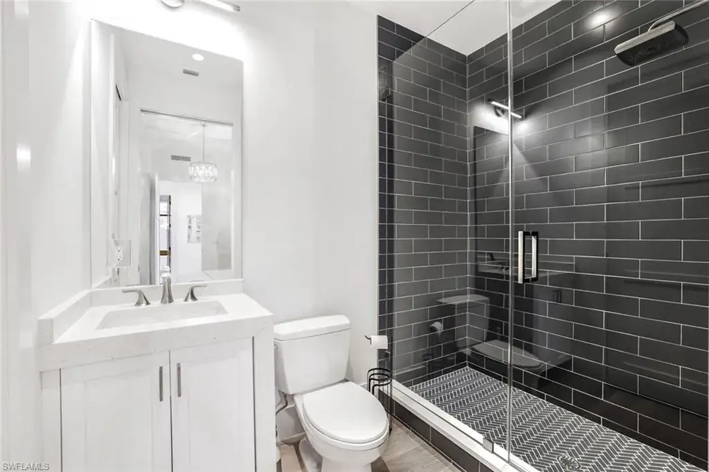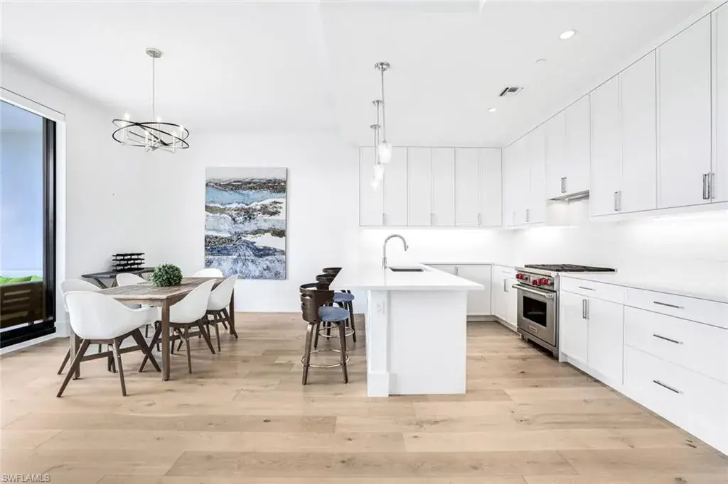 One of the lowest price per square foot three-bedroom condos in Old Naples! Completed in 2021 and perfectly positioned in the highly walkable downtown area, this residence offers the best three bedroom value west of 41. Look no further, this is the condo you have always wanted. Enjoy a stunning resort style pool, rooftop living space, and unmatched convenience. As a corner unit in a newer building, having been lightly lived in, and meticulously maintained, this is a rare opportunity for exceptional condominium living. Featuring single level living and contemporary clean lines, this furnished corner unit condominium features several high end interior upgrades including DuChateau engineered wood flooring throughout, top-of-the line appliances with a Wolf natural gas range, designer cabinetry, 3-inch waterfall quartz countertops, LED lighting, 10 ft ceilings & large windows which provide ample natural lighting. Designed for entertaining, the well-designed kitchen & open main living areas lead directly to a spacious covered lanai for enjoying colorful nightly sunsets. Each of the 3 bedrooms have ensuite bathrooms providing comfort & privacy for all. An assigned covered parking space is included with purchase. Building amenities include two open air spaces with a pool, multiple seating areas & green space located on the second level, and a rooftop gathering space with fire pit and barbecue station. Just a few blocks to the beach and 5th Avenue South, this location is highly desirable for enjoying everything the Naples lifestyle has to offer. Don’t miss this opportunity to own a piece of paradise.