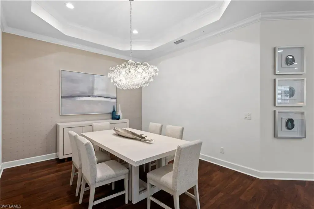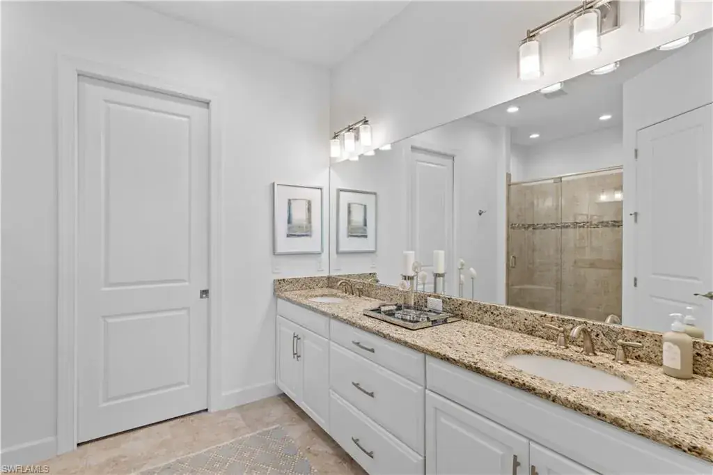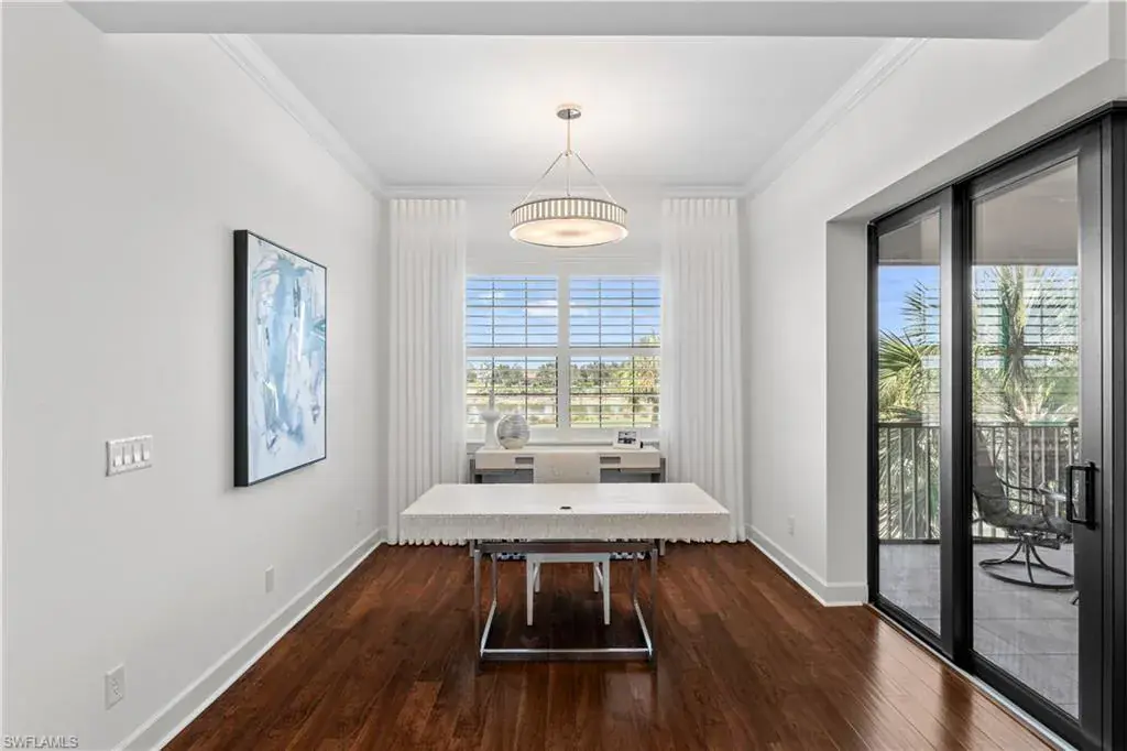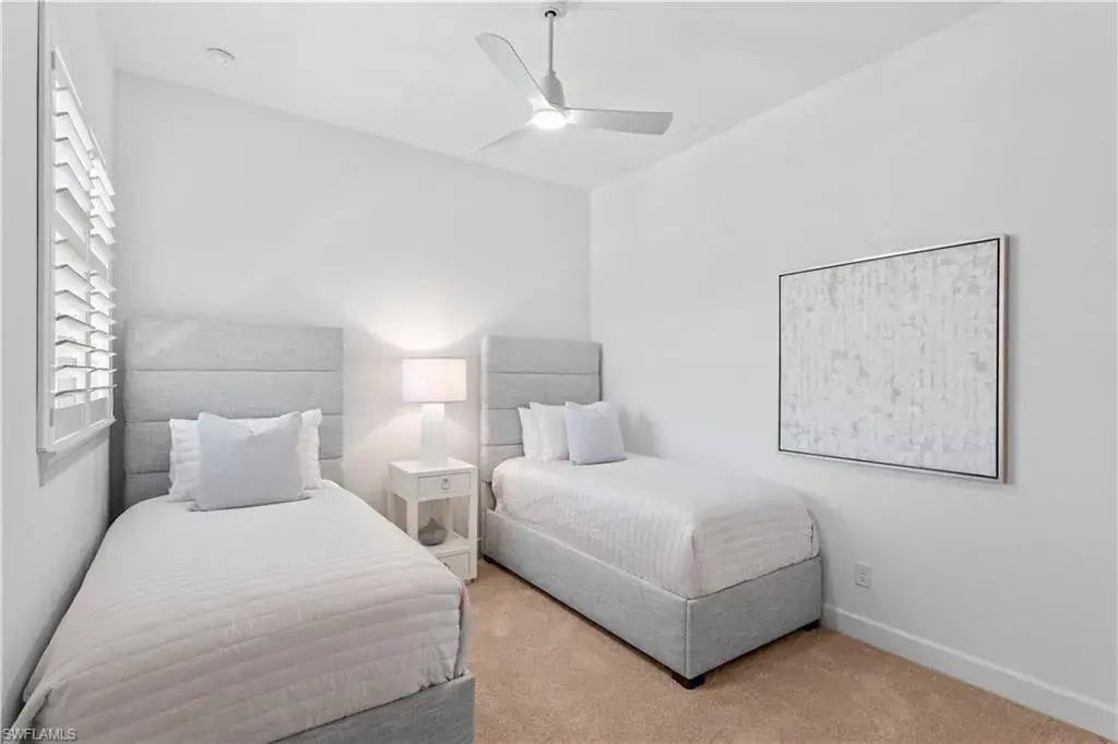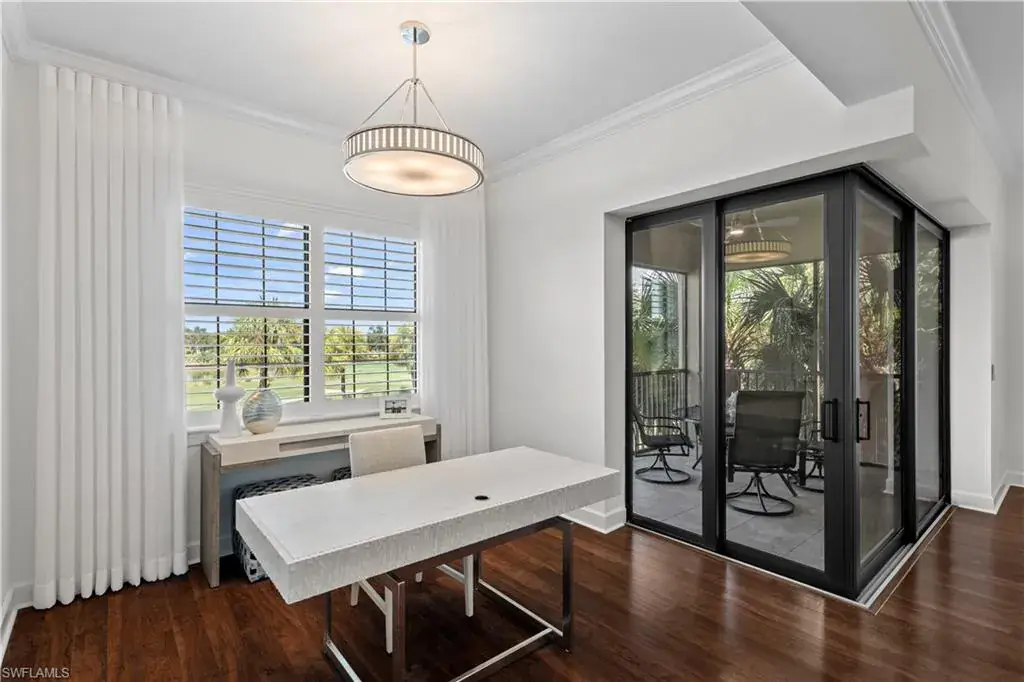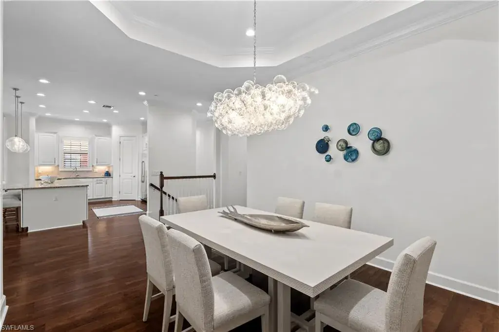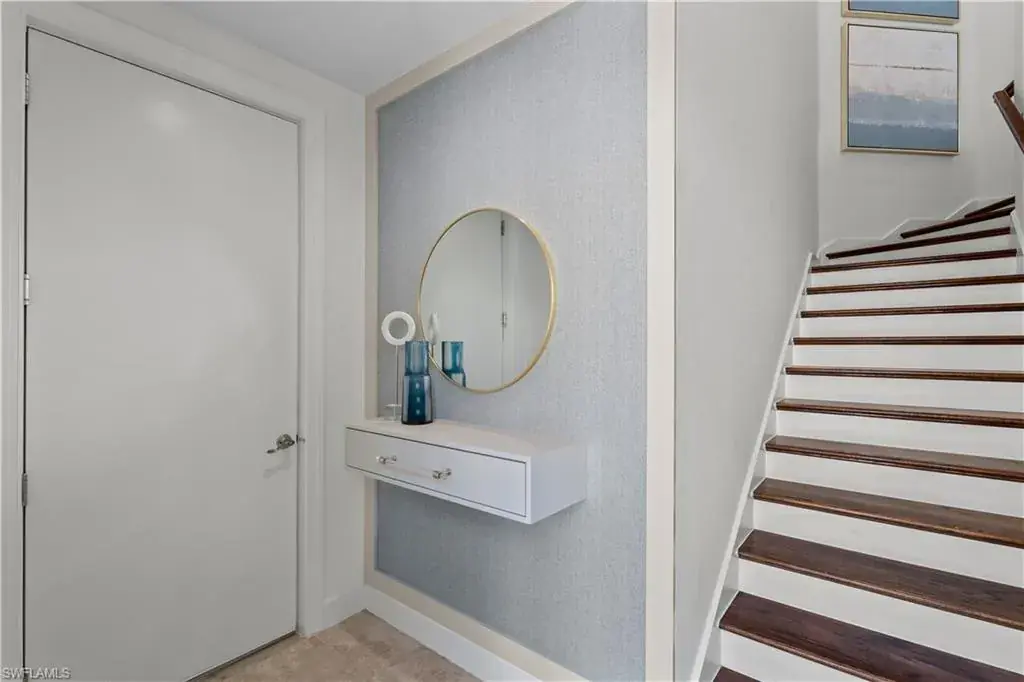 FULL GOLF MEMBERSHIP INCLUDED! $100k Designer Furniture/Decor package included! Start living a vacation lifestyle in Esplanade G&CC! This 3 bedroom plus bonus area, 3 full bath “Romano” second-floor END UNIT coach home blends style, comfort, and panoramic views of a tranquil lake, preserve, and the lush 8th green, with no rooftops interrupting the scenery, this residence offers an unparalleled sense of privacy and serenity. Designed with an open, airy layout, the expansive great room is anchored by an impressive zero corner pocketing sliding glass door, inviting you to step out onto a private, tiled and screened lanai—perfect for enjoying the warm Naples breeze and picturesque sunrises. The heart of the home is a beautifully appointed kitchen featuring a generous center island, stainless steel appliances, and abundant cabinetry, creating a space that is as functional as it is inviting. The great room showcases a custom feature wall complete with an LED fireplace, built-in cabinetry, and stylish shelving, adding both warmth and sophistication to the space. Crown molding and a freshly painted interior enhances the architectural detail. Elegant upgrades are found throughout, including hurricane-impact windows and doors, plantation shutters & custom window treatments throughout, special order designer lights/fans/chandeliers, and more!