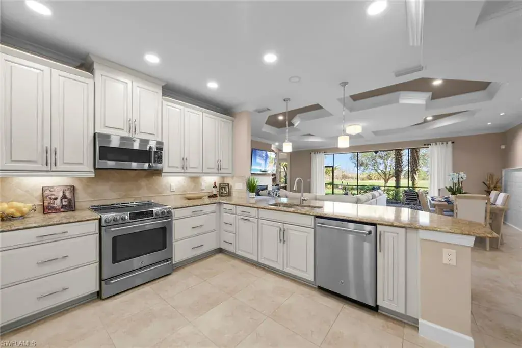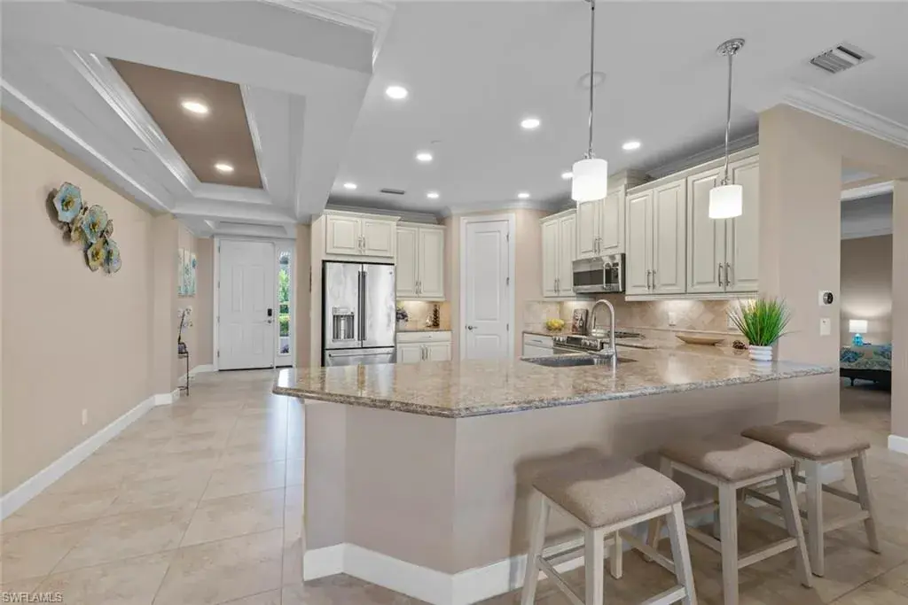 Welcome to the BEST-PRICED GOLF HOME in Esplanade Golf & Country Club, where a FULL GOLF MEMBERSHIP INCLUDED and every day feels like a resort getaway. This immaculate, turnkey-furnished coach home offers 2 bedrooms, 2 bathrooms, and 1,717 square feet of bright, open living space that’s thoughtfully designed for both relaxation and entertaining. From the moment you step inside, you’re welcomed by a sense of lightness and calm. Updated LED lighting and new fixtures enhance the open-concept layout, where the kitchen, dining, and living areas flow effortlessly together. The kitchen is both stylish and functional, featuring stainless steel appliances, granite countertops, a designer tile backsplash, and a walk-in pantry—perfect for cooking, hosting, or simply enjoying a quiet cup of coffee. Slide open the glass doors and step onto your expansive screened lanai overlooking the 8th hole of the championship golf course. Whether it’s morning sunrises or sunset cocktails, the peaceful golf course views offer a daily escape just outside your door. The spacious primary suite is a tranquil retreat, complete with golf course views, a generously sized walk-in closet, and a spa-inspired bathroom with dual sinks and a walk-in shower. The private guest bedroom and bath are equally inviting, providing a comfortable and quiet space for friends or family. Additional features include hurricane-impact windows and doors, custom cabinetry and shelving, tray ceilings, crown molding, a one-car garage, and the convenience of owning your own golf cart for easy access throughout the community. Located near the front of the neighborhood, this home provides quick access to Esplanade’s unmatched amenities. Play a round on the private 18-hole golf course, lounge by the resort-style pool with cabanas and the Bahama Bar, enjoy tennis, pickleball, bocce, or work out in the state-of-the-art fitness center. Unwind at the Koquina Day Spa or indulge in the on-site dining options, including a fine restaurant, wine-tasting room, and Starbucks-style café. For added convenience, Bellano residents also have access to a satellite pool just a short walk away. This is more than just a 2-bedroom home—it’s a lifestyle rich in comfort, connection, and daily enjoyment. Don’t miss this rare opportunity to own the best-priced golf home in Esplanade Golf & Country Club. Schedule your private showing today.