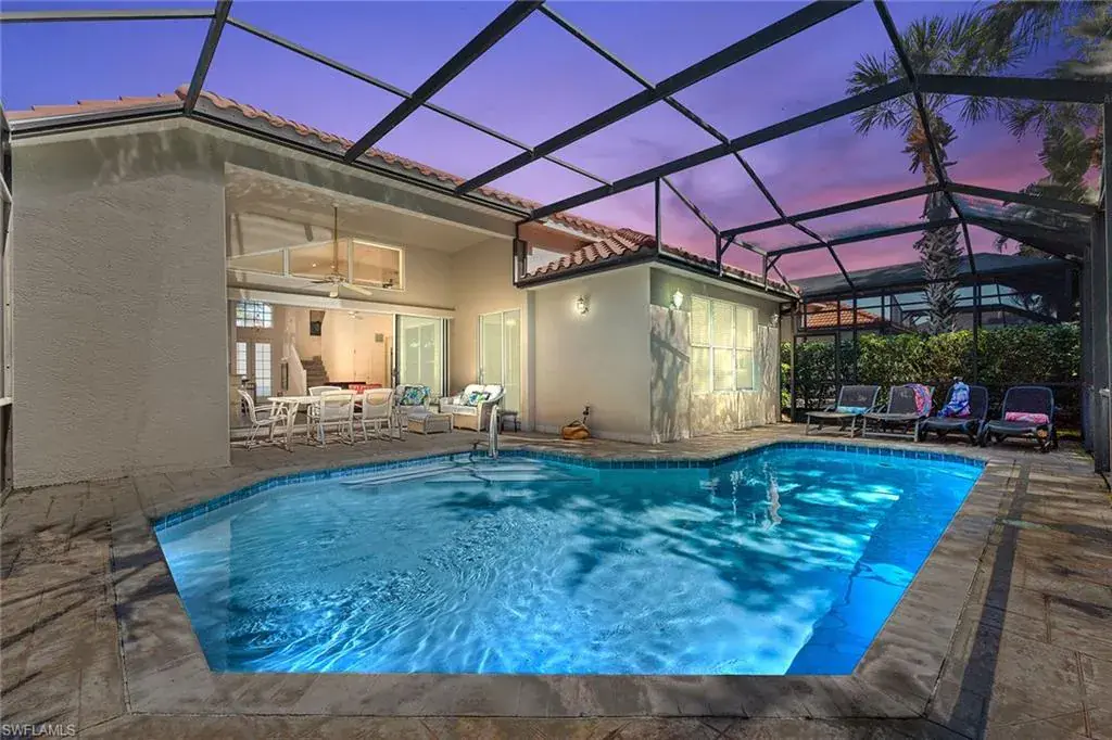 Welcome to your private oasis in the heart of Pelican Marsh! This three-bedroom plus den, three-bath pool home offers an open-concept layout, vaulted ceilings and a southern exposure that brings in beautiful natural light. The kitchen features a large center island and flows into a generous great room with views of the private screened pool area, ideal for relaxing or entertaining. Enjoy covered outdoor dining and grilling spaces, plus recent updates including a new roof (2024) and new air conditioner (2022). Pelican Marsh is a gated community with resort-style amenities such as eight Har-Tru tennis courts, six lighted pickleball courts, fitness center, private restaurant, optional golf and an active community center. Just minutes to beaches, shopping, dining and entertainment.