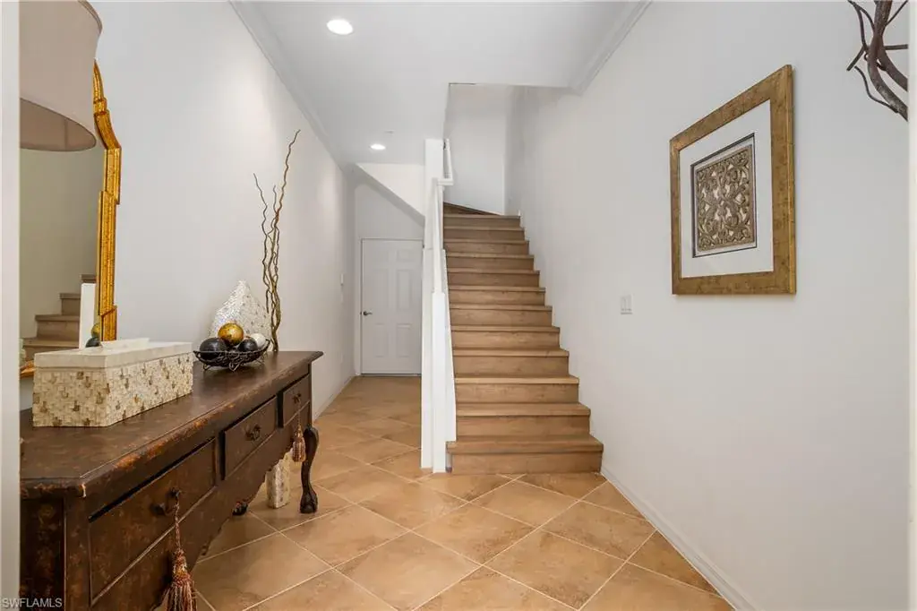 This immaculately maintained home is the much sought after TURNKEY San Pablo floorplan. Enter on the ground floor, which has a generous 2 car garage, up to the sprawling 3 br, 2 bth open floor plan. From the southern exposed lanai and a Juliet balcony off the master bedroom, to the tile on the diagonal through out, granite counter tops, stainless steel appliances, level 4 cabinets, crown molding, wood stairs, window coverings, and a brand new roof…There is a spacious outdoor balcony with access from both the large family room or the master bedroom suite. Master br has a large walk-in closet…The 2nd and 3rd bedrooms share a full bath and can be closed off for privacy. This home has been extremely well cared for, only used in season and never rented. The Village Center amenities include a resort style pool with waterfall, tot pool, playhouse, spa, sand volleyball, bocce, pickleball, basketball, and tennis courts. There is a state of the art fitness center, movie theater, pub, bistro, ice cream parlor and library. There are three golf courses, 2 are public in the Lely Resort. Sam Snead’s restaurant overlooks Flamingo golf course in Lely and is open to the public. You can make use of over 25 miles of biking, walking and jogging paths within Lely resort. Ole is a resort style community located close to restaurants, shopping, boating, beaches , library and state of the art hospital. Lely Resort is just 8 miles to downtown Naples, and Marco Island. Just bring your toothbrush….