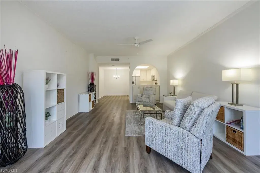 Welcome to the epitome of luxury senior living at Arbor Trace! This stunning, freshly painted, Deluxe 1-bedroom Mango floor plan condo offers 1,080 square feet of meticulously updated living space designed for comfort and elegance. Step inside and discover an exquisitely renovated kitchen and bath, beautifully enhanced by luxury vinyl plank and tile flooring throughout. The spacious lanai has been fully enclosed and seamlessly integrated into the interior, providing additional living space with serene treetop views. Enjoy the convenience of modern living with plantation shutters, an in-unit stackable washer and dryer, and two additional storage units. A 1-car garage is also included, offering both security and ease of access for your vehicle. Maintenance fees cover a comprehensive range of services, including high-speed fiber optic television and internet, water, sewer, trash removal, pest control, and building insurance. Indulge in added luxuries like fitness amenities, fine dining options, and complimentary transportation to medical appointments and shopping, ensuring a truly worry-free lifestyle. This condo offers fee-simple, deeded ownership with 100% equity, low property taxes, and no financial or medical commitments. Arbor Trace caters to an active 55+ community, providing residents with priority placement in Arbor Glen, the assisted living facility, if ever needed. Embrace a lifestyle of spacious, carefree living in a vibrant and mature community just 3 miles from the beautiful white sand Gulf beaches. This deluxe condo is the perfect choice for those seeking the ultimate in luxury and convenience. Don’t miss this exceptional opportunity to join the distinguished Arbor Trace community and experience the finest in senior living!