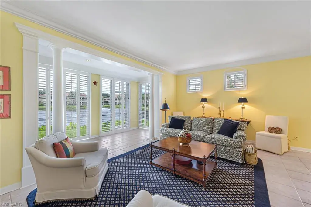 C10105 One of the best locations in L’Ambiance. This first floor end-unit home is light, bright and airy with a long wide lake view positioned for ultimate privacy. The enclosed Lanai can be additional living space or you can open the sliding doors to enjoy a breeze. Beautifully updated and maintained. Located in the sought-after community of Pelican Bay, offering an amenity-rich lifestyle package that includes private beach access with tram service, two beachfront restaurants, extensive fitness facility, 18 Har-Tru tennis courts, fitness center, canoeing, kayaking, and walking paths throughout. Close to Waterside Shops, Artis-Naples Performing Arts Center, Ritz Carlton Beach Resort, and Mercato.
