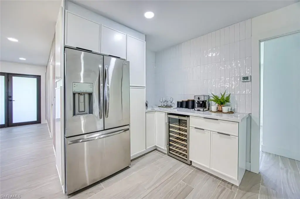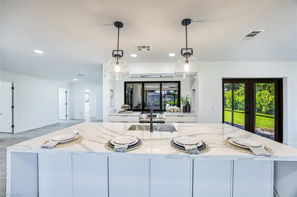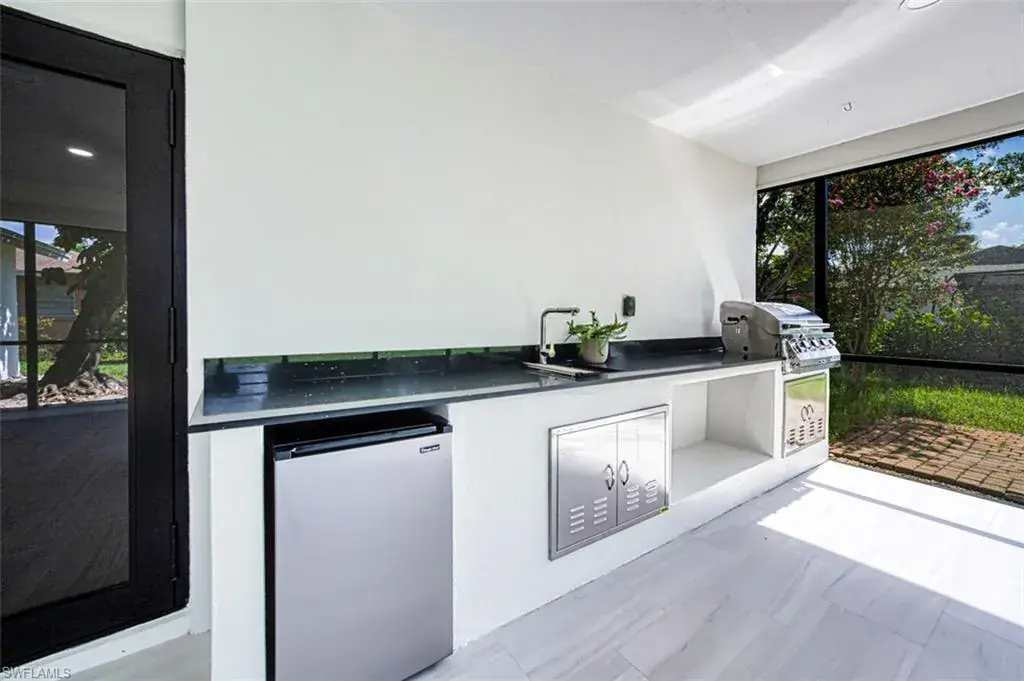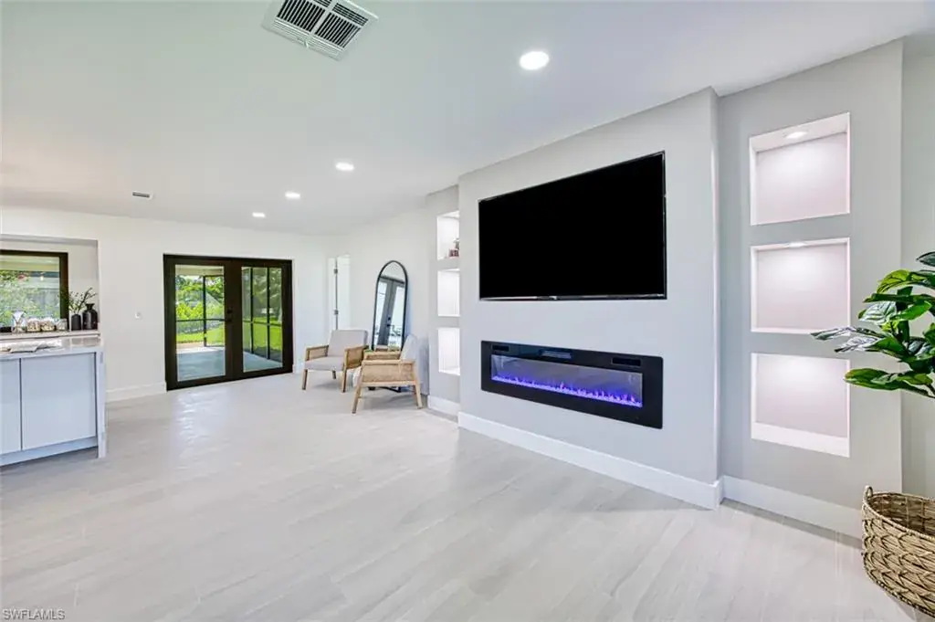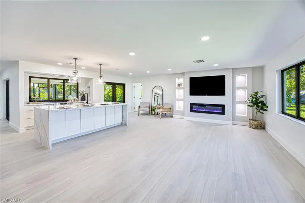 Investment opportunity! Come and view this gorgeous, completely renovated, move-in ready home with an amazing location in Naples!  A NEW ROOF with permit was completed July 2, 2024.  When stepping into this home, you will see newly tiled floors throughout, high-end finishes like fluted paneling and a brand new built-in fireplace unit with ambiance lighting, an open and spacious kitchen with real wood cabinets and premium quartz countertops, stainless steel appliances, a wet-bar and wine cooler. The kitchen has a pass-through window that faces the lanai for indoor/outdoor entertainment. The home offers plenty of space with 4 bedrooms, 2 stunning bathrooms, a 2-car garage, and a large screened-in lanai with an outdoor kitchen including a sink, refrigerator, and a commercial grill. The home has brand new hurricane-impact windows and doors with 9/16” thickness for extra soundproofing and impact resistance (3x the minimum requirement).  The primary bedroom features a custom walk-in closet, and the bathroom has a double vanity with sensored lighting, luxury tiles and a large shower with dual shower heads, handhelds and niches. New lighting is throughout the home, which makes it light and bright. This neighborhood of Flamingo Estates has a very low HOA of only $50 a year!  No rental restrictions – rentals can be long term, short term, or AirBnb.  This location is a short 6 min drive to Downtown 5th Avenue, pristine beaches, shopping, restaurants, and more.  Experience what Naples modern living is all about!