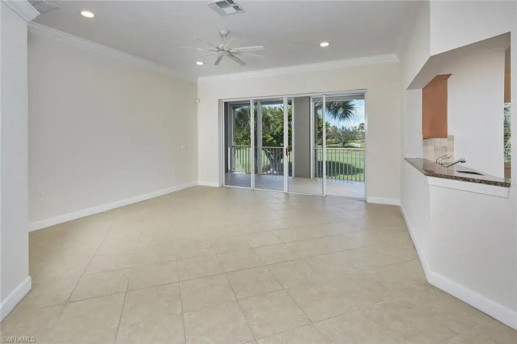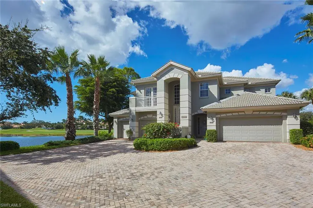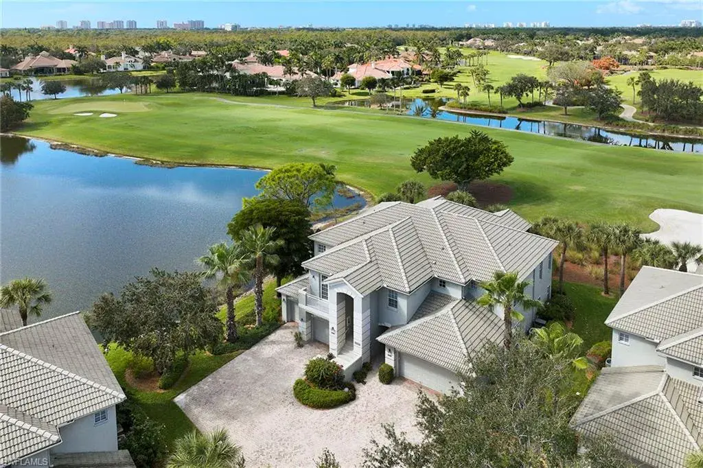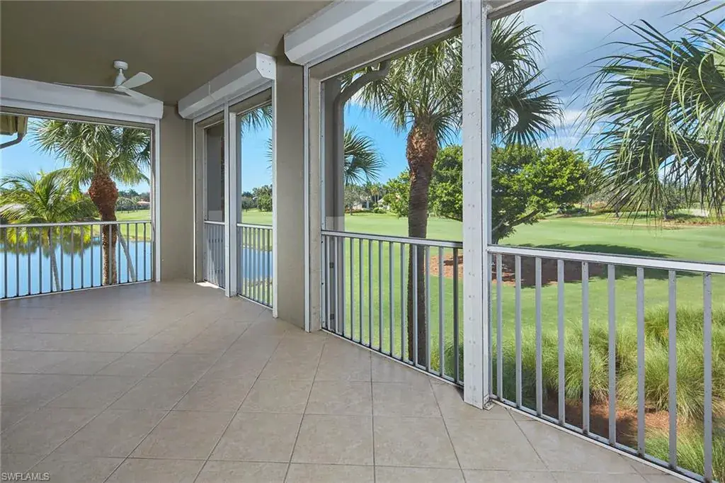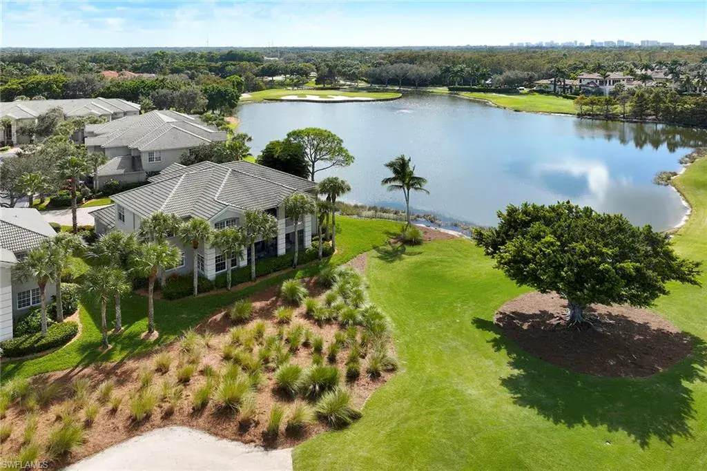 It’s all about the view! Spectacular water and golf course views are evident the minute you enter this second-floor residence tucked away in a private setting with only two residences in the building. Enjoy the unobstructed views of the lushly landscaped rolling green fairway of the challenging par 4, 11th hole and beyond of the Pelican Marsh golf course. Features include freshly painted interior, new light fixtures, plantation shutters, volume and tray ceilings, split bedrooms, private elevator, electric storm shutters for lanai, wet bar with U-Line refrigerator. Spacious interior offering three bedrooms, plus study and den, and a home office and hobby room. Attached two-car garage with epoxy floor coating. Large utility room with sink and hanging bar, ample storage with walk-in closet under stairwell. Pelican Marsh is a gated golf course community offering tennis, pickleball, bocce, fitness, community center and on-site restaurant. Golf membership is not a requirement to live in the community.