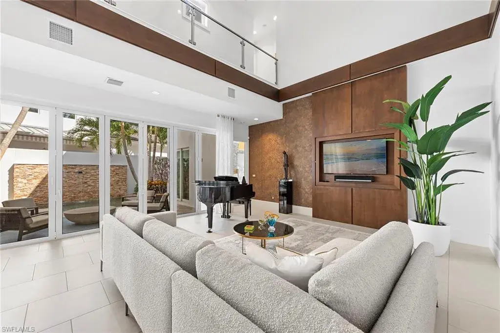 Step into style and comfort in this beautifully updated home, tucked inside the exclusive, gated community of The Residences at Mercato. With design touches everywhere, from stunning new chandeliers to custom wallpaper, custom furnishings and fresh designer paint. The gourmet kitchen shines with top-of-the-line appliances, drawers for storage and a sleek new glass cabinet perfect for displaying your favorite glassware. The spacious primary suite is privately located on the main floor, while upstairs offers three guest bedrooms, each with its own en-suite bath, plus a versatile office featuring custom built-in shelving. You’ll also find added storage in the air conditioned garage and laundry room and a whole house generator making life that much easier. The outdoor lanai offers a cozy retreat, complete with an outdoor kitchen, a private pool and tranquil water feature, perfect for relaxing or entertaining. Every detail in this home has been carefully curated to combine luxury with livability and all just a short stroll to Mercato’s shops and restaurants, and only minutes from the beach.