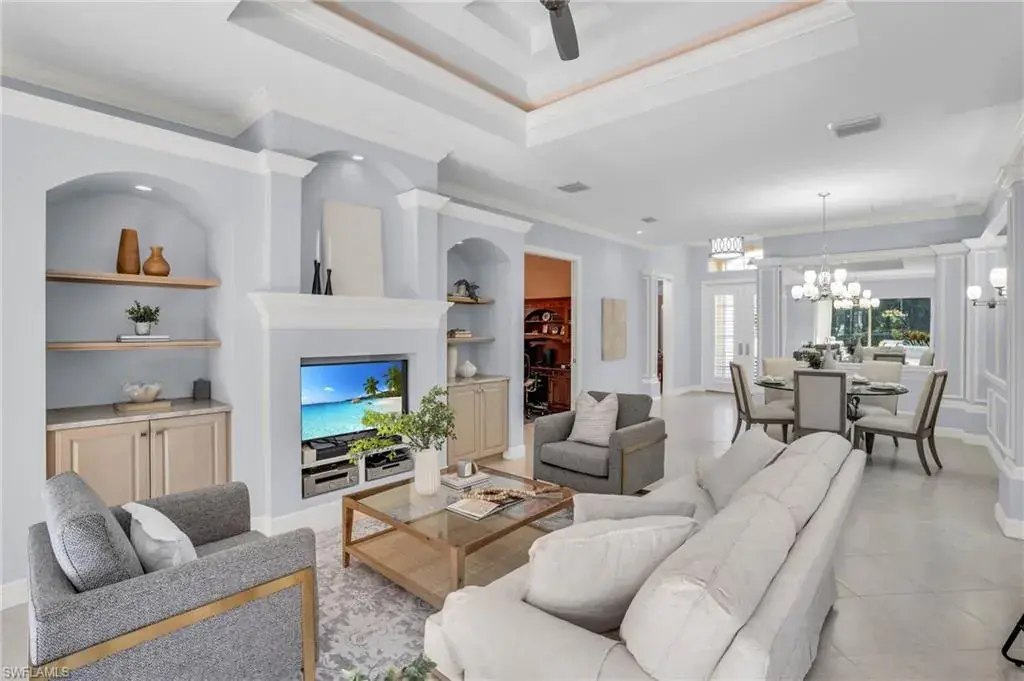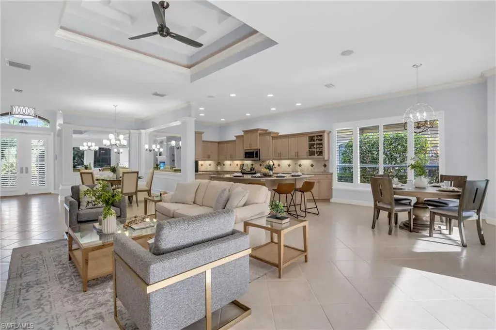 Nestled in the prestigious gated community of Pelican Marsh, this elegant villa-style single-family home built in 2002 offers approximately 2,049 sq ft of living space featuring 2 bedrooms plus a den, 2 full bathrooms, and an attached two-car garage. Designed with an open-floor layout, it integrates living, dining, and kitchen spaces seamlessly, while enjoying the quiet comfort of a preserve view and direct proximity to the neighborhood pool. With luxury finishes such as impact-rated windows, tile flooring, and a screened lanai offering room for optional pool/spa, this residence delivers a blend of resort living and practical comfort in one of North Naples’ most sought-after zip-codes.
