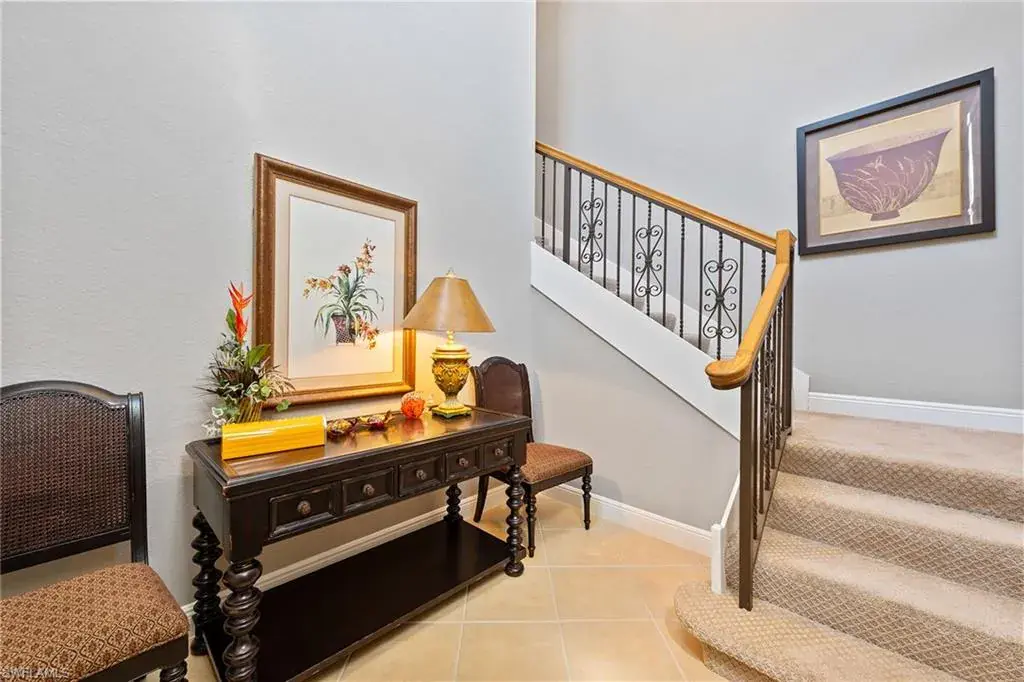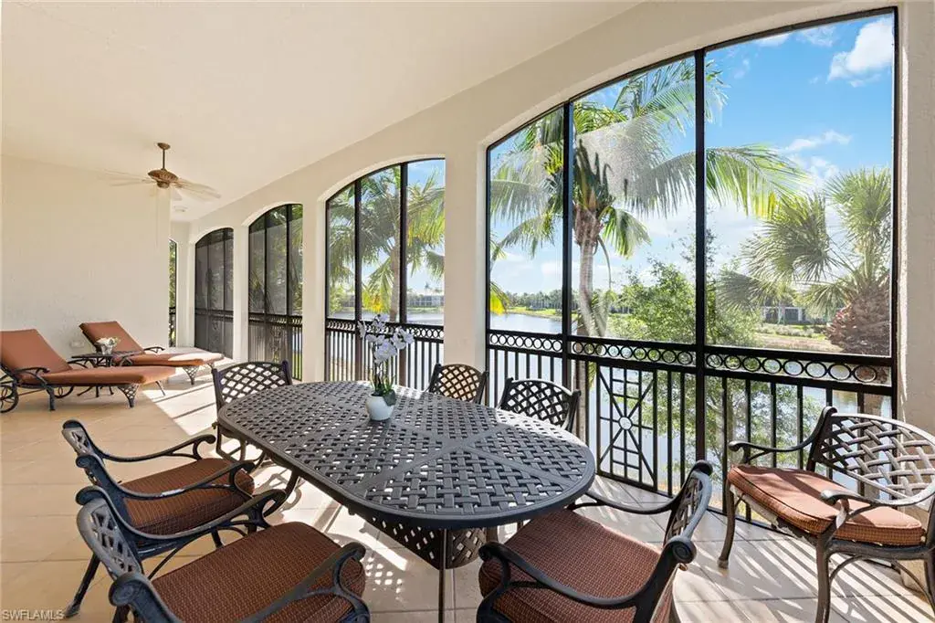 Southern-exposure residence nestled in the award-winning community of Fiddler’s Creek. This turnkey-furnished, 3-bedroom, 3.5-bath condominium boasts 2,599 square feet of living space with 2021 roof/gutters, impact windows/doors, and fresh exterior/interior paint. You’ll be greeted by 11-foot ceilings, oversized interior doors, lake views and an open-concept design. The expansive, connecting living areas are a rare upgrade option, perfect for entertaining. The eat-in kitchen is complete with stainless appliances, gas cooking, granite and a built-in credenza. The primary suite features 2 spacious walk-in closets and an ensuite with dual vanities, walk-in shower, and soaking tub. The additional 2 bedrooms offer walk-in closets and en suites, providing the utmost comfort for family/guests. The expansive lanai provides the ideal space for alfresco dining and relaxing while soaking in breathtaking sunsets overlooking the expansive water views. Additional highlights: new washer, WiFi thermostat, garage door opener, and digital locks. Residents enjoy fitness, tennis, pickleball, bocce, spa services, fine/casual dining, and resort-style pool. Golf, beach, and marina memberships available.