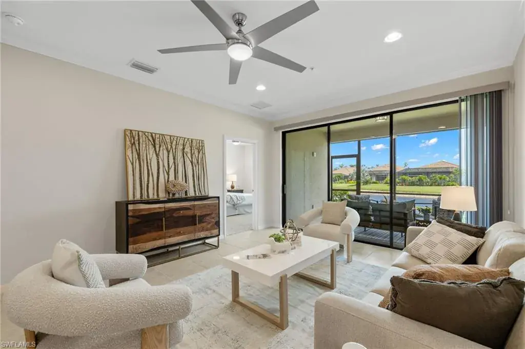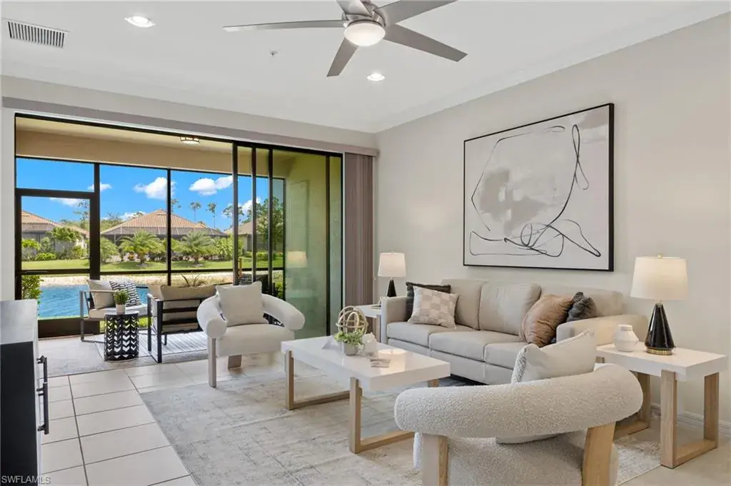 Discover the ultimate resort lifestyle at Esplanade Golf & Country Club! This FIRST FLOOR, END UNIT condo features 2 bedrooms, 2 baths, and a spacious den upgraded with glass panel sliding doors. This property is MOVE IN READY with fresh paint and all furniture is available for purchase. Natural light fills the open-concept living area from the screened lanai that offers picturesque water views. The well-appointed kitchen showcases contemporary lighting fixtures, stainless steel appliances, ample cabinetry, and granite countertops. This thoughtfully laid out floor plan features a primary bedroom retreat with dual closets and an en-suite bathroom, while the second bedroom enjoys its own hallway and bathroom, ensuring complete privacy for your guests. Enjoy a full SOCIAL MEMBERSHIP granting access to an array of amenities, including a resort-style pool with cabanas, poolside Bahama Bar, 6 tennis courts, 4 bocce ball courts, 4 pickleball courts, Clubhouse, Restaurant, Koquina Day Spa, Fitness Center, Dog Park, 14 miles of bike/walking trails and more. MEMBERSHIP NOTE: Social Members have year-round access to golf, with tee times available up to 2 days in advance.