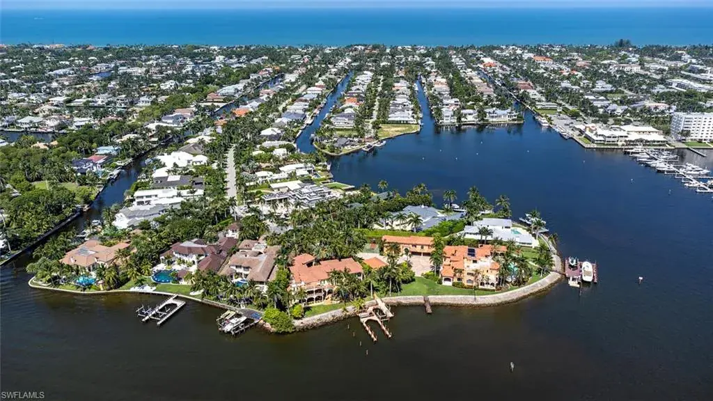 This magnificent new construction legacy property is situated on an oversized wide water parcel offering extensive bay vistas in Aqualane Shores.  This timeless West Indies styled home is a phenomenal collaboration between builder Toscana Homes, Stofft Cooney Architects, Calusa Bay, Designer Randi Scott, and Architectural Land Design.  Residence offers nearly 9,000 square feet of air conditioned living space, 5 bedrooms + den, 6 full and 2 half baths, massive pool, and 5 garages. A very rare and special offering that includes the best of everything throughout.
