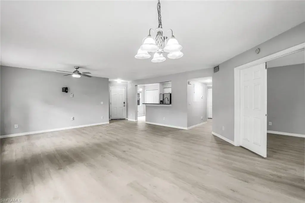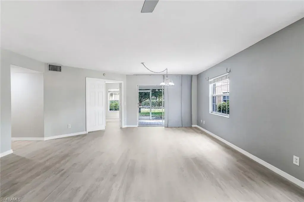 Introducing a stunning condo in the heart of North Naples! This spacious unit features 3 bedrooms and 2 bathrooms, conveniently located on the first floor for easy access. Recently upgraded with new flooring in the main areas and a brand new AC unit boasting a 10-year transferable warranty, and a 2 year old roof, this home offers both style and peace of mind.