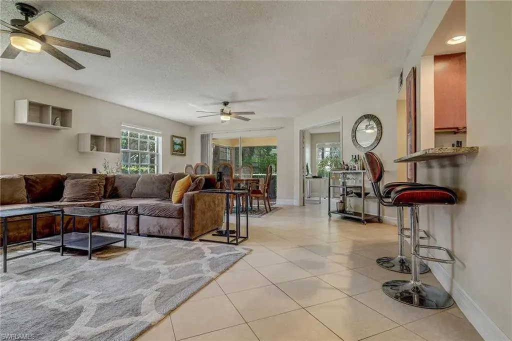 WELCOME to your new NORTH NAPLES HAVEN! This spacious, first floor, 3/2 condo offers the perfect blend of comfort and convenience! Step inside to discover an inviting living area providing a warm and welcoming atmosphere for you and your household. The kitchen is very functional with its eat in breakfast bar and the private patio is ideal for relaxing at your leisure. AC was replaced in 2022 & Water Heater in 2021.