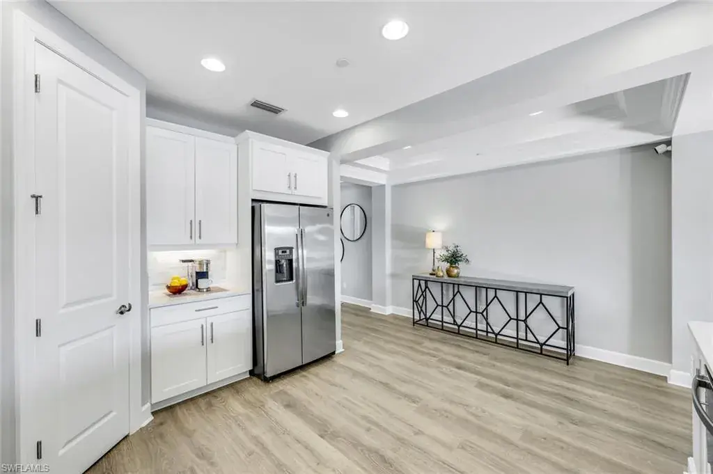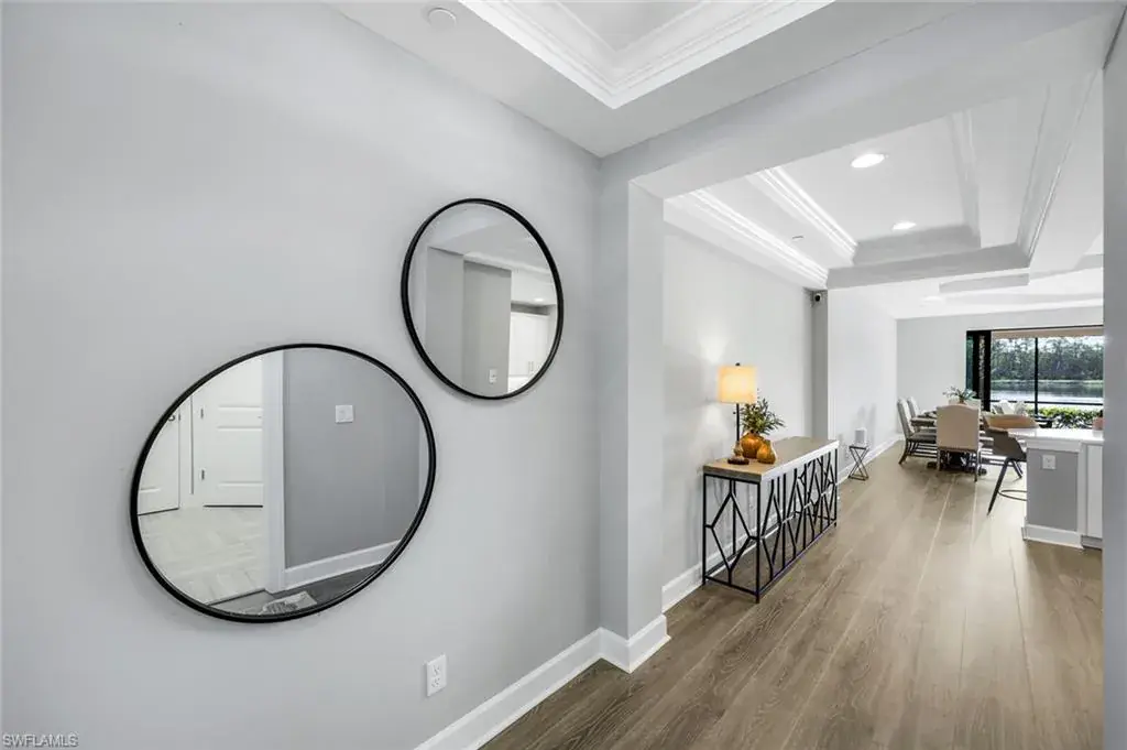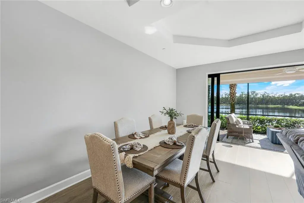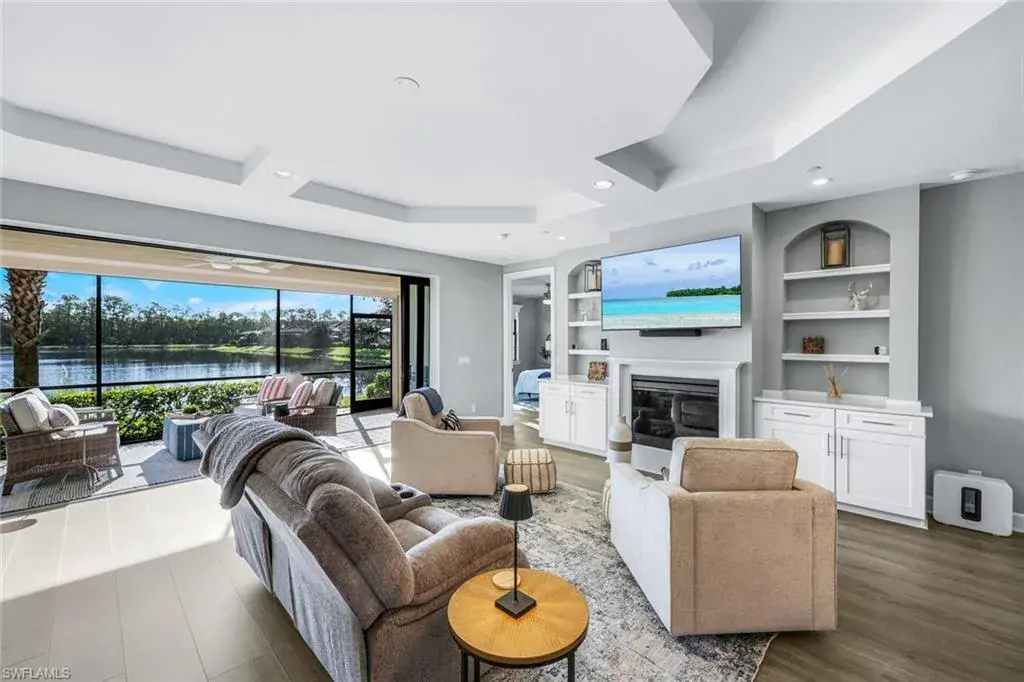 This sophisticated ground-floor coach home offers two bedrooms, two full bathrooms, a one-car attached garage, and an unobstructed view of the lake and preserve. The lanai provides a tranquil setting to unwind after an enjoyable day on the golf course. The residence is offered turnkey, featuring high-end furnishings, decor, and premium kitchen appointments. Additional highlights include stainless steel appliances, quartz countertops, soft-close cabinetry, extra storage in the laundry room and garage, a video security system, and more. Generously proportioned rooms create a spacious and inviting living environment, enhanced by an abundance of natural light. While impact-resistant windows and doors provide peace of mind, the lanai is also equipped with an electric hurricane screen shutter. One of the community pools is conveniently located approximately 60 steps from the property. Esplanade’s amenities include a resort-style pool with cabanas, a poolside Bahama Bar, a restaurant, tennis and pickleball courts, bocce, a beauty salon, a spa, a dog park, a fitness center, and more. The property comes with a social membership (with golf privileges from May–Oct). Esplanade Golf and Country Club features an 18-hole private golf course and offers a vibrant social calendar for a truly unique lifestyle. The property is also situated just a few miles from the pristine beaches that Naples has to offer.