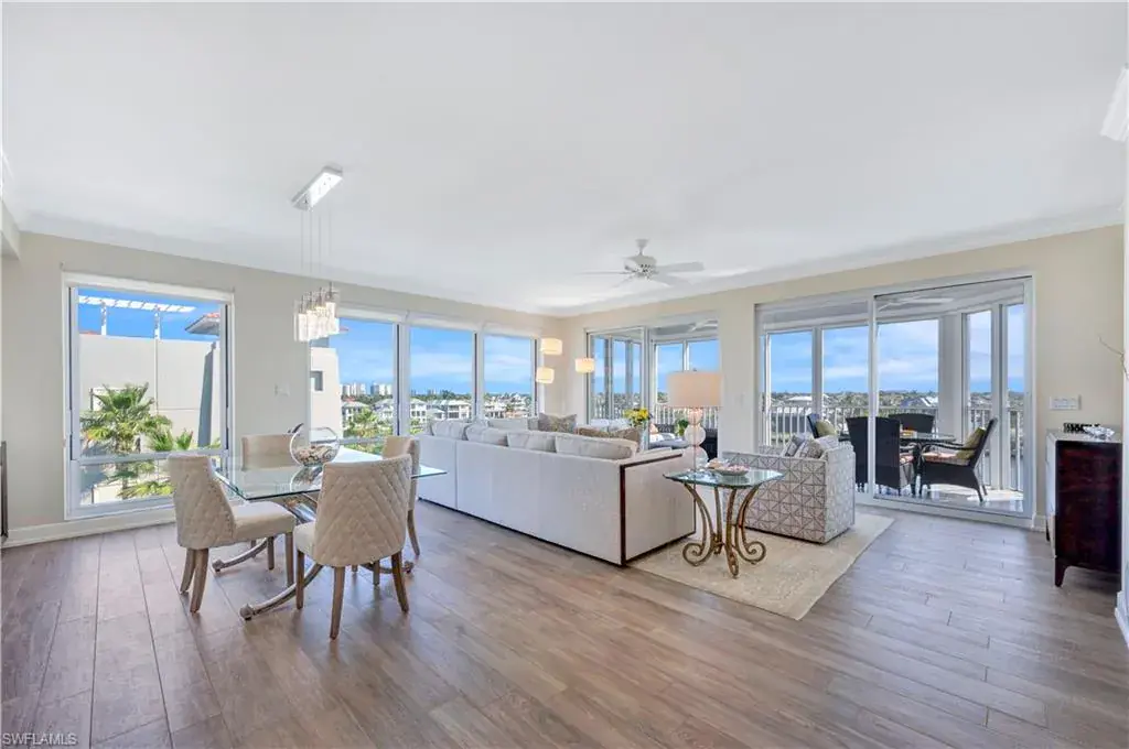 Exclusive Property Portfolio; Luxury, Elegant, Extraordinary in every detail and finish. From the stunning bay water views to the Luxury Amenities, the property exudes exclusivity and sophistication. This 4th-floor corner residence overlooking Vanderbilt Bay was transformed into a luxury masterpiece by BCB Homes, Inc. The open floor plan offers morning sun bay views with natural light cascading through the east side of the home, and the beach and Gulf sunset views on the west side of the residence.