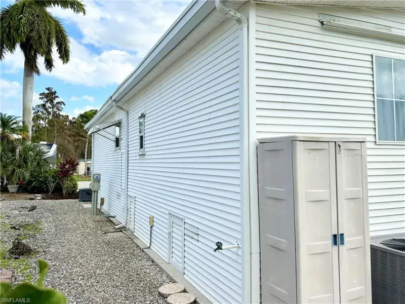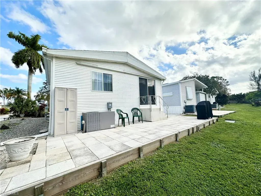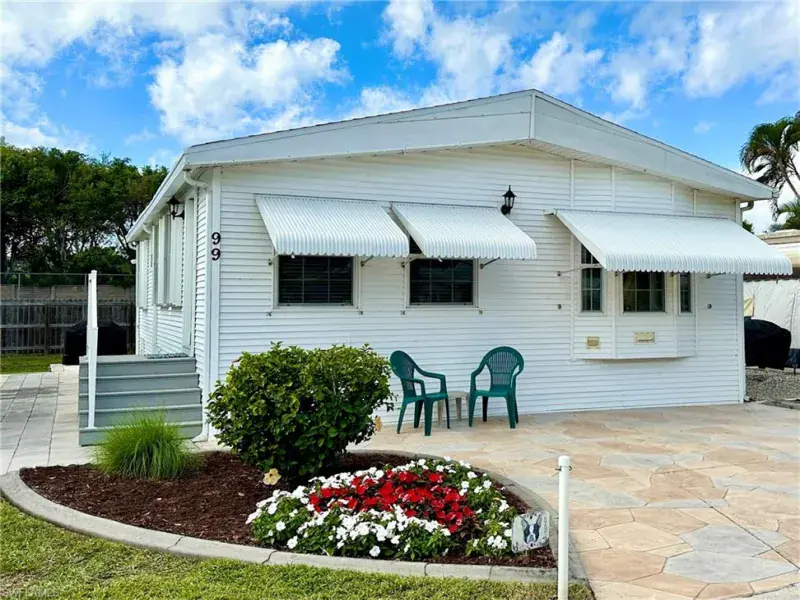 Thank you for viewing 99 Vanda Sanctuary in Imperial Wilderness – a gated 55+ community that is beautifully maintained, fun, and active! This 2Br/2Ba home features an open floor plan with a spacious living room, dining room, and kitchen. The kitchen offers a breakfast bar, dishwasher, and ample cabinet space. Laminate flooring runs throughout the home, which is being sold furnished. The en suite boasts a king-size bed and sliding door exiting to the rear of the home. The second bedroom contains a queen-size bed. Both bedrooms offer generous closet and storage space. Also, in the second bathroom, there is a newer, large capacity, washer/dryer unit. The exterior of the home offers slider hurricane shutters, clamshell awning covers, and a newer A/C. Pride of ownership is visible; plus, the colors and decor provide a cheerful, welcoming vibe. As an added attribute, YOU OWN THE LAND, and the low HOA fee ($792. per quarter) covers so much: water, lawn care, basic cable, trash/recycling, and community amenities. Community amenities include the following: 2 pools with spas, bocce, pickleball, tennis, shuffleboard, billiards, a library, clubhouse, dog parks, and more!