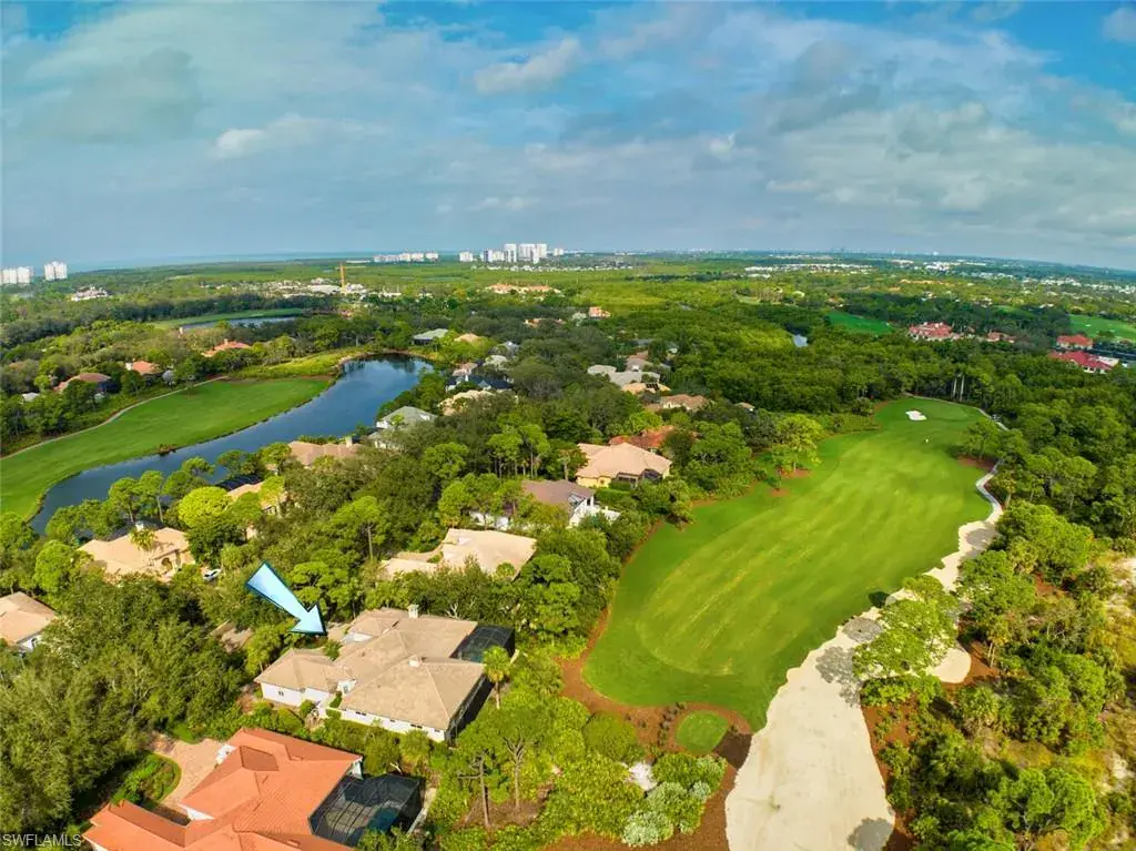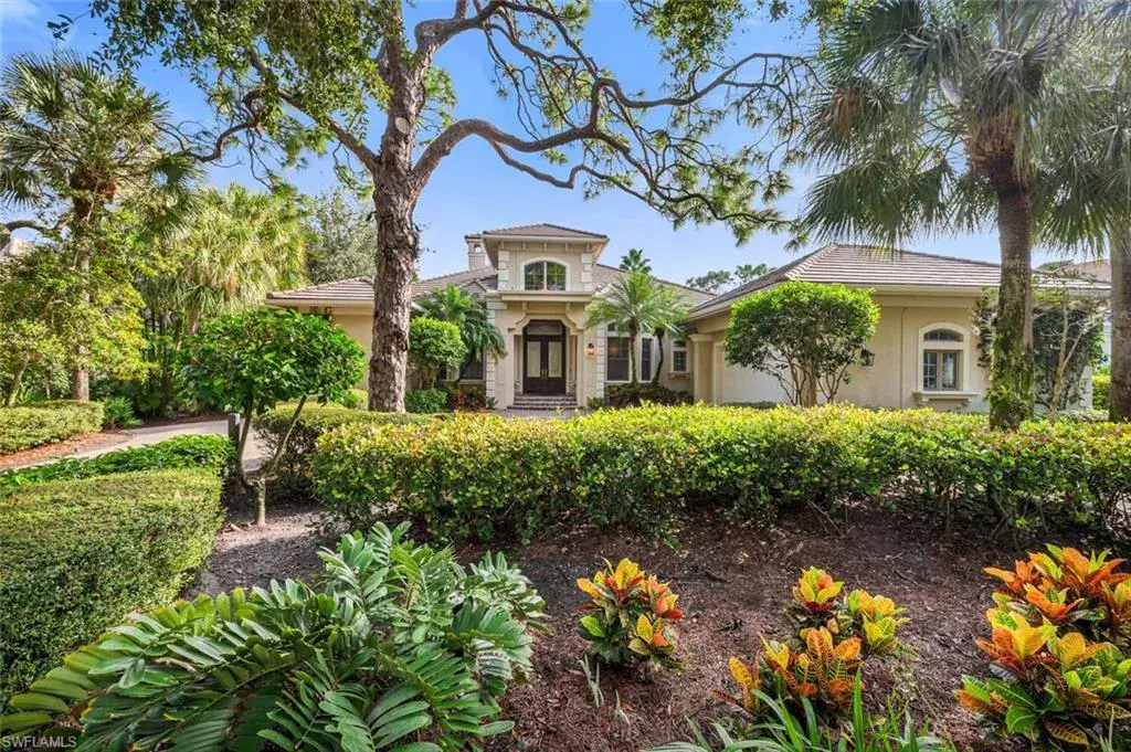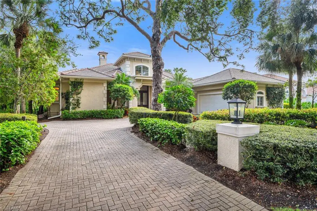 H12251Serenity awaits as you relax in the negative edge, infinity pool overlooking the 9th fairway through wide spans of picture screen. Don’t wait years to play this fabulous Arthur Hills design course. FULL GOLF MEMBERSHIP is available after matriculation of a waiting list of 1 person. The layout of this split floor plan lives on one floor; without stairs. It allows family and guests to enjoy the home without interrupting the Owners Suite or Den. NEW ROOF in fall of 2021, new gutters in October of 2023. The 250 gallon propane tank services a Thermador range, accompanied by Bosch double ovens, 2 Bosch dishwashers and a Subzero refrigerator. Oversized, two car garage and rear golf cart garage invites a wealth of storage opportunities including air conditioned walk in storage closet. If not a golfer enjoy tennis or pickle ball, attended workout facility or bocce. 2.5 miles to beach and extremely close to Mercato, as well as other shops and dining experiences.