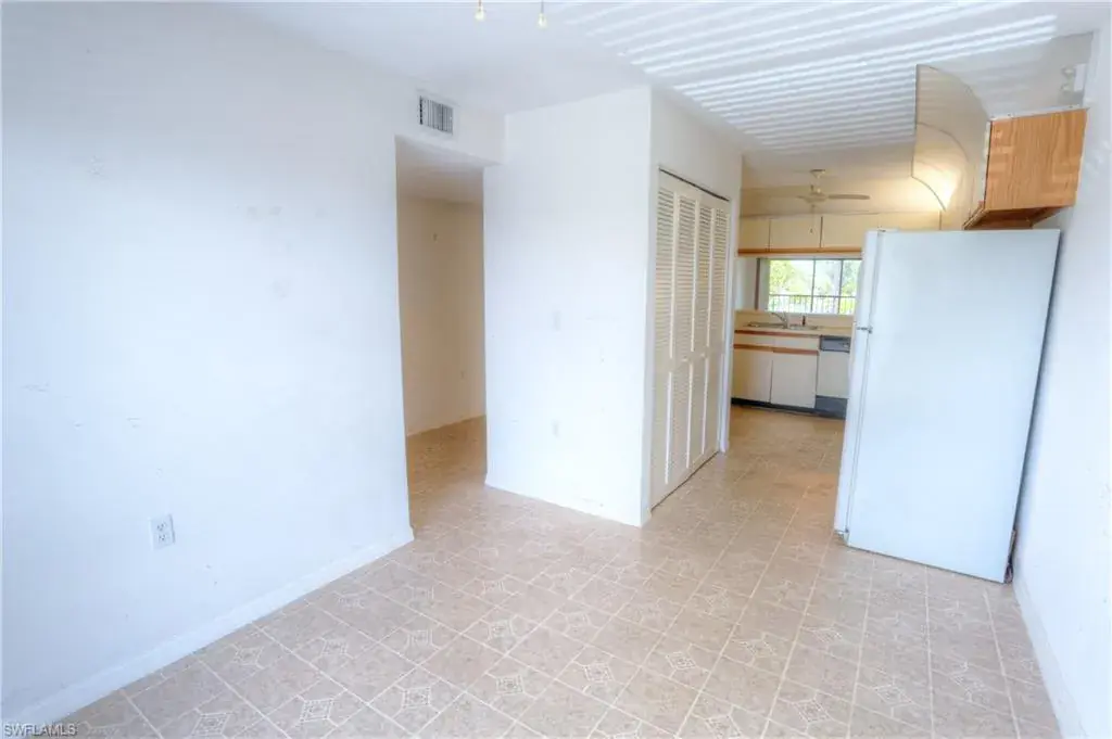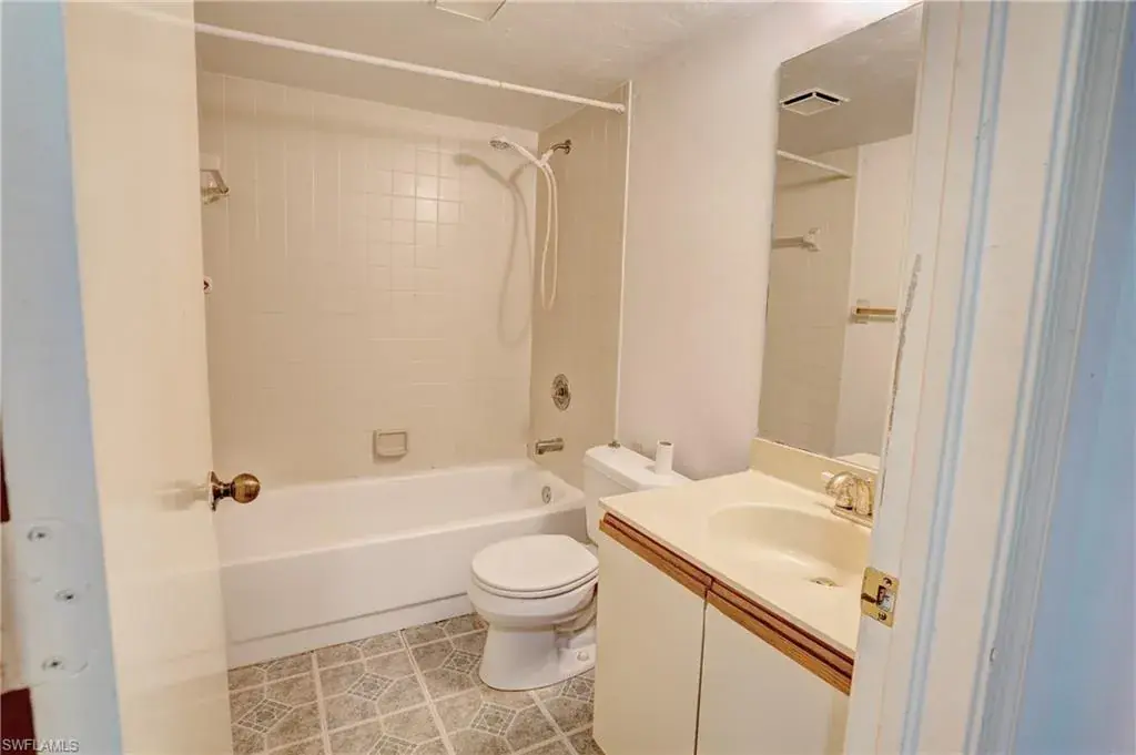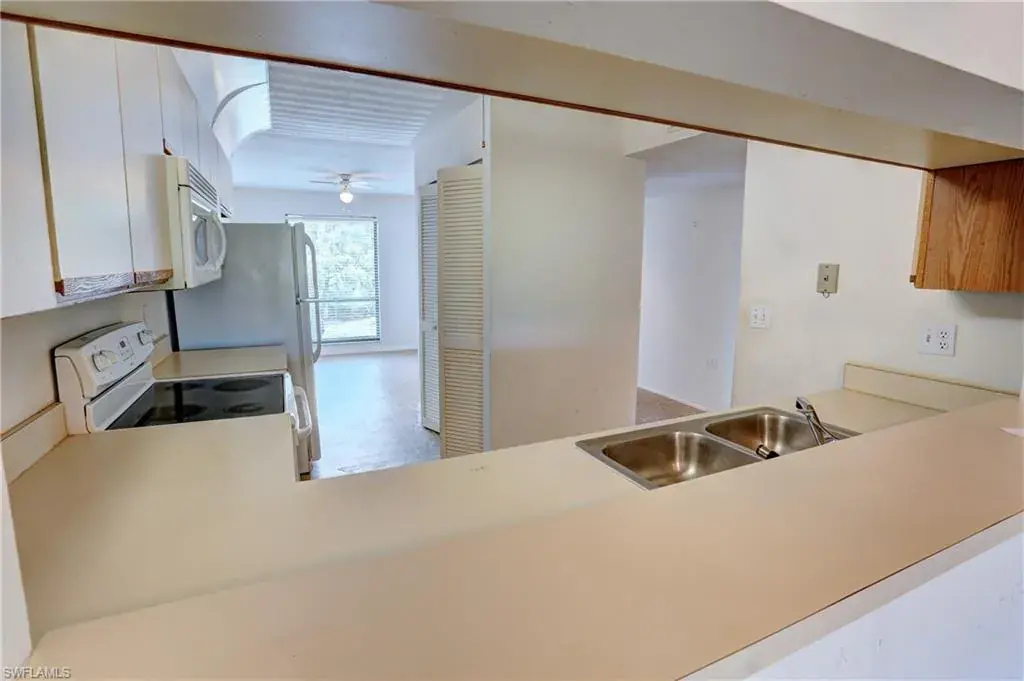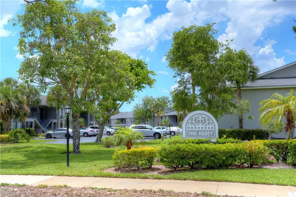 Location, Location, Location! Second-floor condo with a beautiful view of a wide active boating canal. 2 beds/2 baths, with vaulted ceiling in great room and large screened lanai with retractable sliders. This spacious condo is a blank canvas. Just bring your imagination: paint, floors, bathroom and kitchen upgrades will make this property your sanctuary or an investment opportunity. The lowest priced unit in The Abby at Berkshire Village, boasts two community pools and a spacious outdoor preserve with trees and grass to walk your dog. Conveniently located to shopping, restaurants and minutes from 5th Avenue and the sugar sand beaches of the Gulf. Own your piece of paradise!