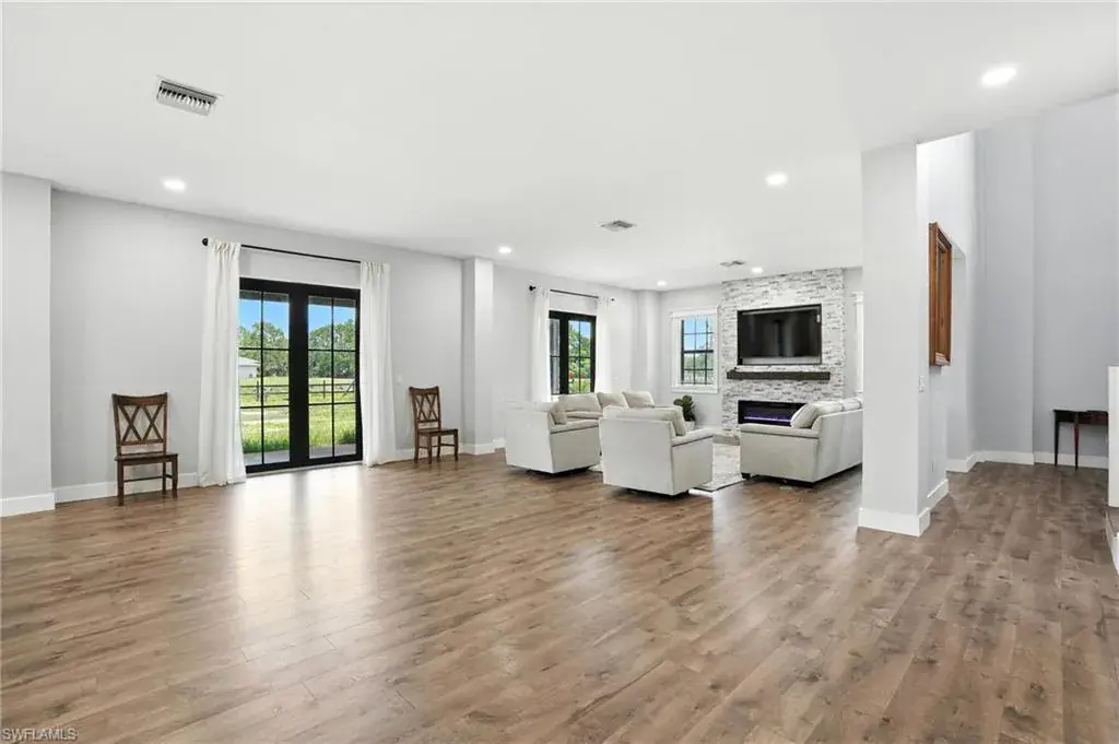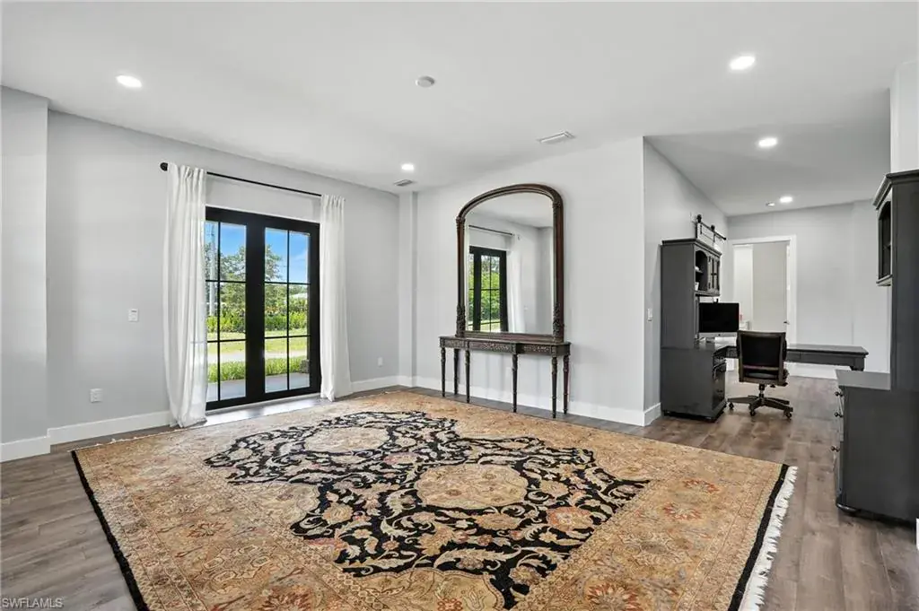Engineered with industrial-grade red iron steel, this estate is built to last. It includes Miami-Dade impact-rated doors and windows, a Generac 22KW generator, tankless water heating, and a whole-house Kinetico RO system with an 800-gallon tank. Outdoor amenities include a wrap-around porch, three gated driveways, and dedicated basketball and soccer areas.