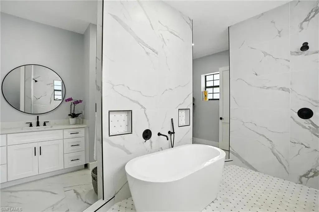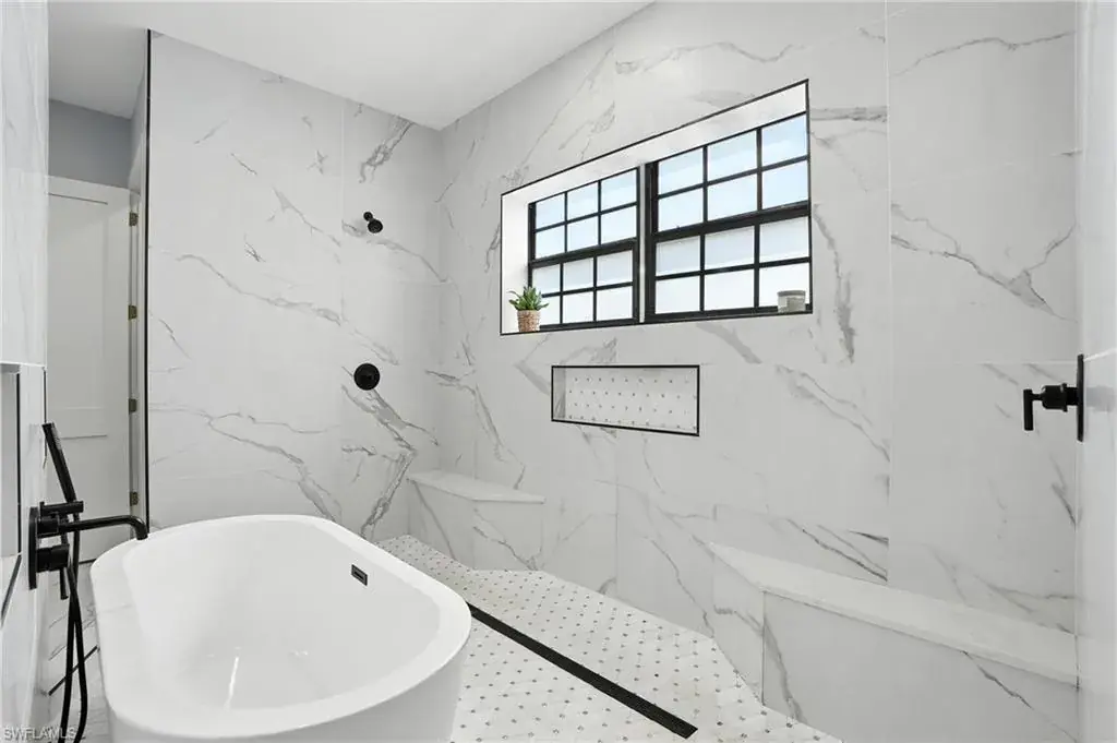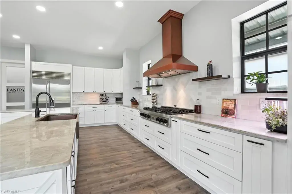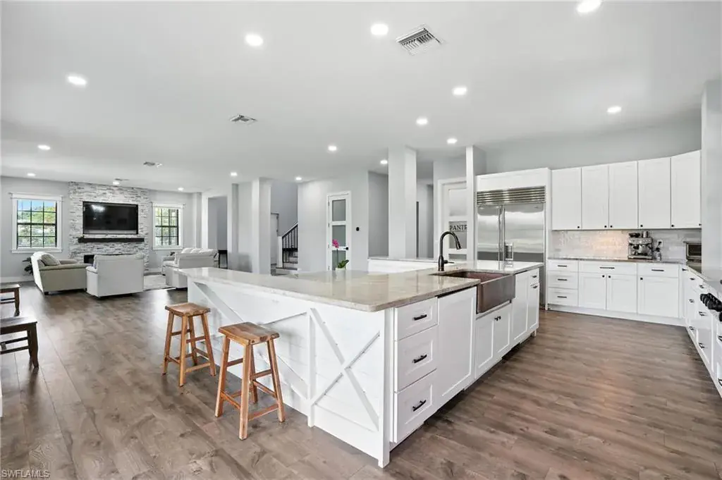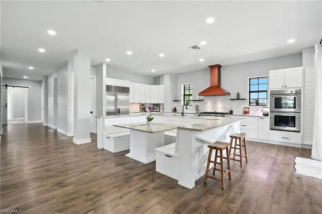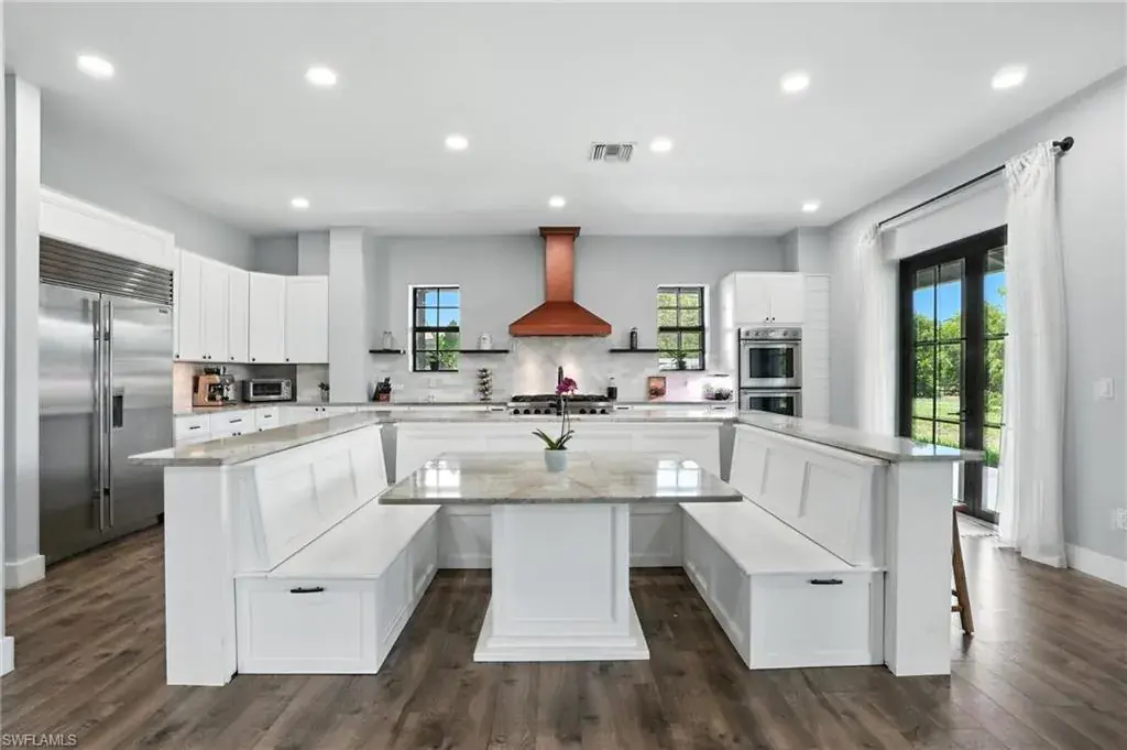 NO FLOOD INSURANCE REQUIRED, A Private Luxury Estate in the Heart of Naples, Experience the pinnacle of privacy and luxury on this 2.4-acre corner estate in central Naples. Built in 2021, this custom-designed residence offers over 5,892 square feet under air and more than 11,352 total square feet of thoughtfully crafted living space.