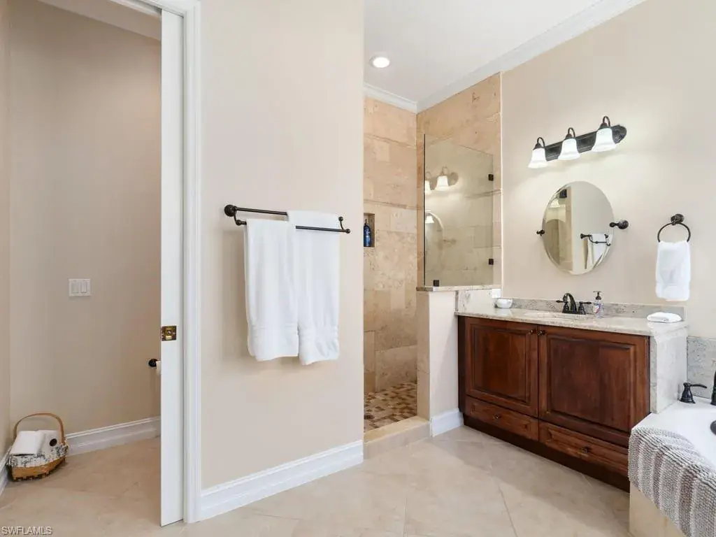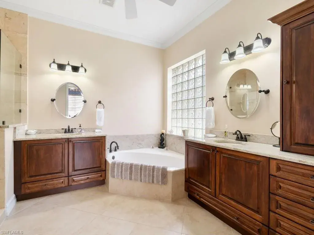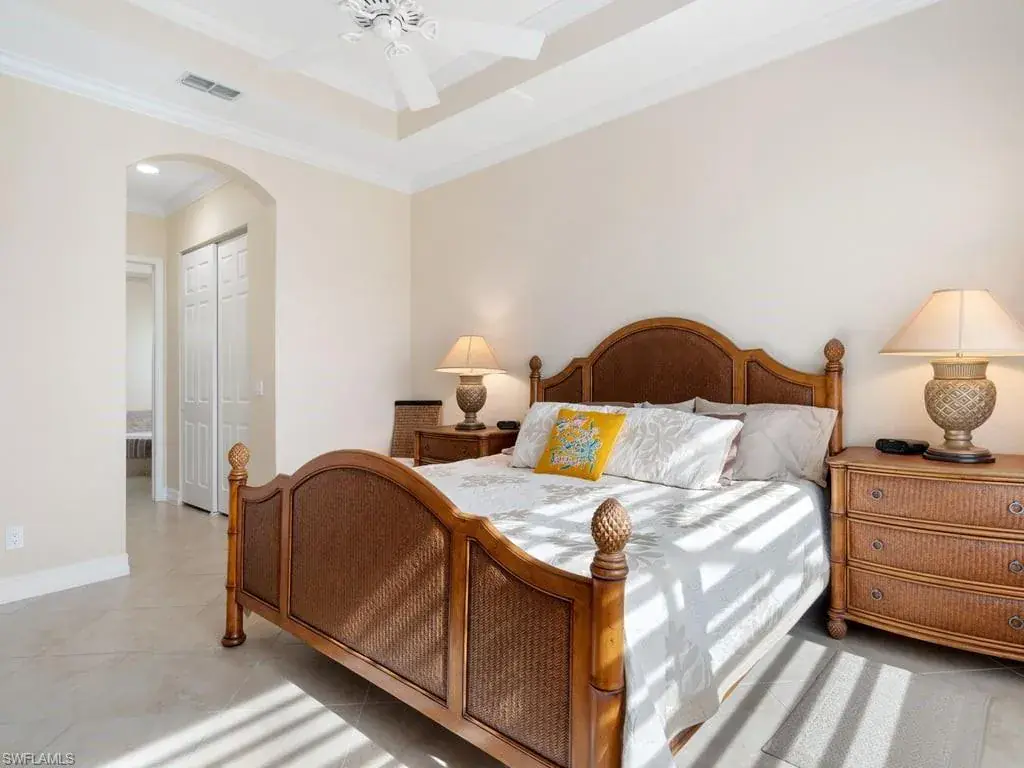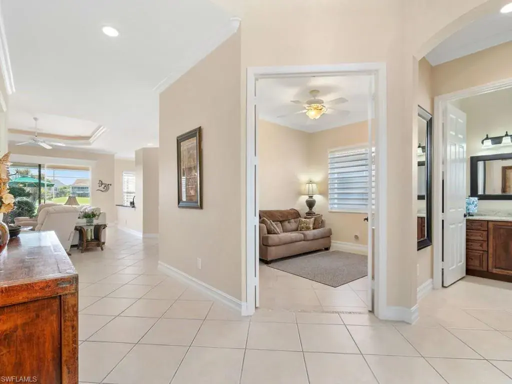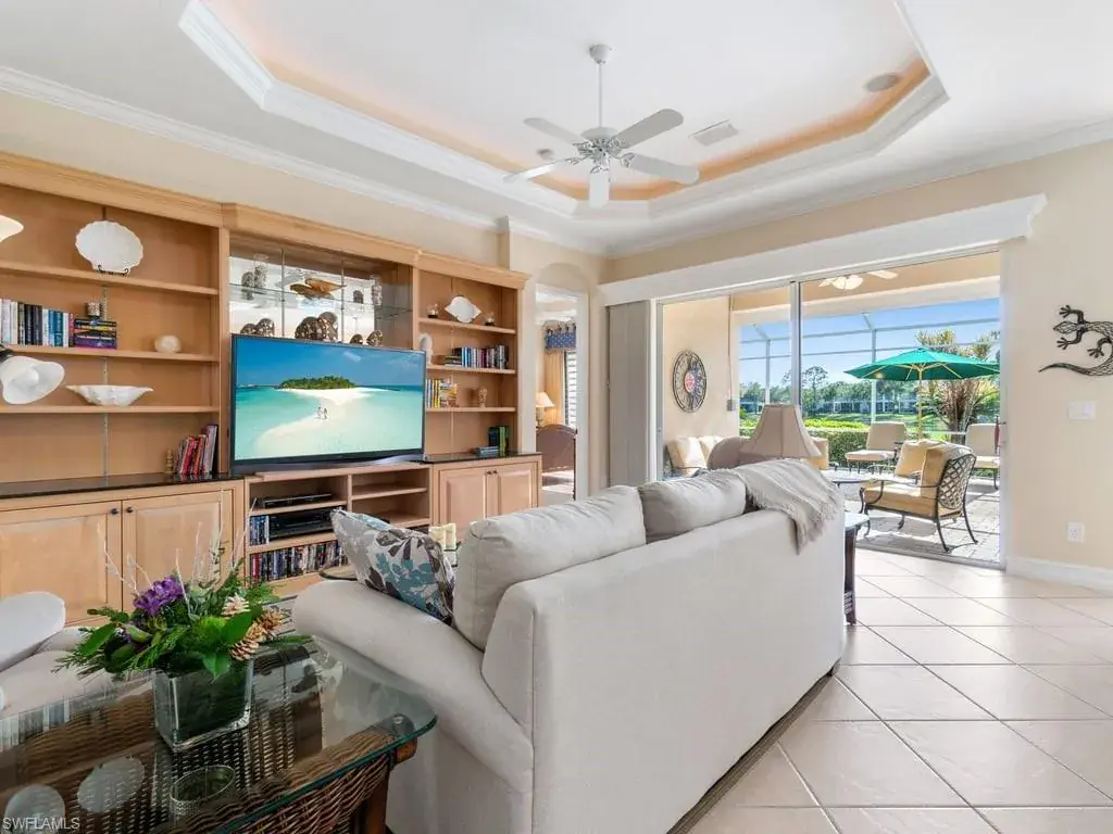 Welcome to your golfer’s paradise, nestled in the prestigious Glen Eagle Golf and Country Club in gorgeous Naples. This stunning 3-bedroom, 2-bathroom, 2-car garage home, offers a perfect blend of luxury and comfort. With tile floors throughout and turnkey finishes, this home is move-in ready. The updated bathrooms exude elegance, while the primary suite offers a retreat-like ambiance with dual sinks, a walk-in shower, soaking tub, water closet, and spacious walk-in closets. The kitchen boasts granite countertops and a breakfast nook with breathtaking views of the 15th hole and 16th tee box. Crown molding, tray ceilings, and other luxurious details elevate the aesthetics of every room. Step outside to the expansive patio with a screened-in lanai and savor the picturesque landscape of the championship golf course. What makes this home truly special is the full golf membership deeded to the property, granting you access to the 18-hole par-70 championship golf course designed by the renowned Gordon Lewis. Enjoy premium amenities, including the Divot Café, 19th Hole Restaurant with private dining options, a full-service fitness center with classes, tennis and bocce courts, and a community pool. For those golfers looking to gain extra practice off the course the private simulator room can be rented out per hour for training and private events. Catering to golf enthusiasts and luxury home seekers, this exquisite property offers a lifestyle of unparalleled elegance and recreational opportunities. Don’t miss your chance to call this dream home yours!