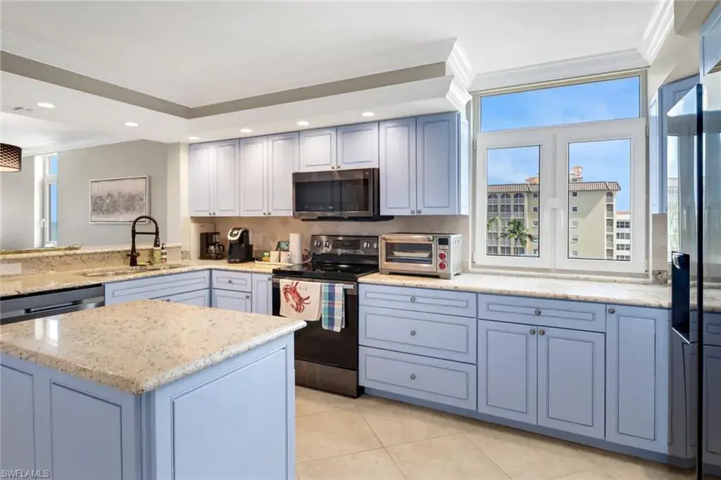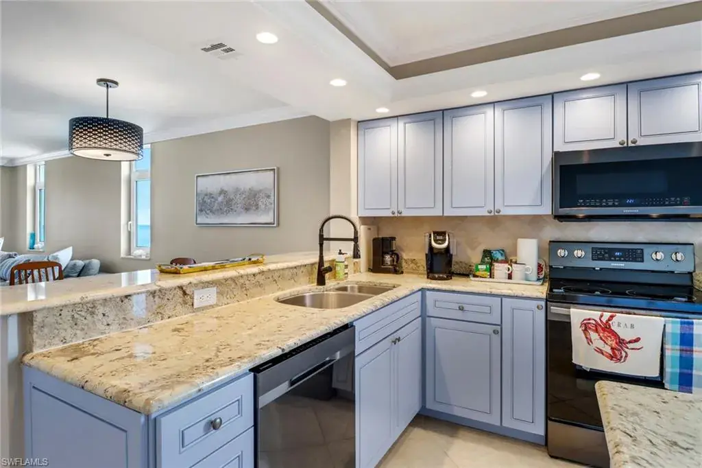 You will not find a better view of the Gulf in this price range! You’ll enjoy stunning unobstructed views of the Gulf of Mexico, and even partial views of the bay from the kitchen! The open, spacious floor plan is very open and efficient, with no wasted space and offers newer appliances, updated cabinetry, new interior paint, extra storage, covered parking and more! The building is pet friendly and rental friendly and has already completed the milestone inspection. A new spa and BBQ are is currently under construction. Vanderbllt Beach offers great restaurants and the new upcoming Ritz Carlton Residences. This gorgeous condo is being sold turnkey furnished and is ready to move into! Grab your flip flops and start enjoying the Florida lifestyle!
