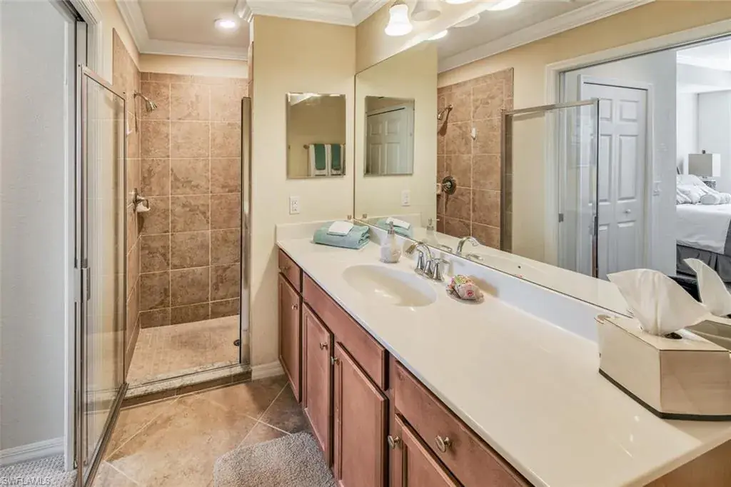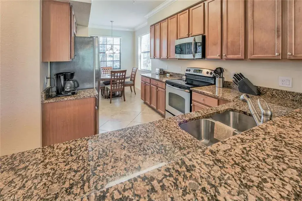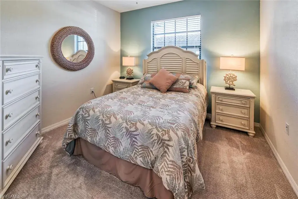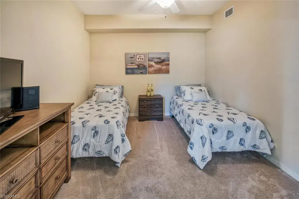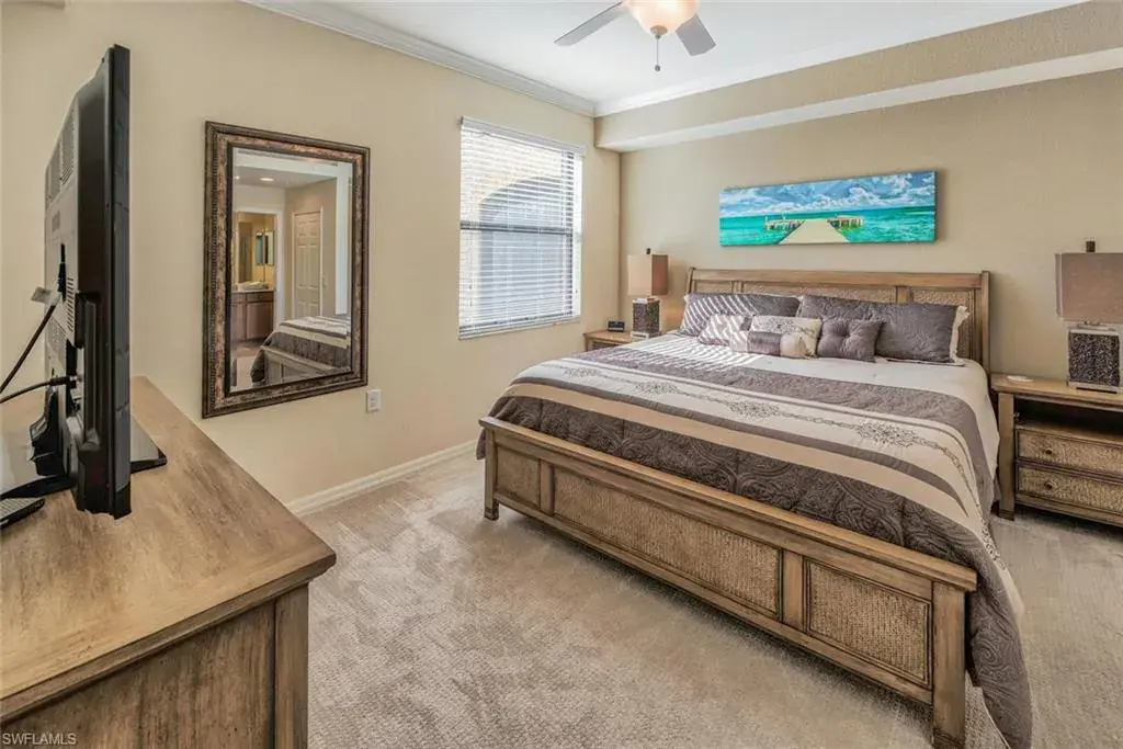 New improved price makes this the lowest priced first floor end unit in Treviso! Highly sought after 2BR/2BA +Den first floor Celiana model condo located in prestigious Treviso Bay! This property comes with TPC Golf membership! Treviso Bay boasts a beautifully maintained 18-hole golf course designed by Arthur Hills, a true legend in golf course design, it also offers resort style amenities with access to Villa Rilassare club house with state-of-the-art fitness center, a Tiki bar, a beautiful resort style pool with a waterfall, a full-service spa, tennis, basketball, a bocce court, pickle ball courts and so much more. The community is truly one of a kind and the location is superb. Downtown Naples and the beautiful white sandy beaches are just 15 minutes away. Downtown offers theater, unique shopping and fine dining in a picturesque small-town setting. Other amenities in the community include satellite community pools, BBQ grills, onsite restaurants, beauty salon etc. This home features a king bed in the master, two twin beds in the den, and a queen bed in the guest room. Two full bathrooms (master ensuite and guest bathroom) as well as a lovely private lanai, stainless steel appliances, granite counters, tile throughout the main areas and carpet in the bedrooms. Don’t miss this opportunity to own a condo in paradise!
