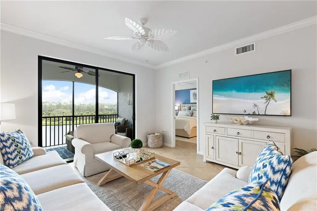 Discover the luxury of the Florida living in this stunning updated Golf condo with a FULL GOLF AND SOCIAL MEMBERSHIP in the golf lover’s paradise of Treviso Bay. Nestled in the popular Acqua neighborhood of Treviso Bay, this beautifully updated 2-bedroom, 2-bathroom retreat includes a new lanai floor, no-see-um screens, professionally painted kitchen cabinets, a coffee bar, recessed lighting and refreshed ceiling fans. Relax on your private lanai, overlooking tranquil water views and the picturesque Rookery nature preserve. Immerse yourself in the resort-style lifestyle at Treviso Bay, sparkling pool, state-of-the-art fitness center, tennis, bocce, pickleball, basketball and a full service spa. This exclusive offer includes a full TPC Golf membership, luxurious clubhouses, fine dining and more. If you are looking for upscale living, this is a must see and won’t last!