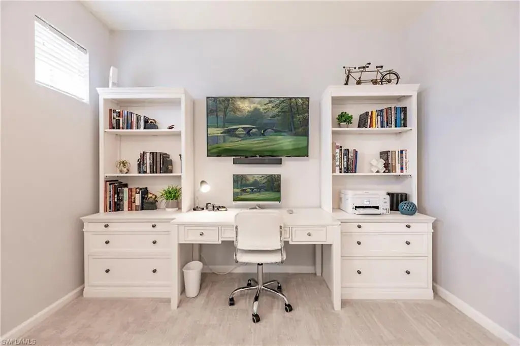 Workouts are wonderful at the 3,600sq ft fitness center which includes the latest strength training & cardiovascular equipment, as well as a diverse schedule of group fitness classes. A lap pool, a resort-style tropical pool, plus 2 steam rooms for relaxation & recovery enhance the fitness experience plus dedicated fitness professionals & personal trainers. Not to mention…the 12 lighted Har-Tru Courts, a Stadium Court for exhibition play, 4 Pickleball courts, 4 Bocce courts, plus full-service pro shop. So what are you waiting for a BOOK you’re showing today!